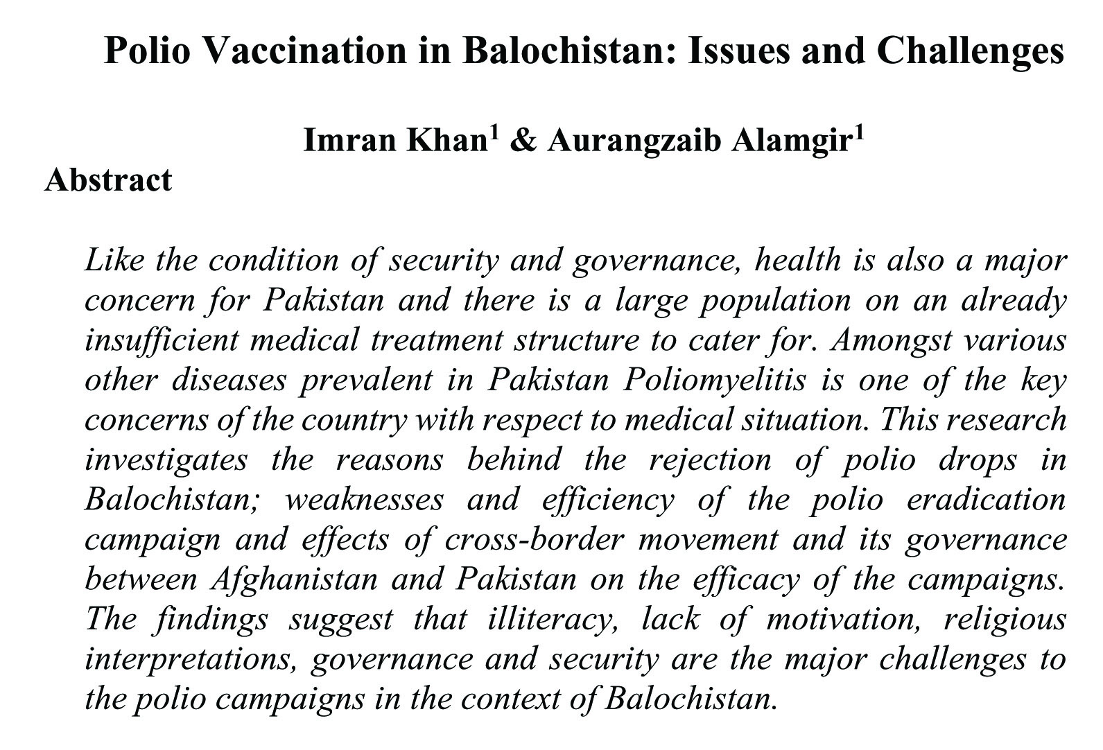 Polio Vaccination in Balochistan: Issues and Challenges (abstract)