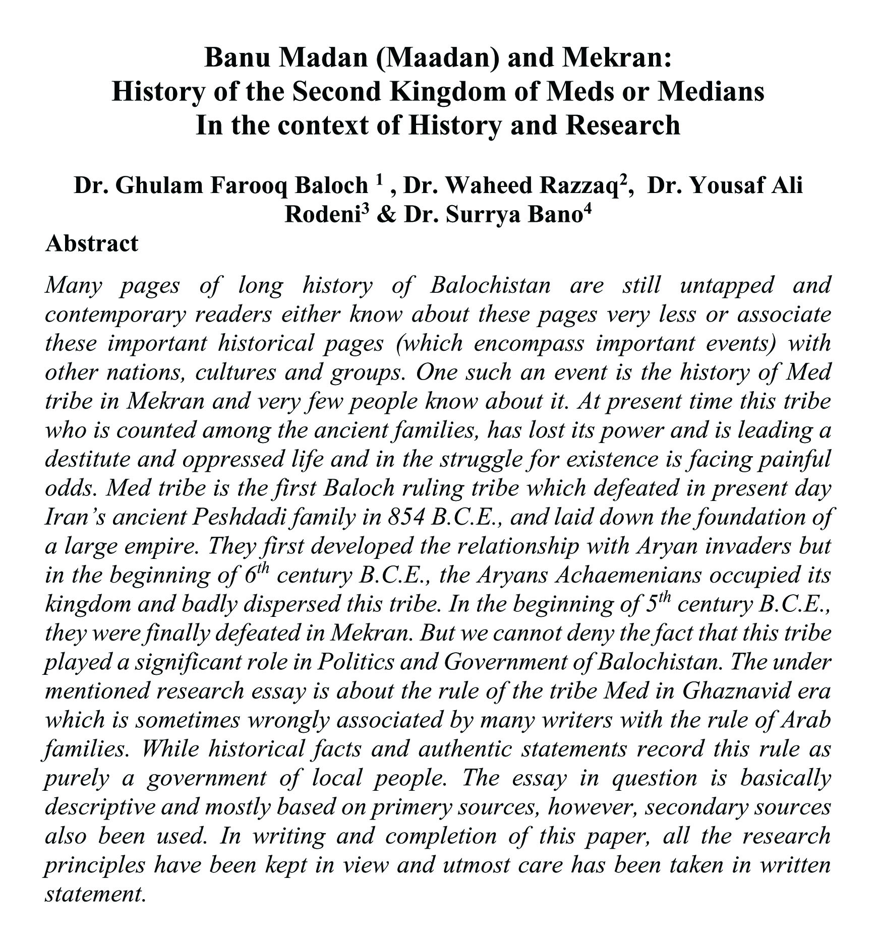 Banu Madan (Maadan) and Mekran: History of the Second Kingdom of Meds or Medians In the context of History and Research (abstract)