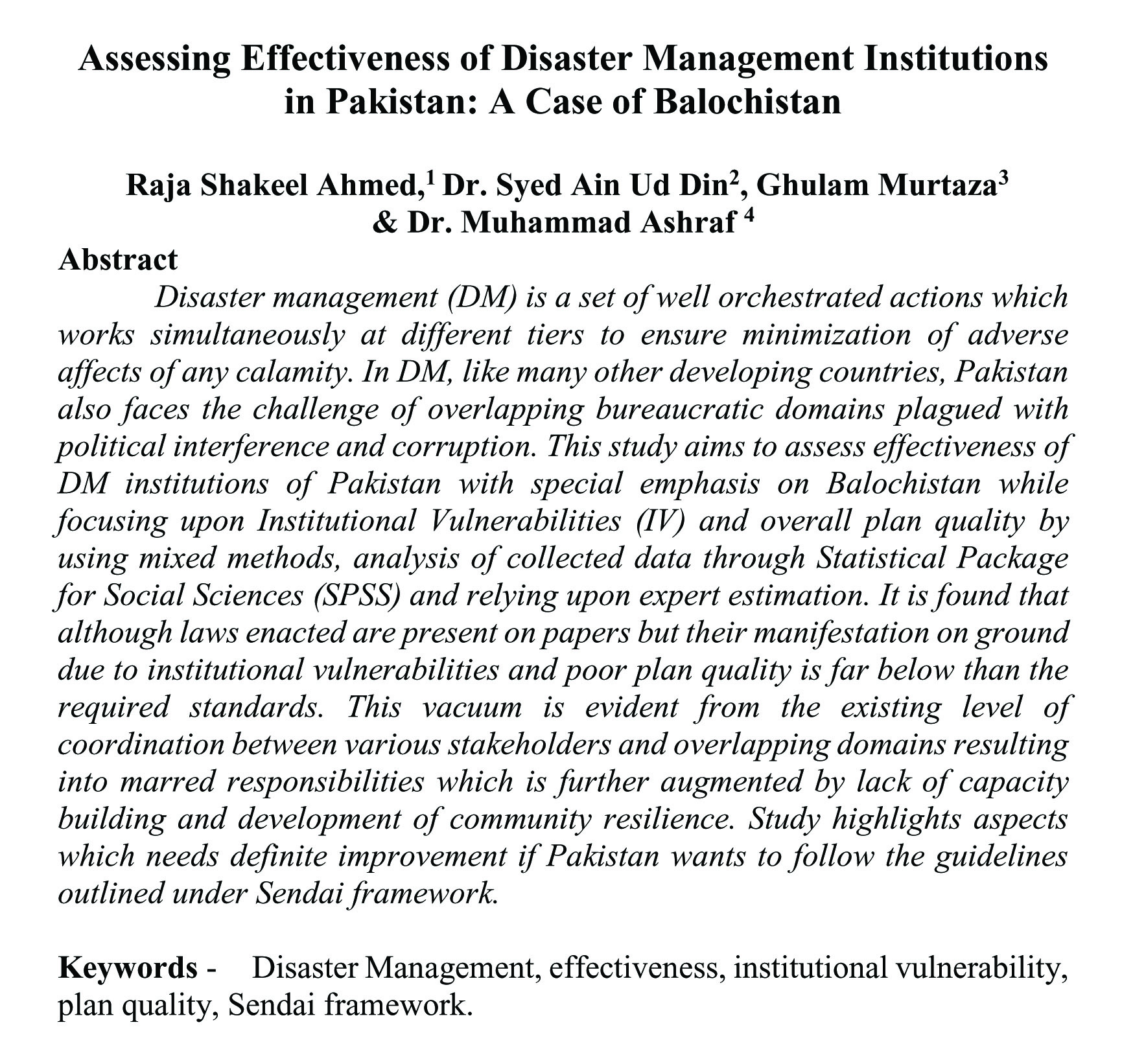 Assessing Effectiveness of Disaster Management Institutions in Pakistan: A Case of Balochistan (abstract)