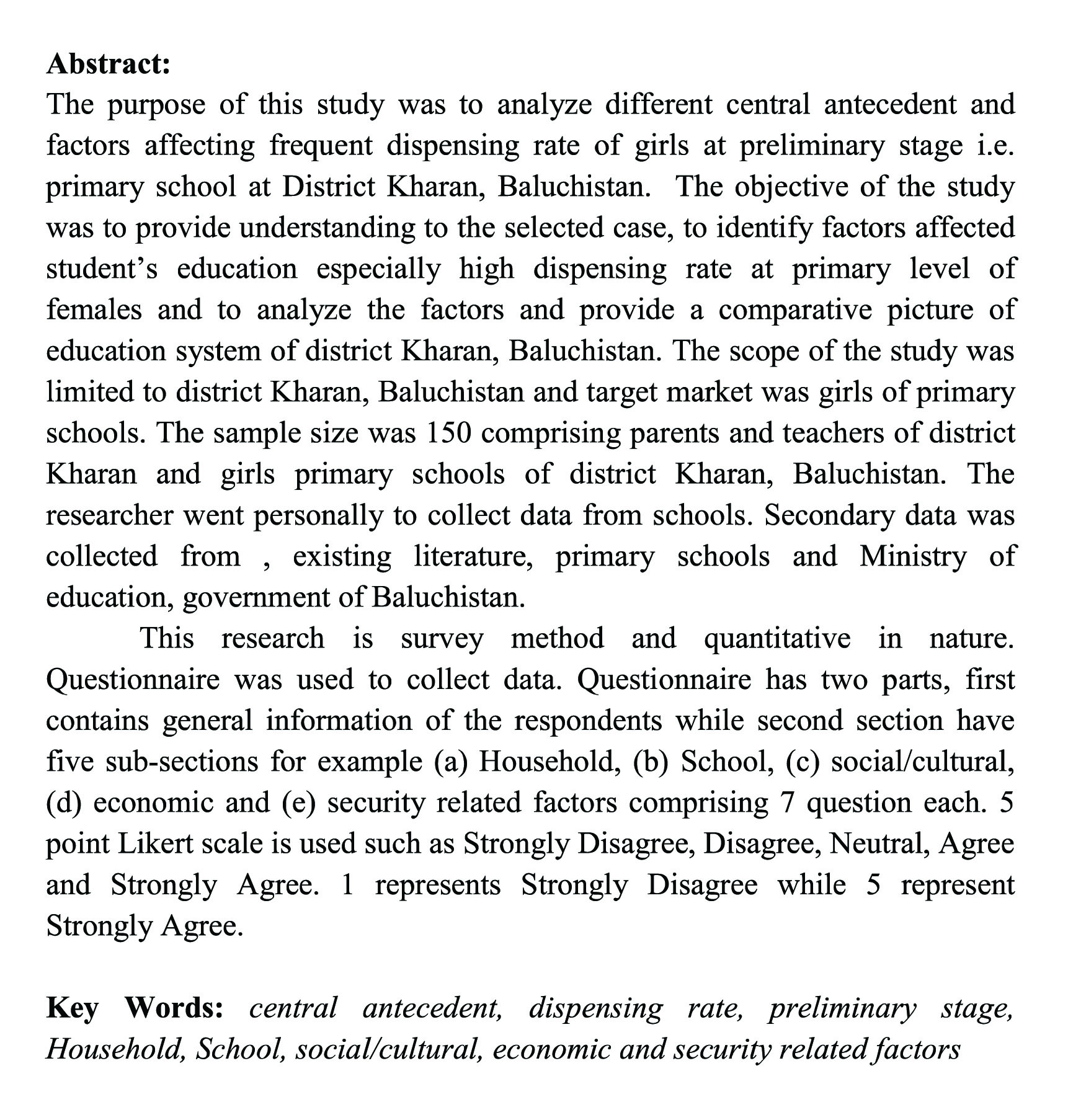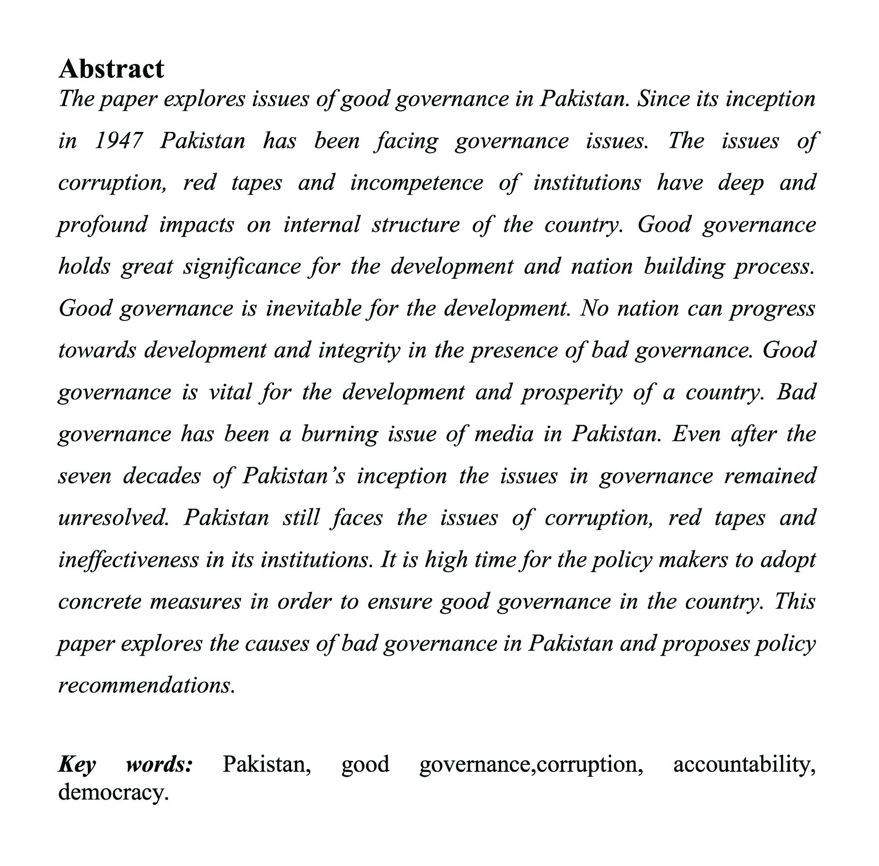 Factors affecting good governance in Pakistan, with special references to Balochistan (abstract)