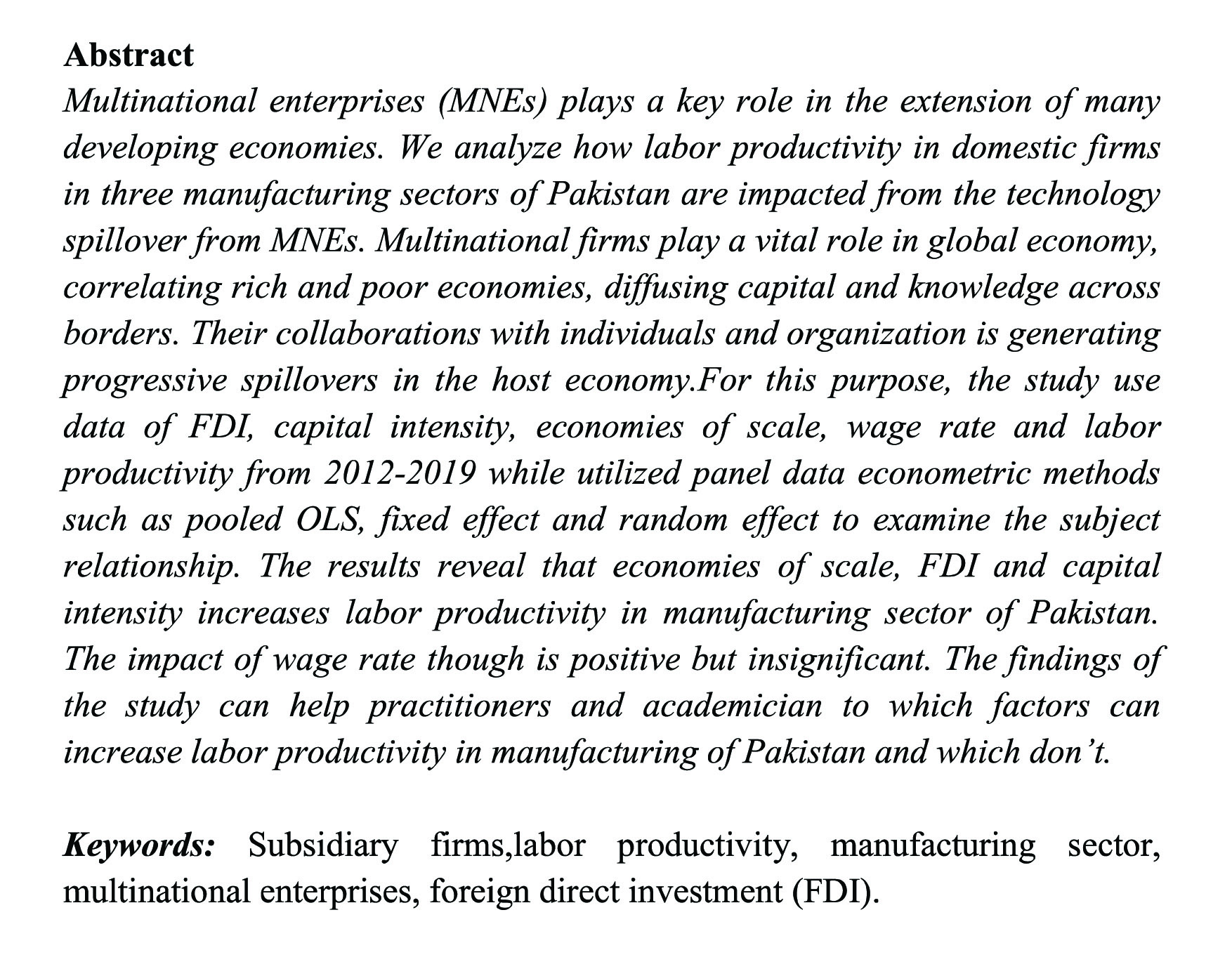 Subsidiary firms and its impact on labor productivity in manufacturing sector of