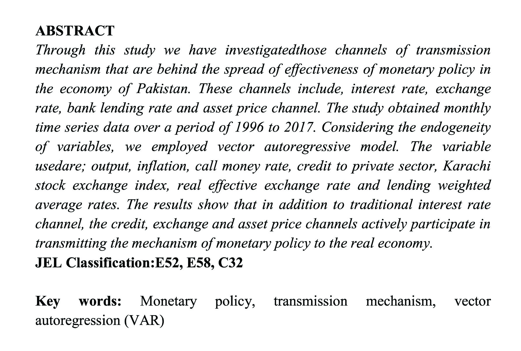 The Effectiveness of Monetary Policy in Balochistan (Pakistan): An Empirical Investigation (abstract)