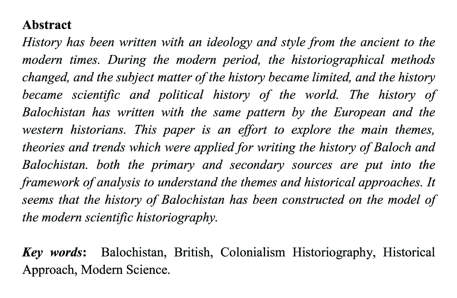 Historiography in the modern world: An analysis of the history writing on colonial Balochistan (abstract)