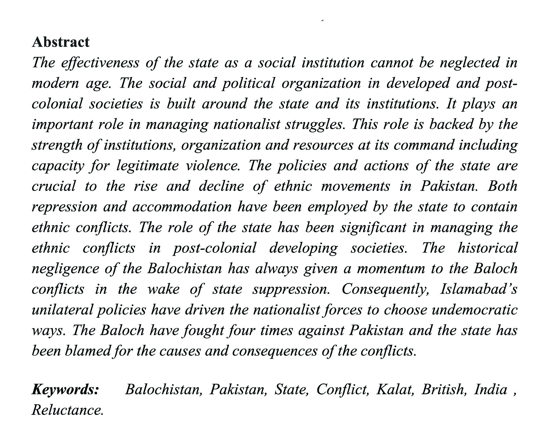 The Accession of Kalat State to Pakistan: An Analysis (abstract)