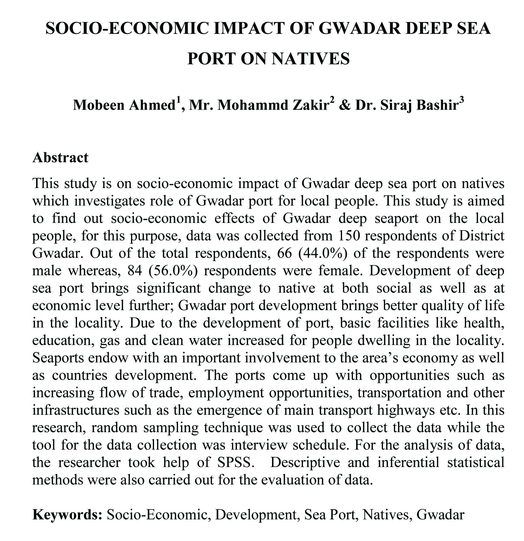 SOCIO-ECONOMIC IMPACT OF GW ADAR DEEP SEA PORT ON NATIVES (abstract)