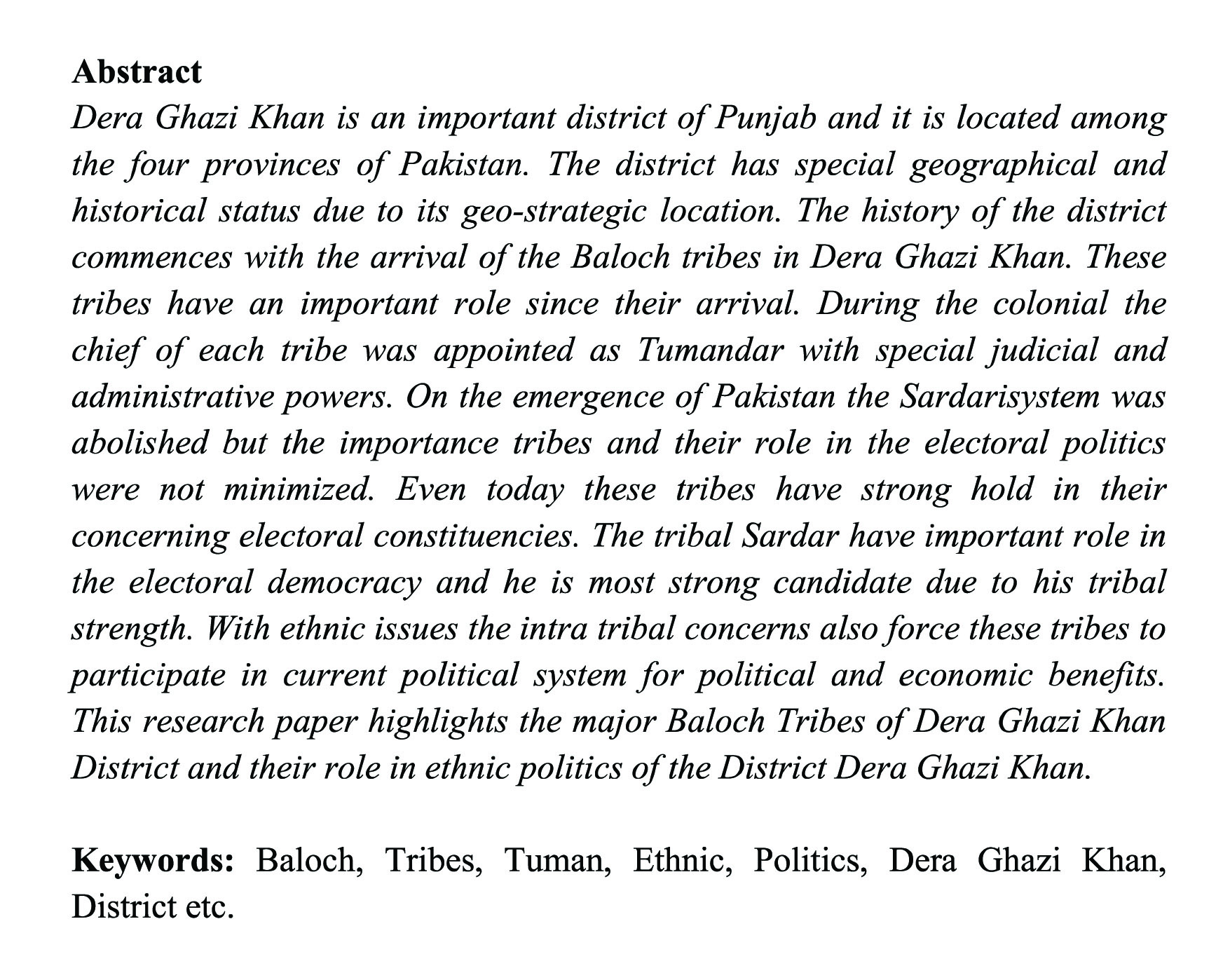 The Important Tribes of Dera Ghazi Khan and their Political influence on the