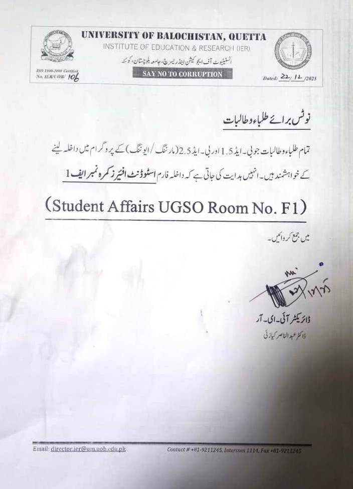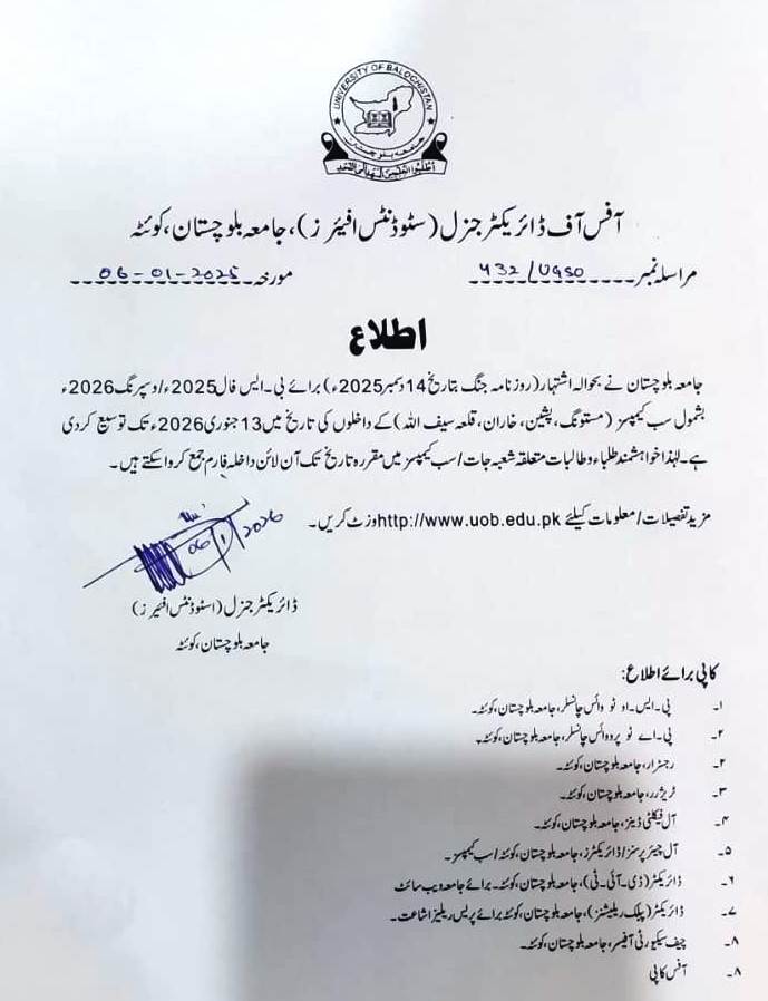 π’ The University of Balochistan and it's all campuses except Kharan Campus will remain closed on account of winter vacations from 08-12-2025 to 03-03-2026. β