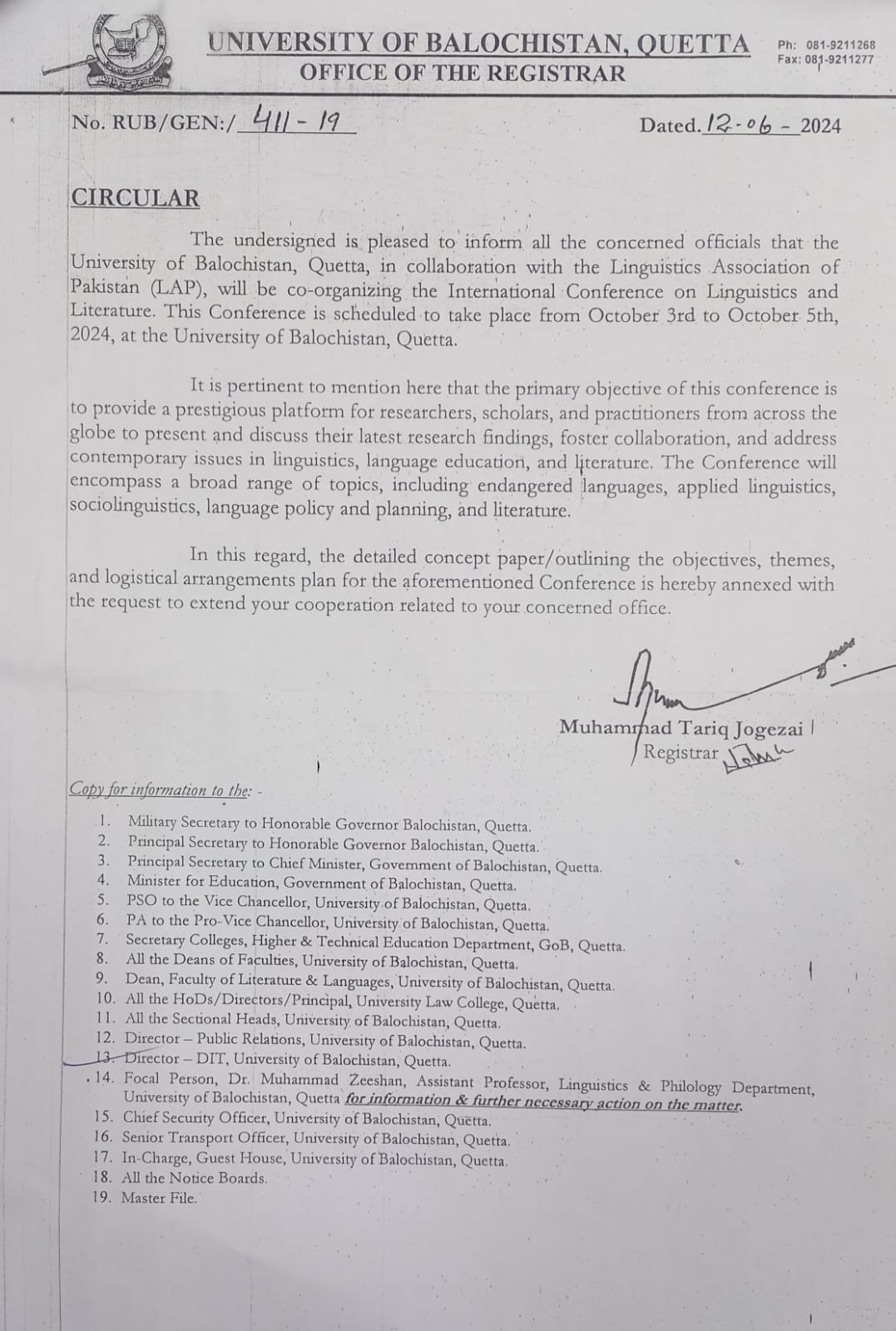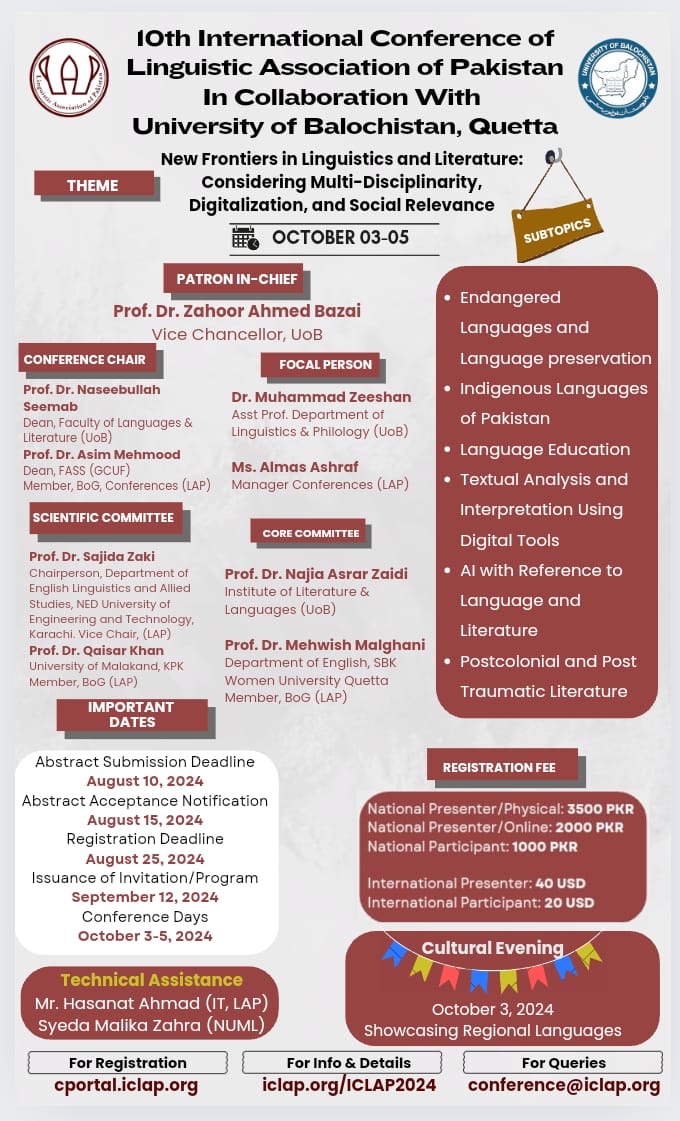 May 18 - 20, 2026 - University of Balochistan, Quetta, Pakistan |