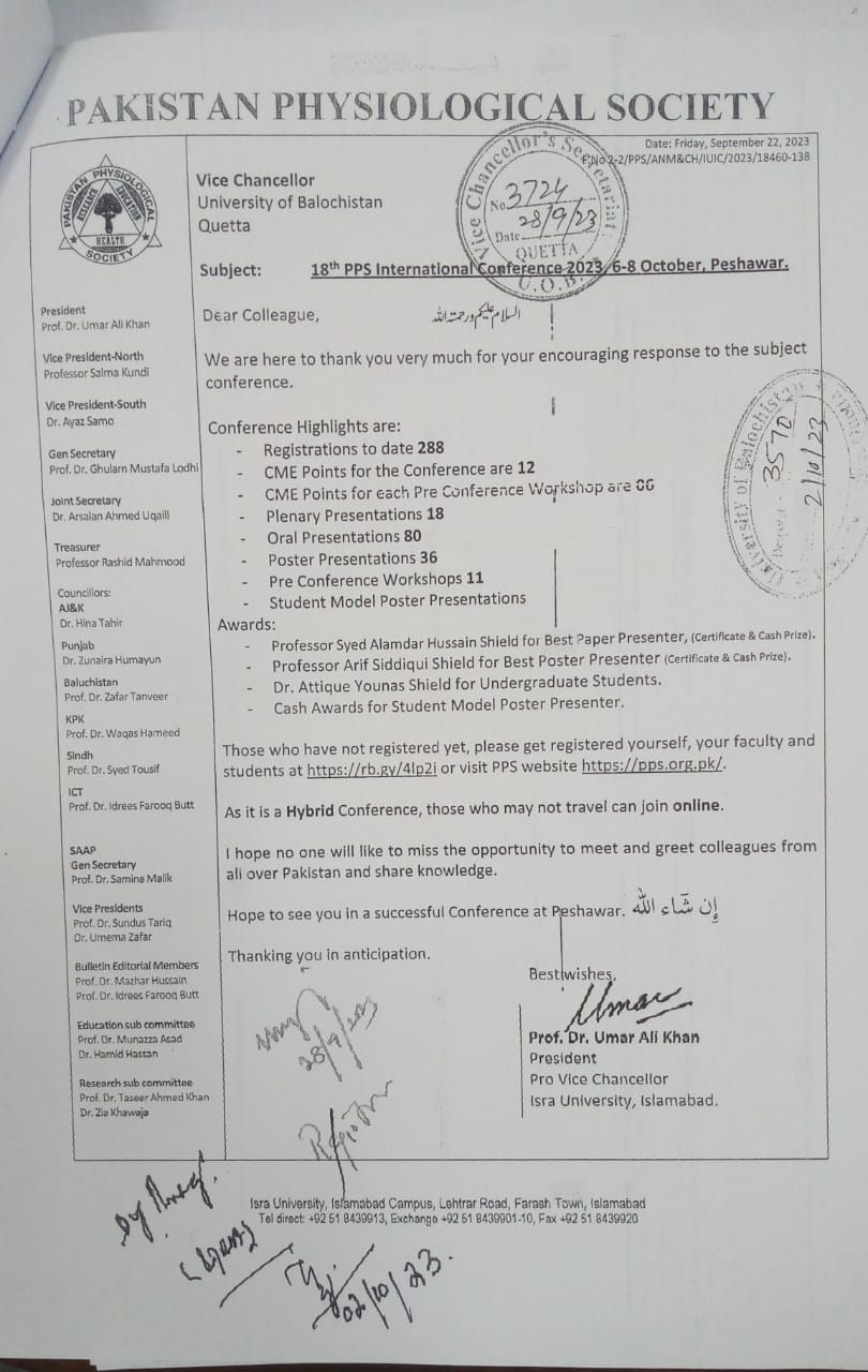 | 18th PPS International Conference 2023, 6-8 October, Peshawar. |