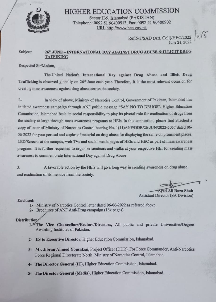 | International Day against Drug abuse & illicit drug Trafficking (26-June-2022) |