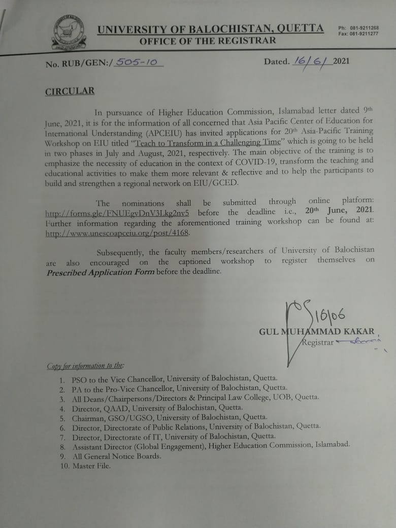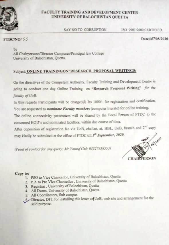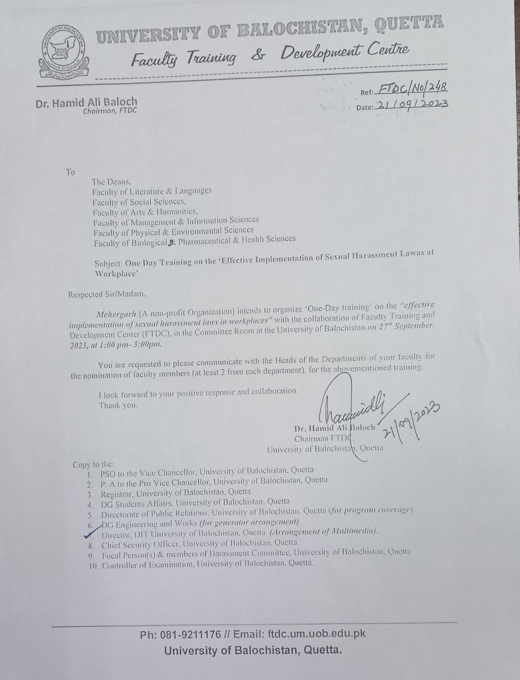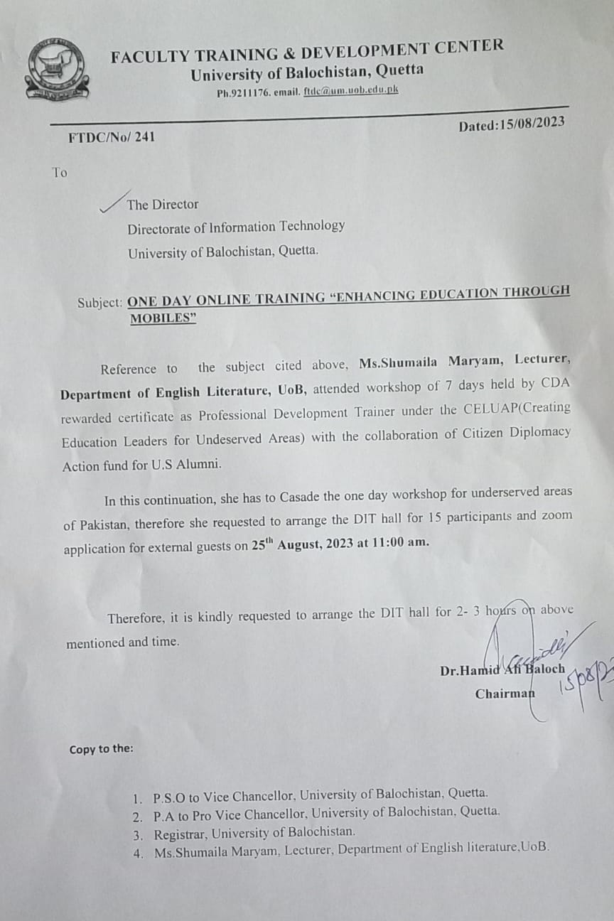 | 10 Days Professional Development Training for Upgraded Administrative staff University of Balochistan |