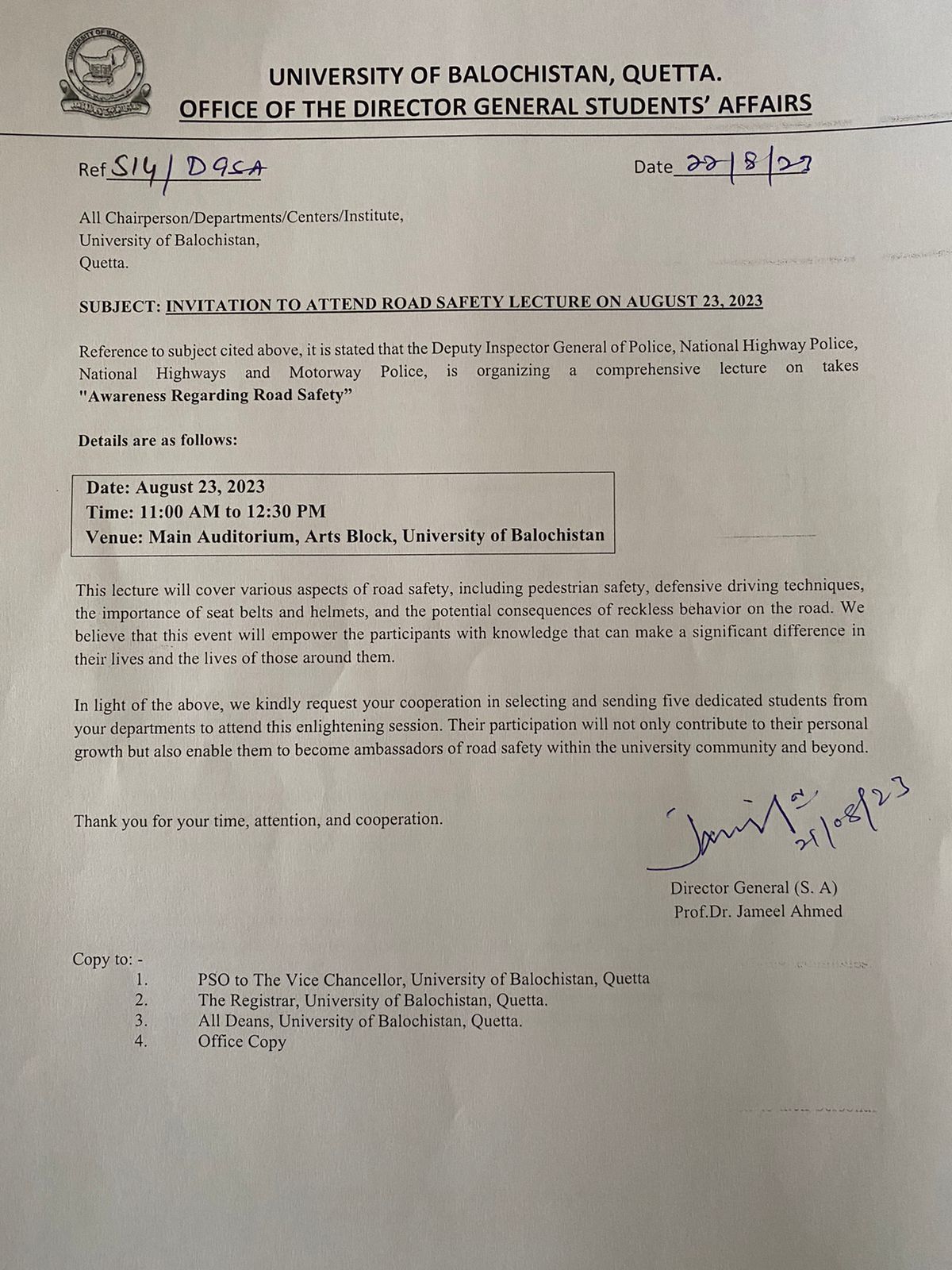 | Invitation to attend Road Safety Lecture on August 23, 2023 |