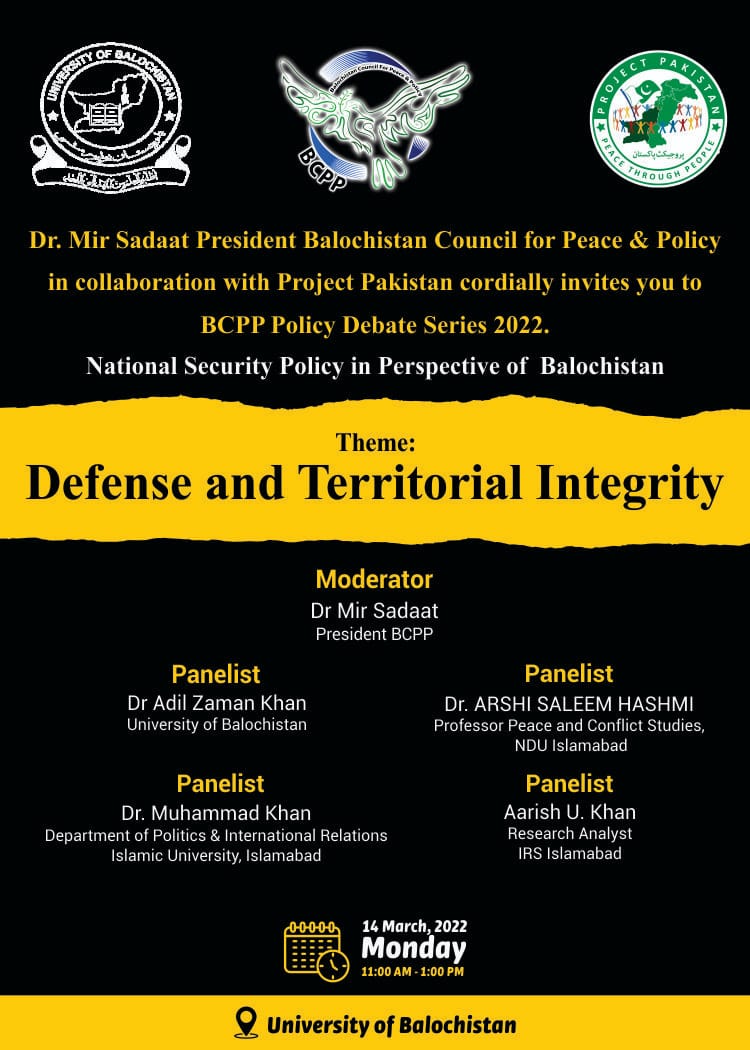 | National Security Policy in Perspective of Balochistan (Theme: Defense and Territorial Integrity) |
