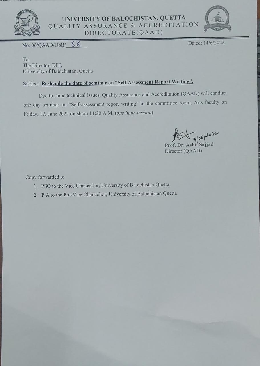 | Reschedule the date of seminar "Self Assessment report writing" |