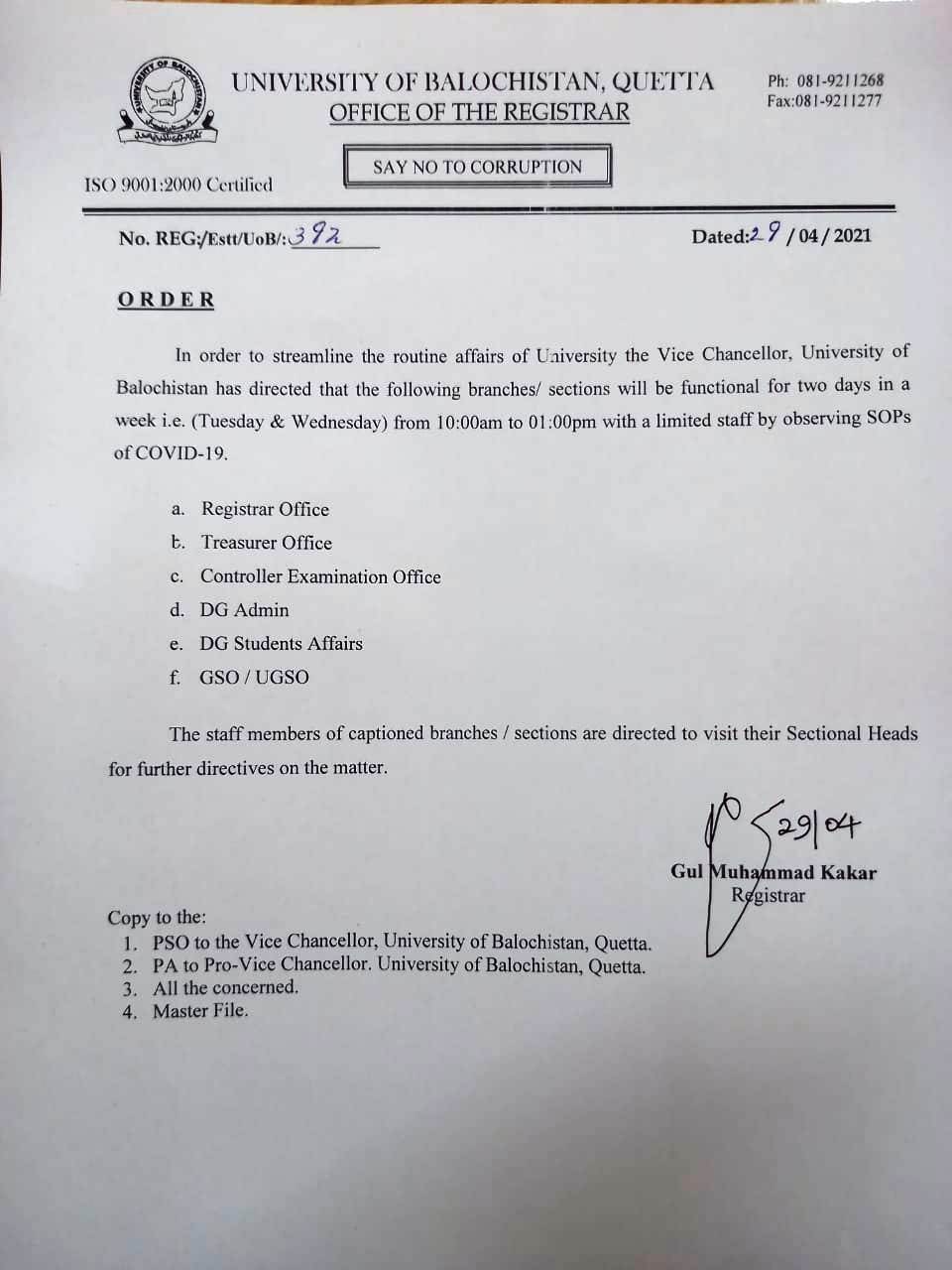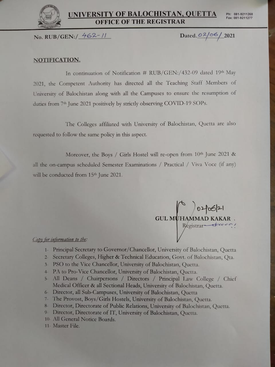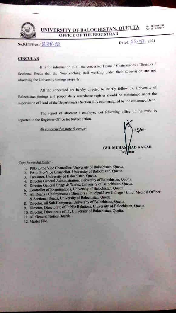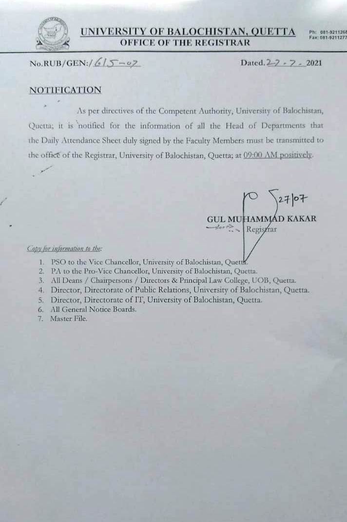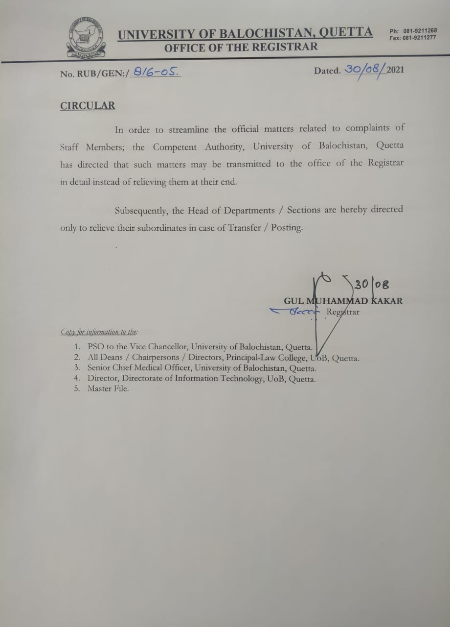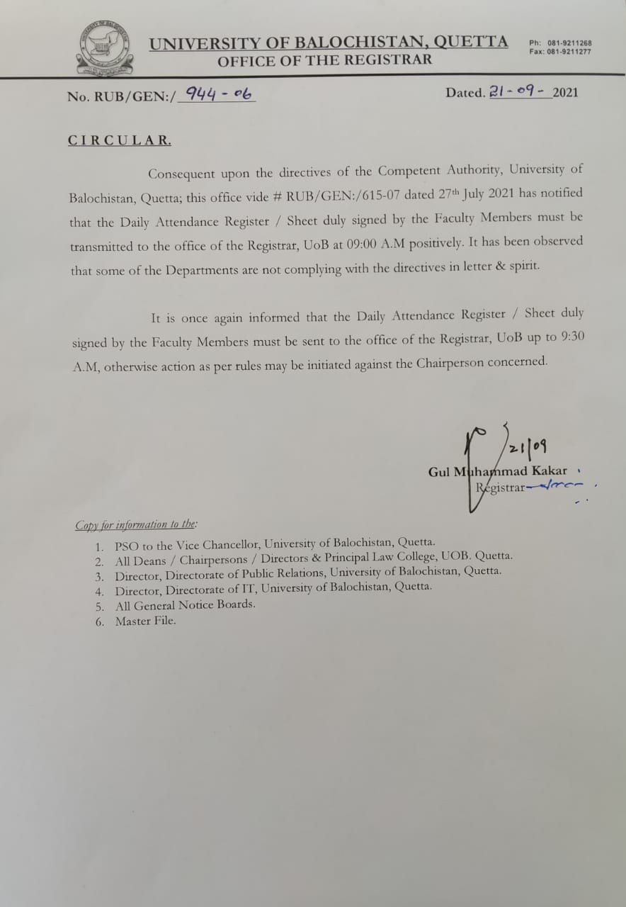 staff members (Teaching / Non Teaching) of UoB are directed to submit a copy of