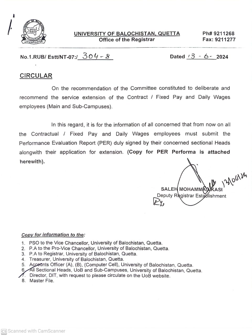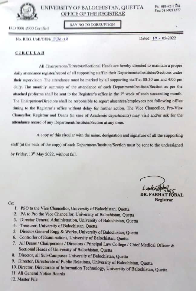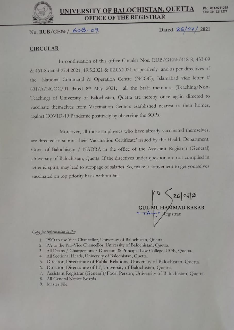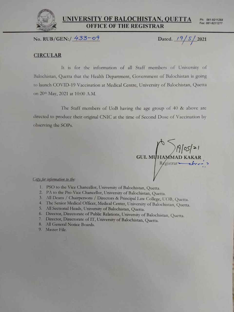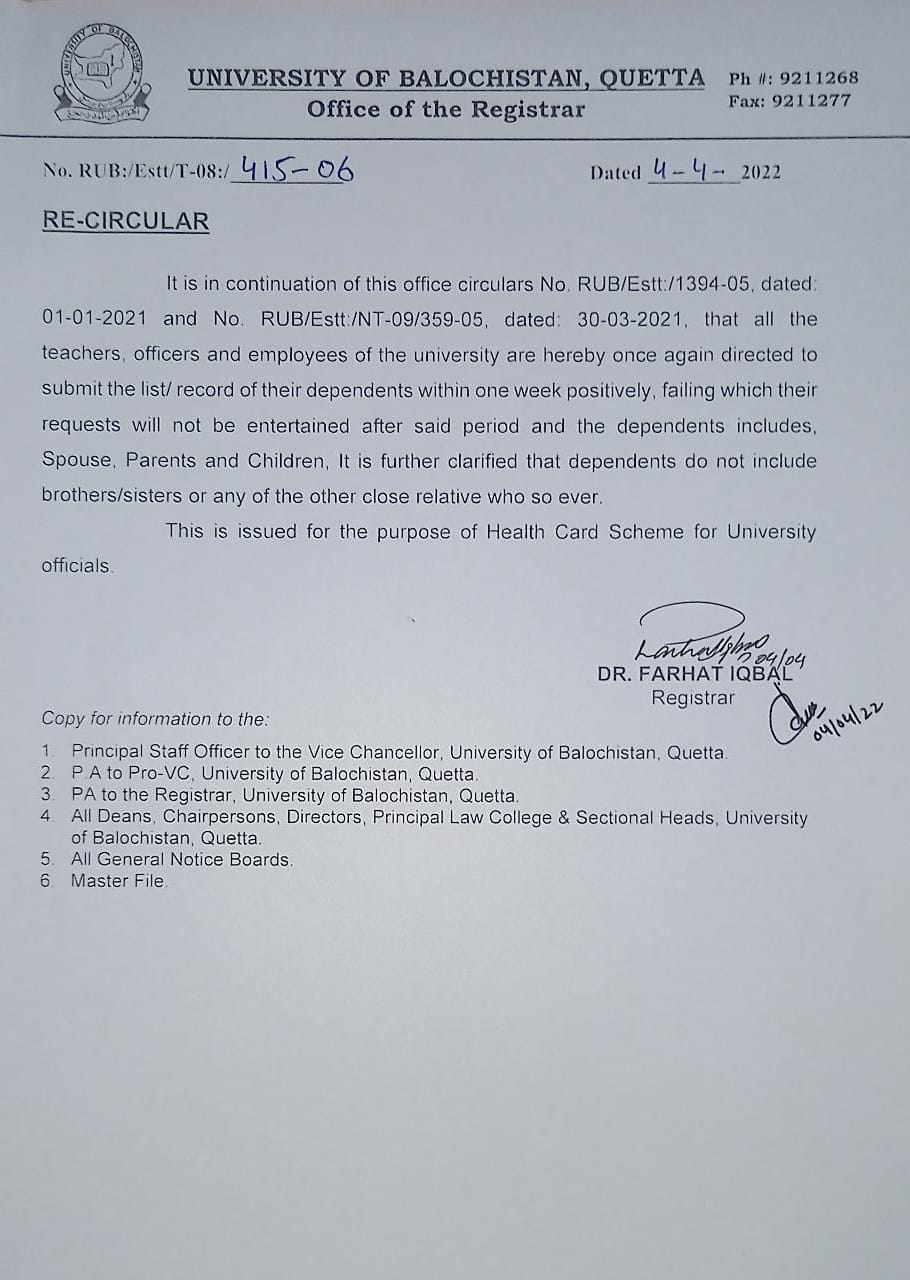 staff members (Teaching / Non Teaching) of UoB are directed to submit a copy of