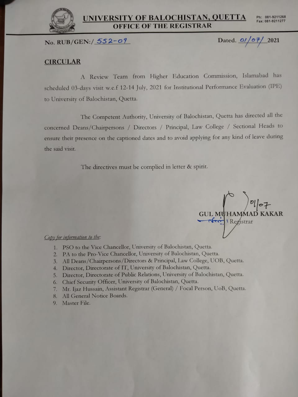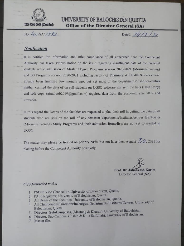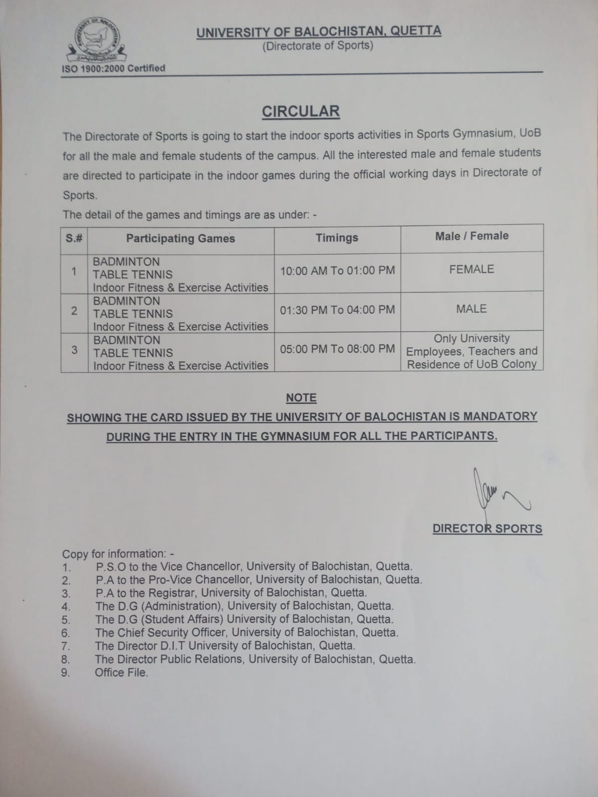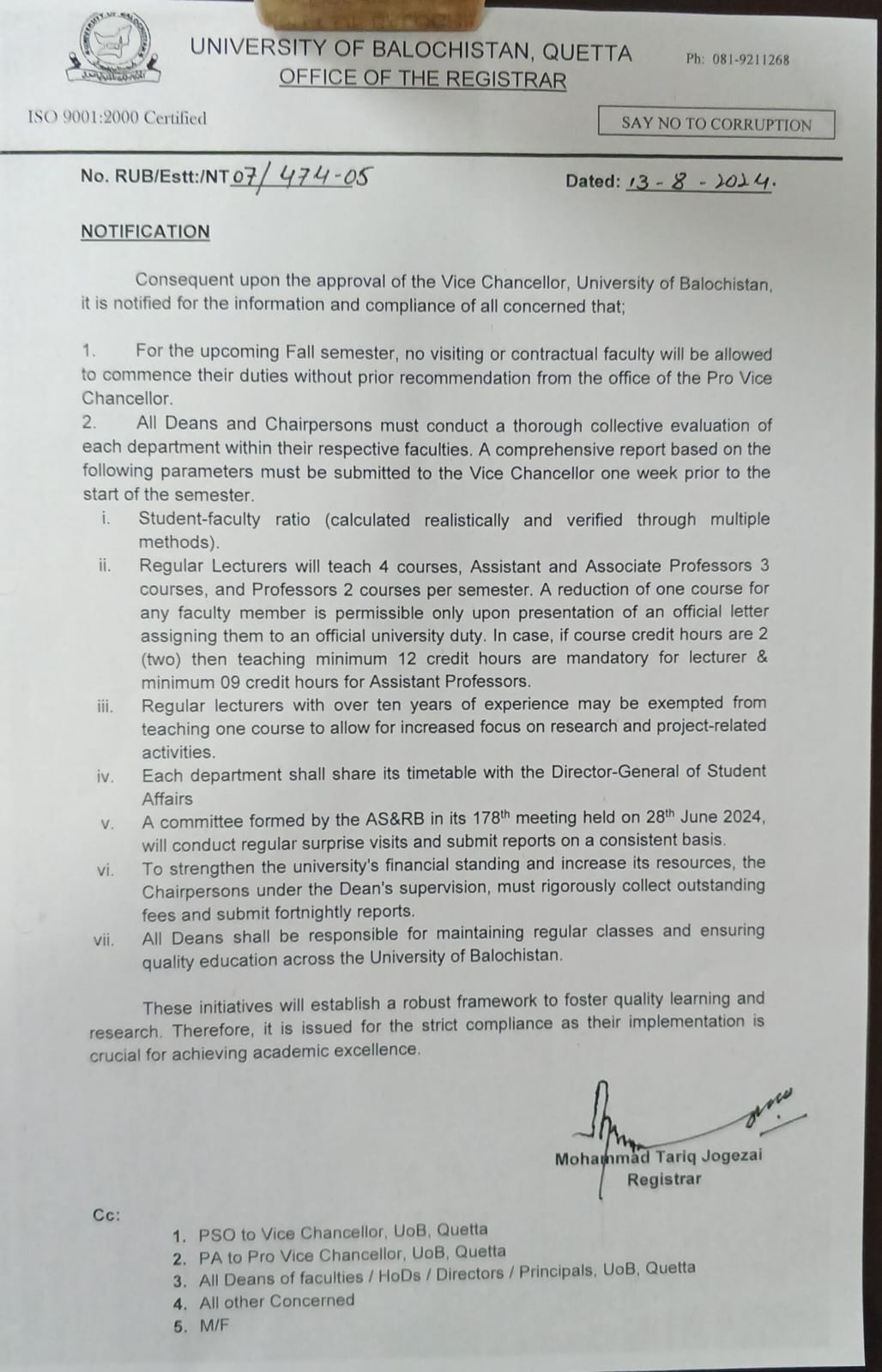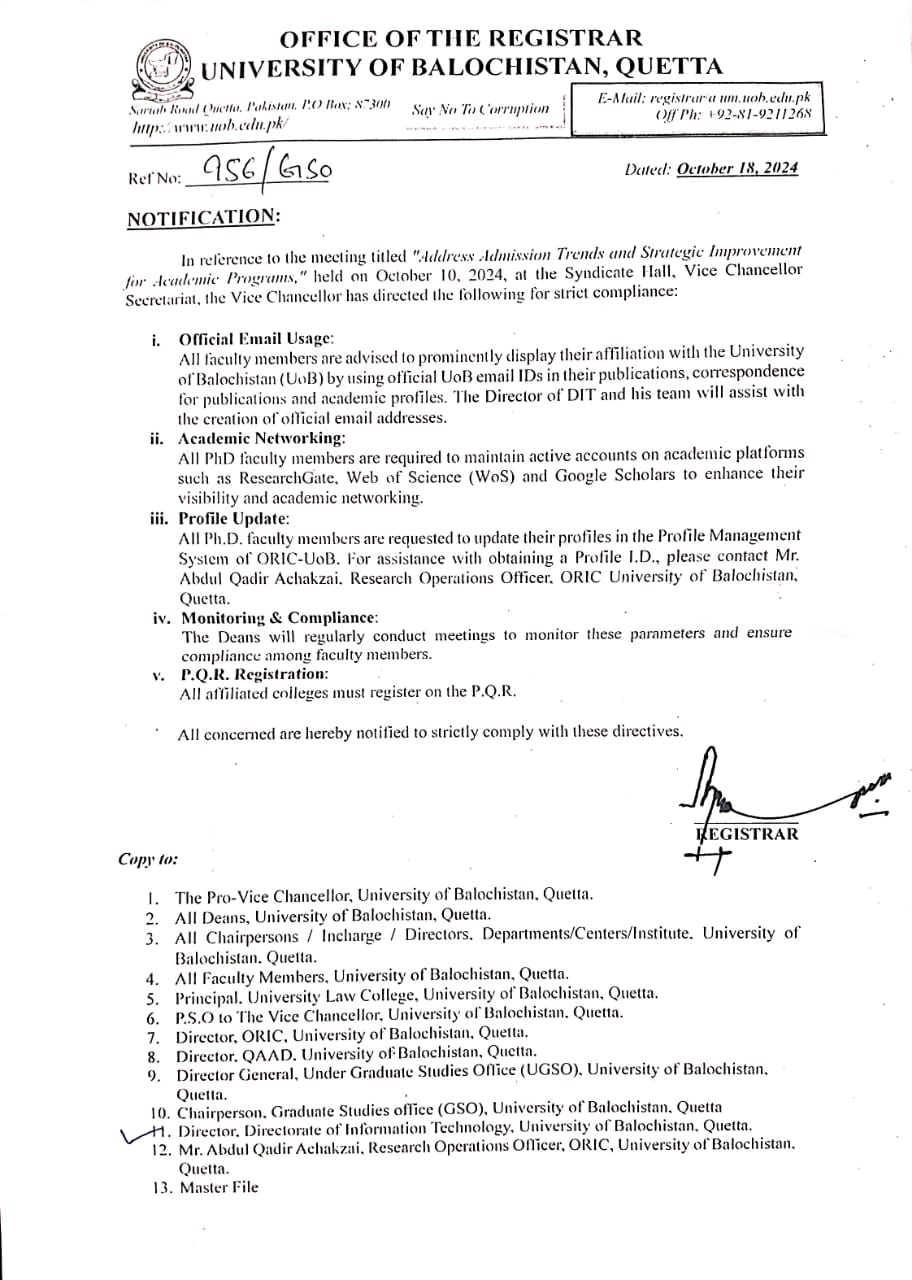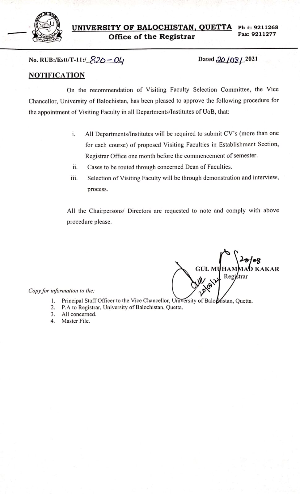 staff members (Teaching / Non Teaching) of UoB are directed to submit a copy of