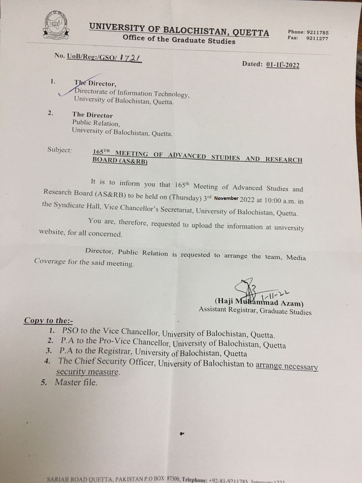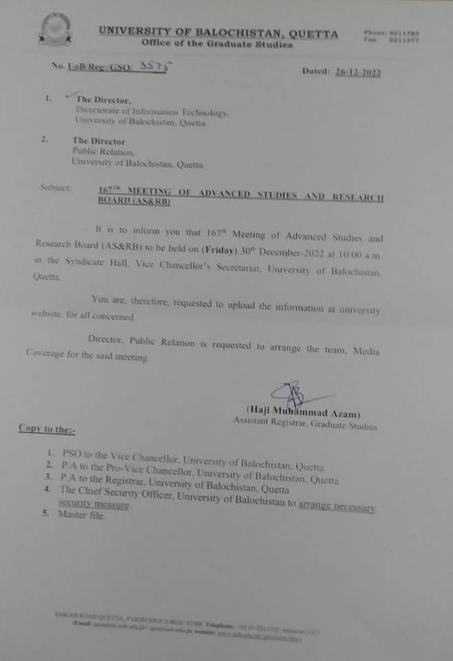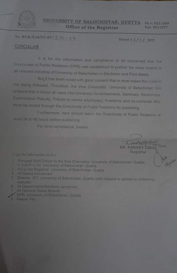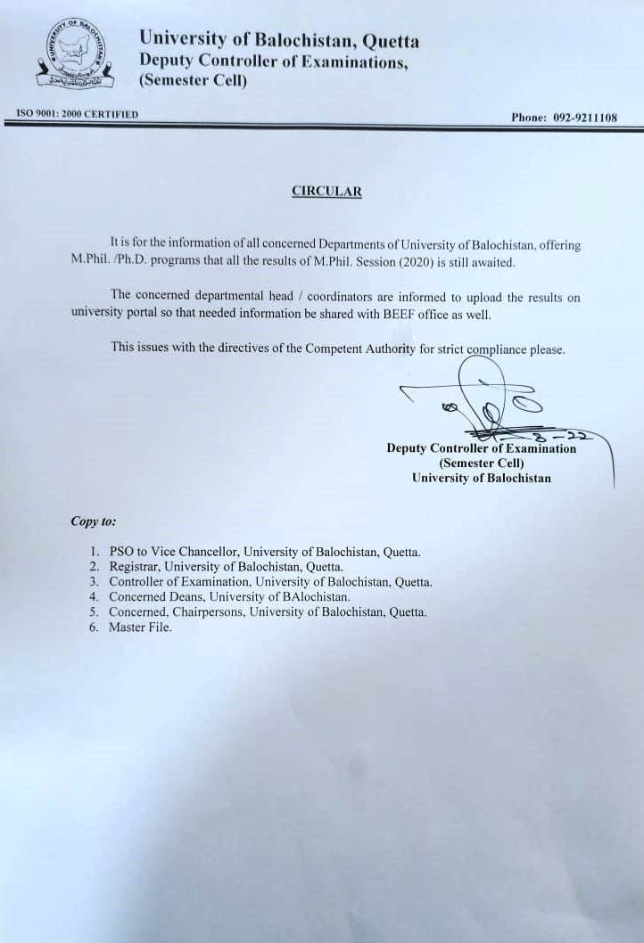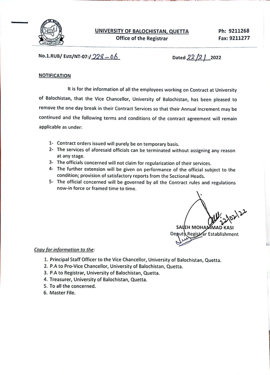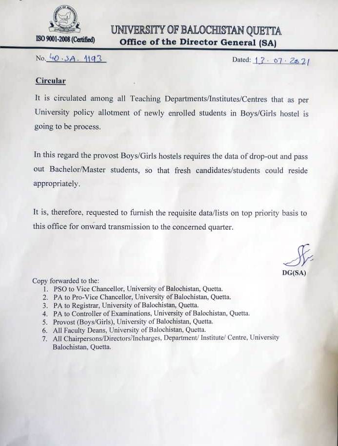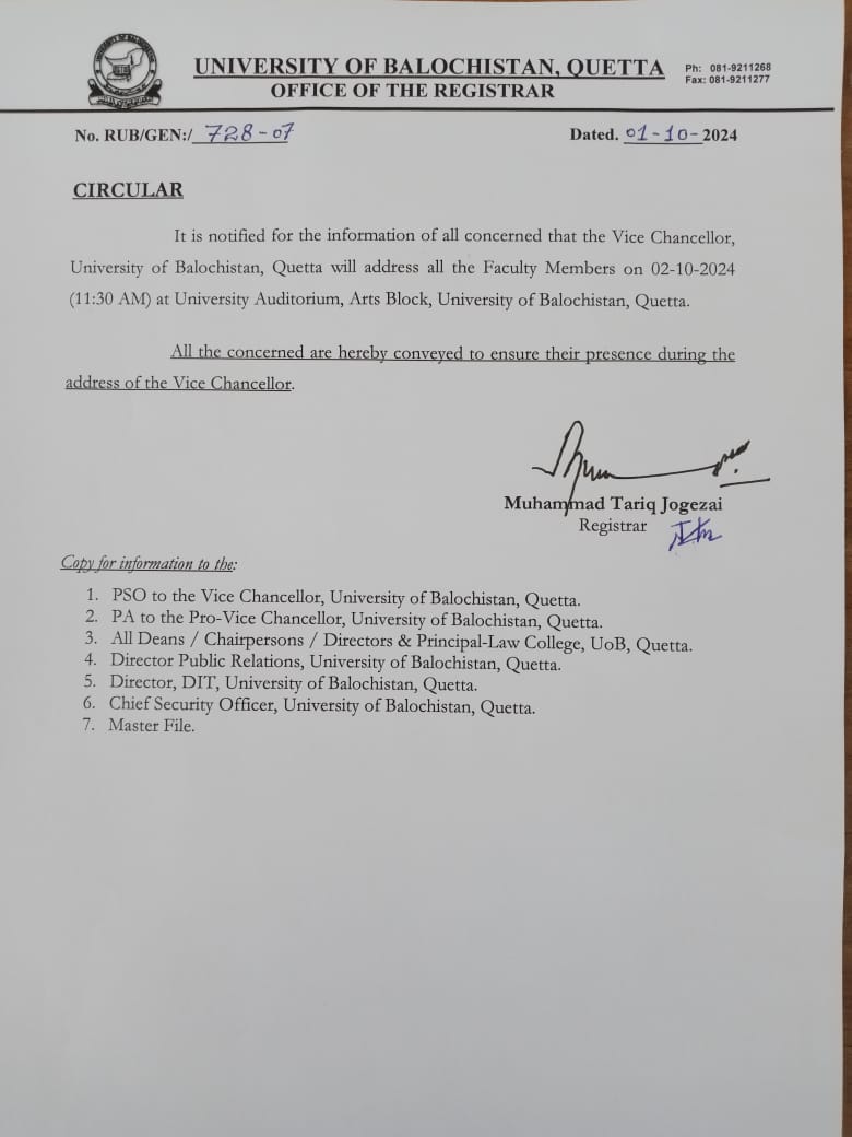 staff members (Teaching / Non Teaching) of UoB are directed to submit a copy of