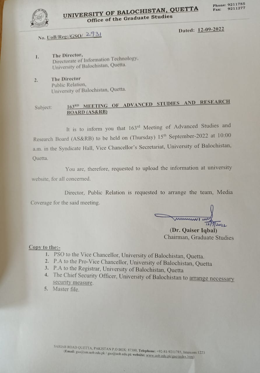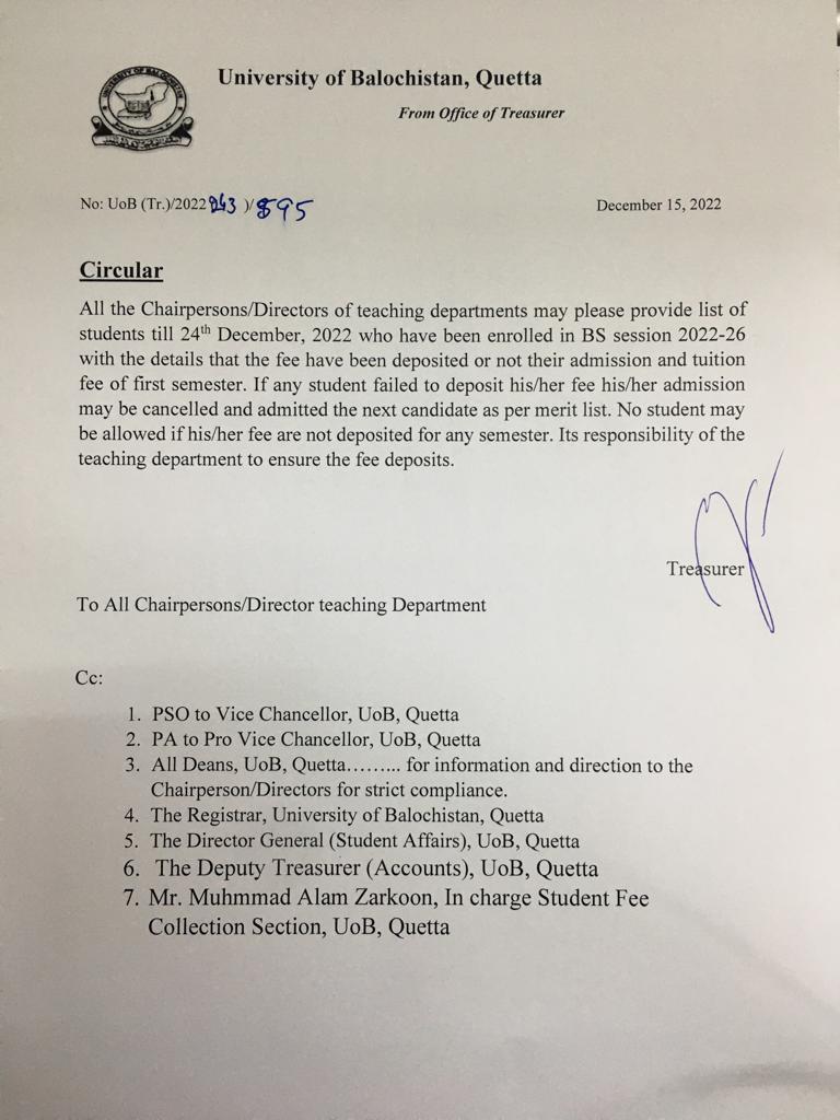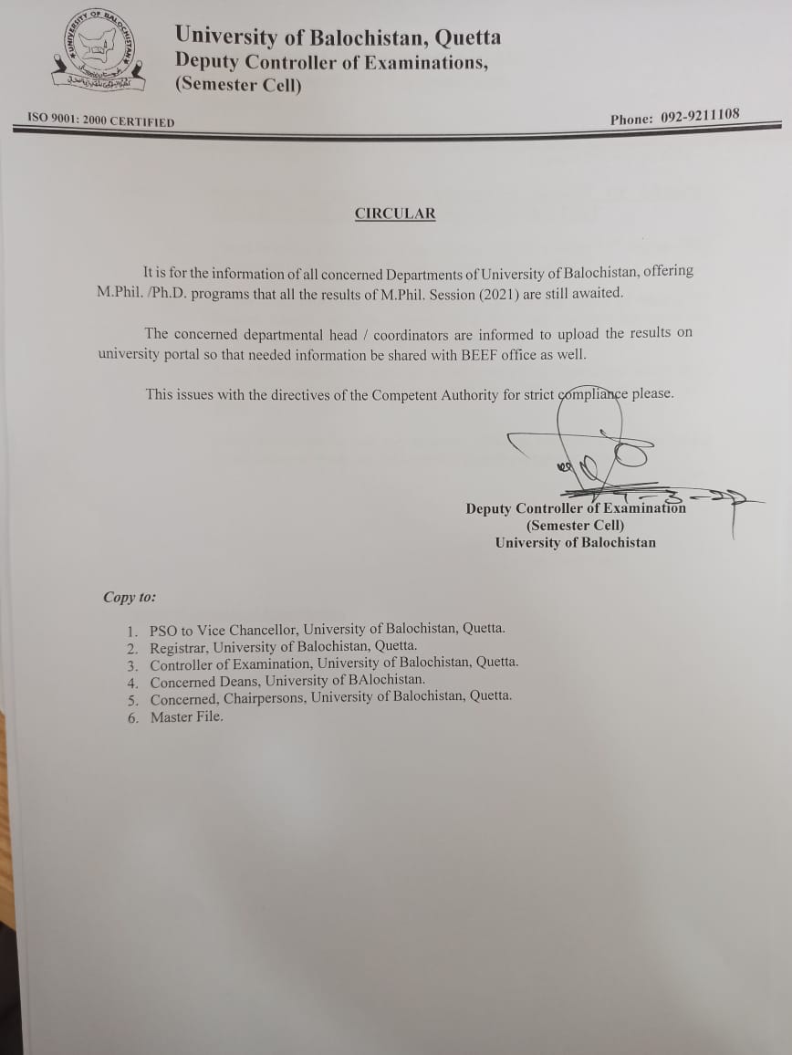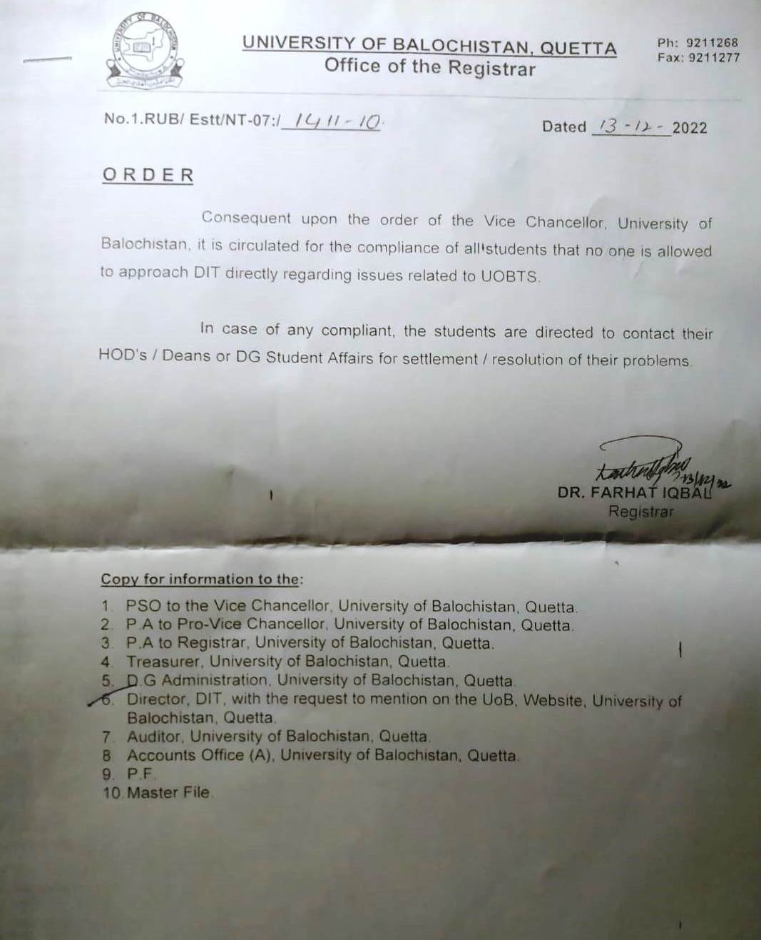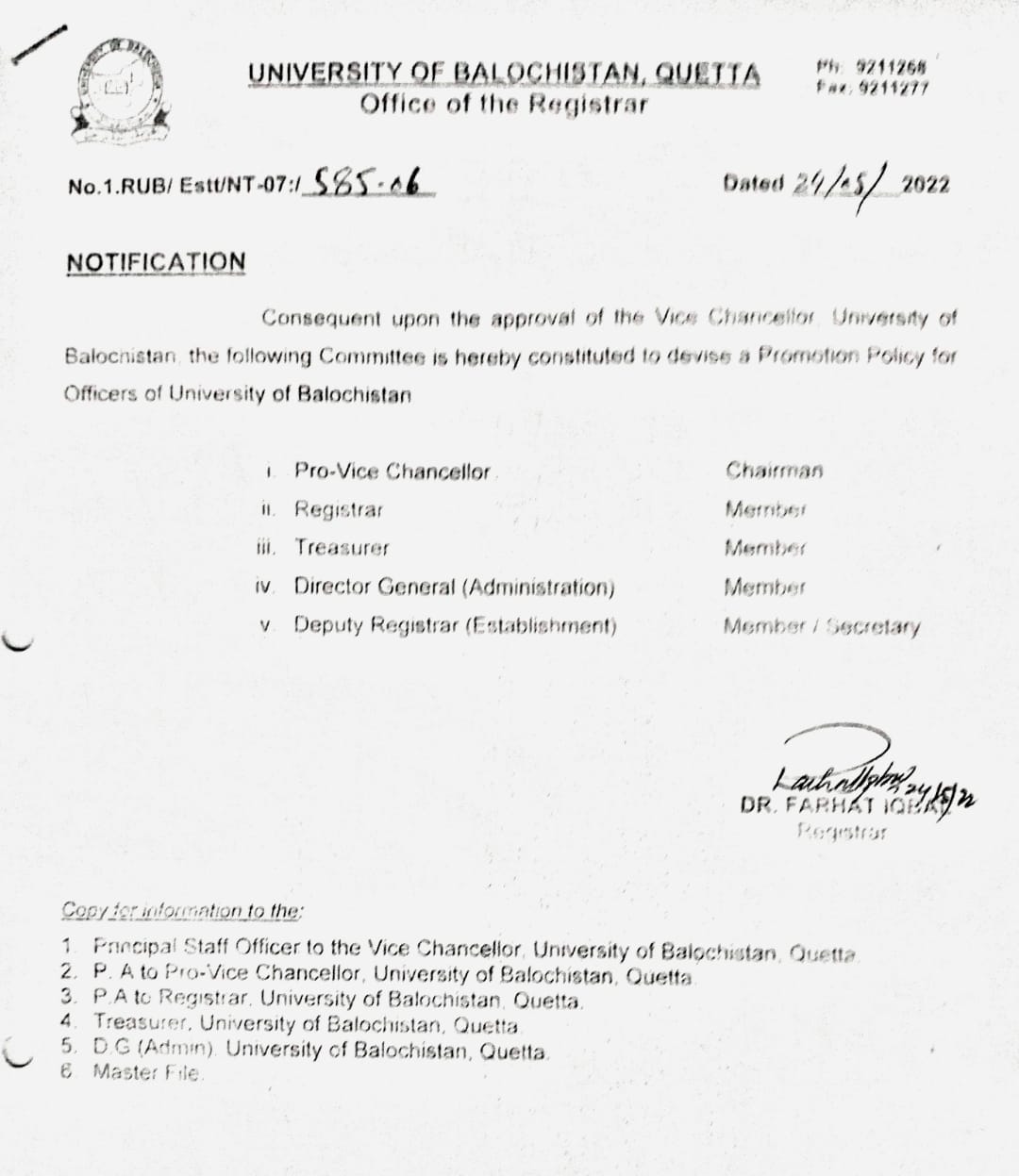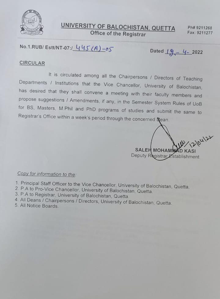 staff members (Teaching / Non Teaching) of UoB are directed to submit a copy of