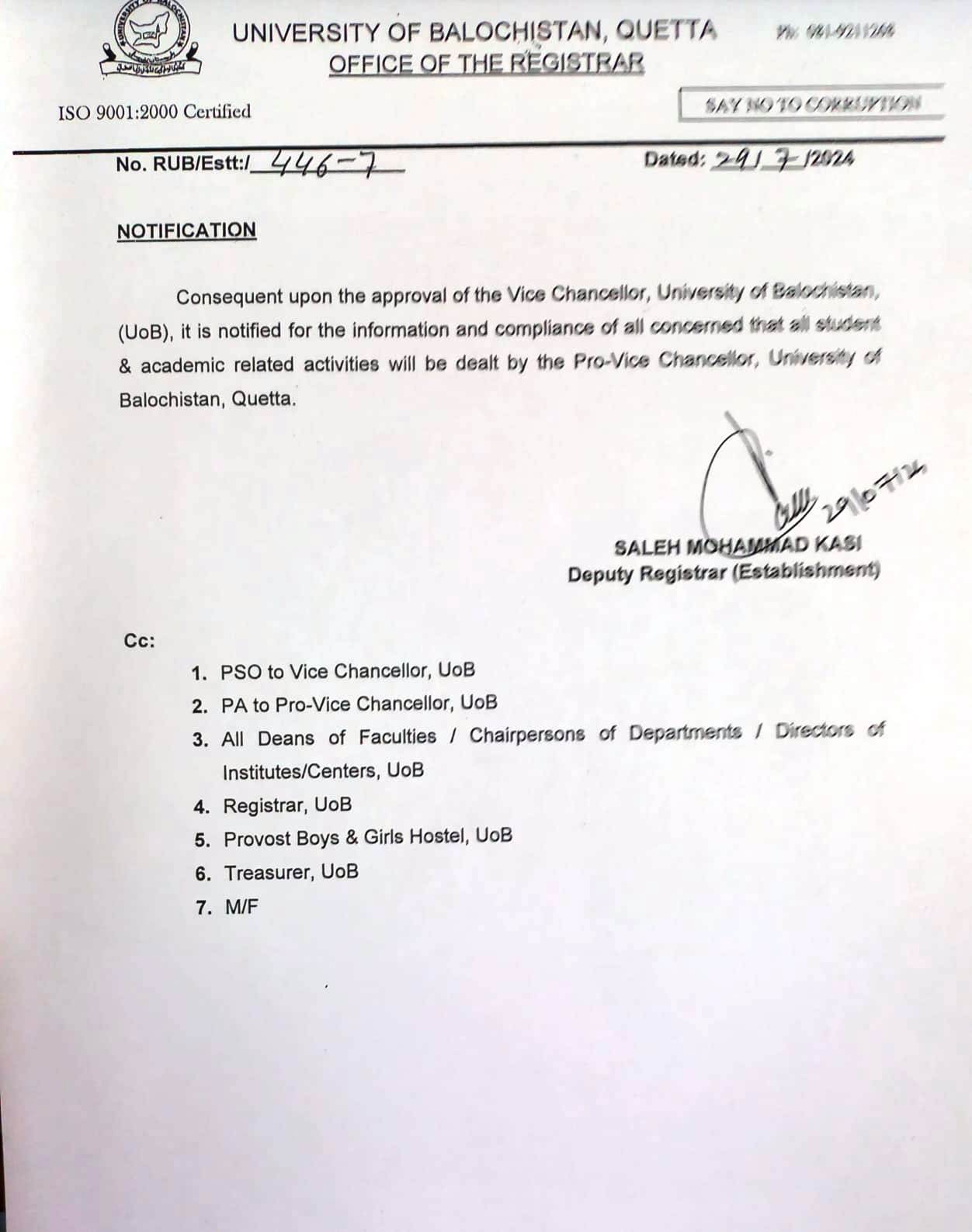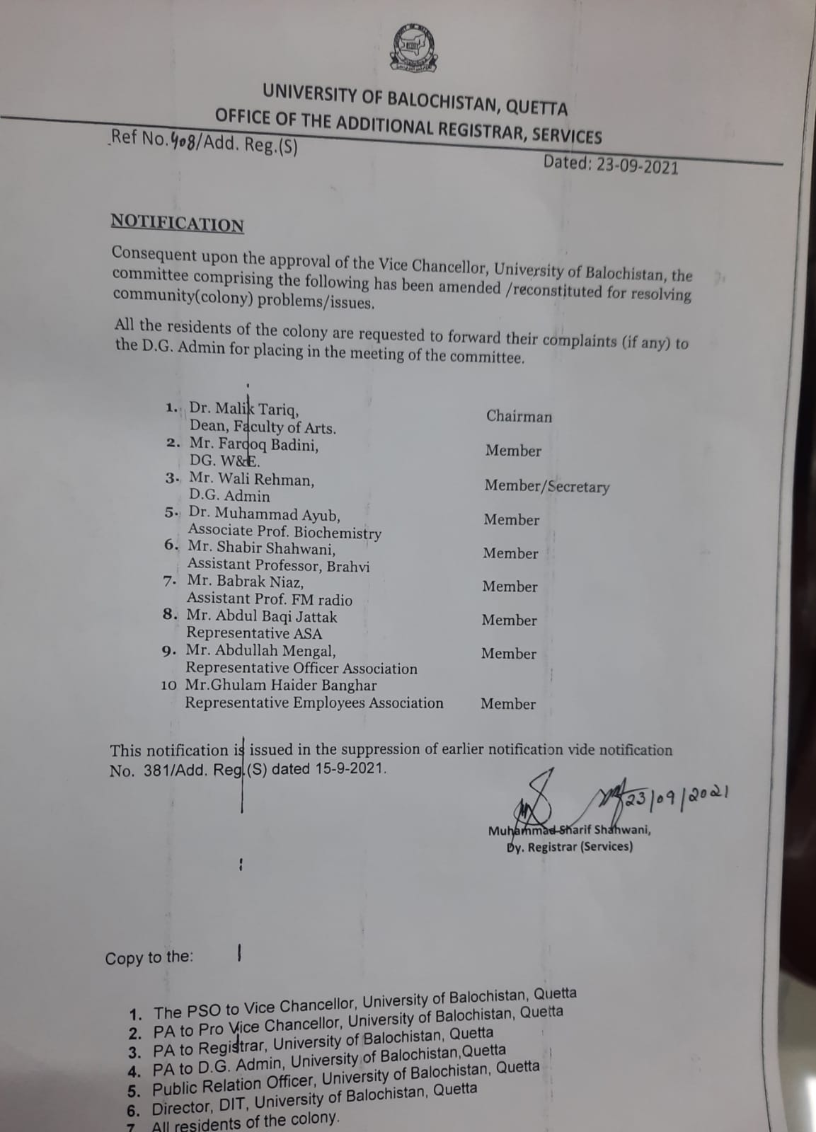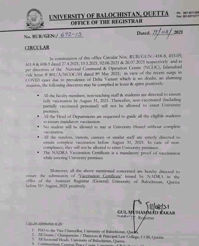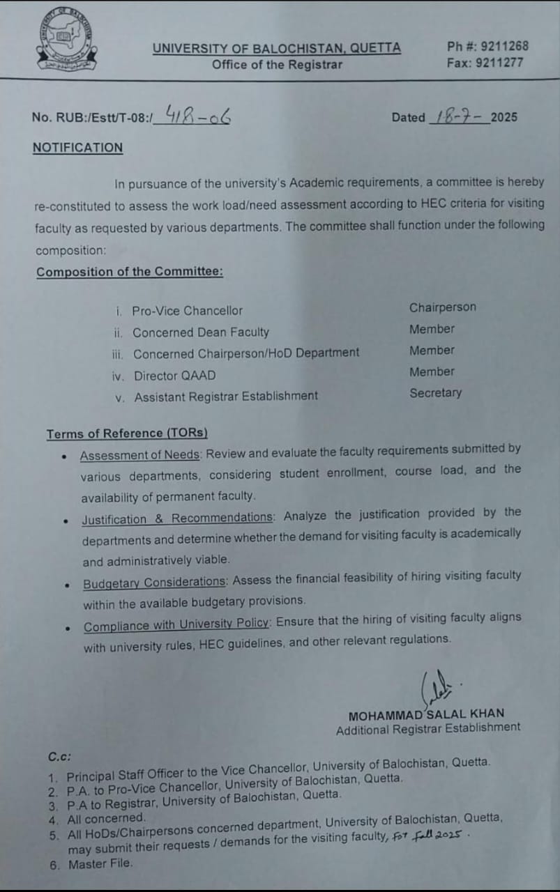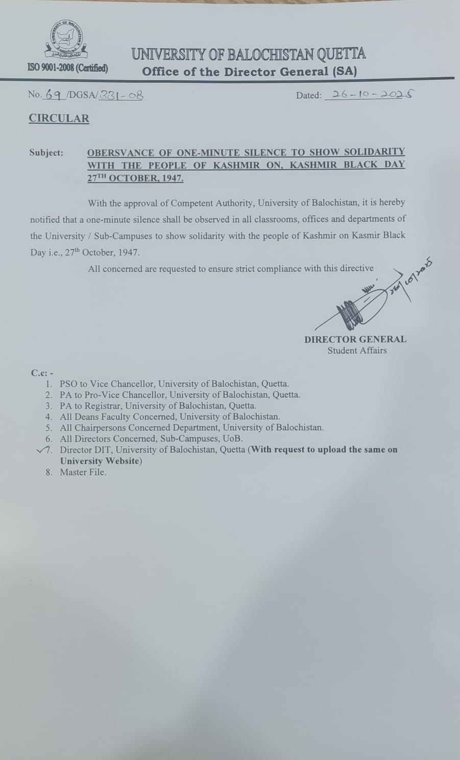 staff members (Teaching / Non Teaching) of UoB are directed to submit a copy of