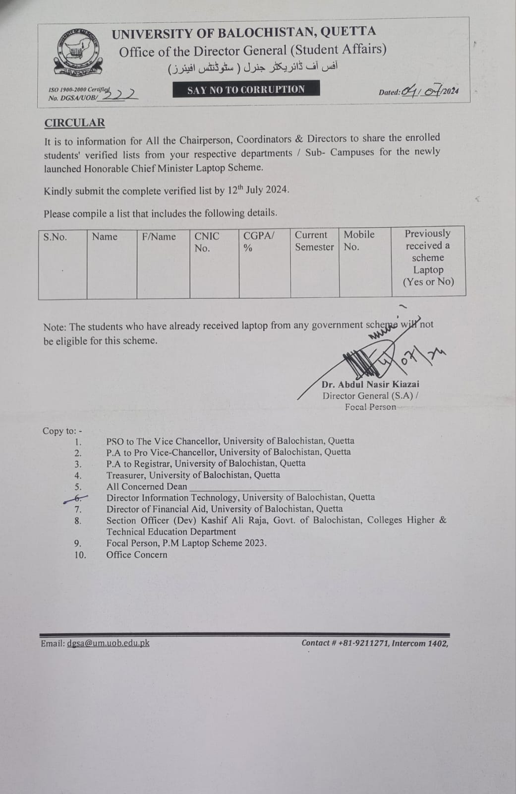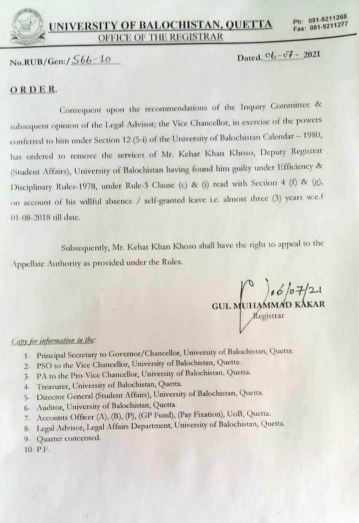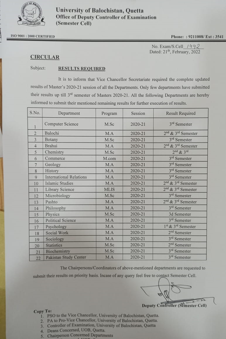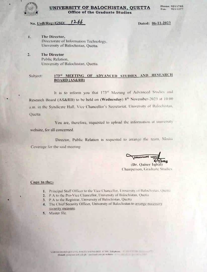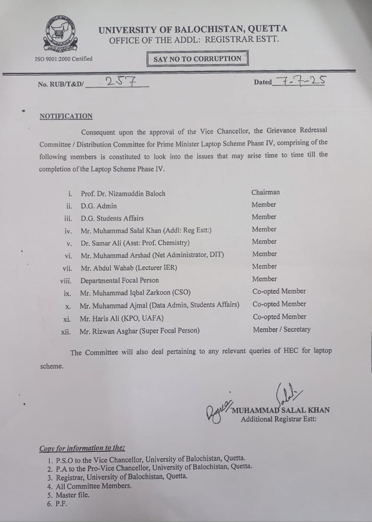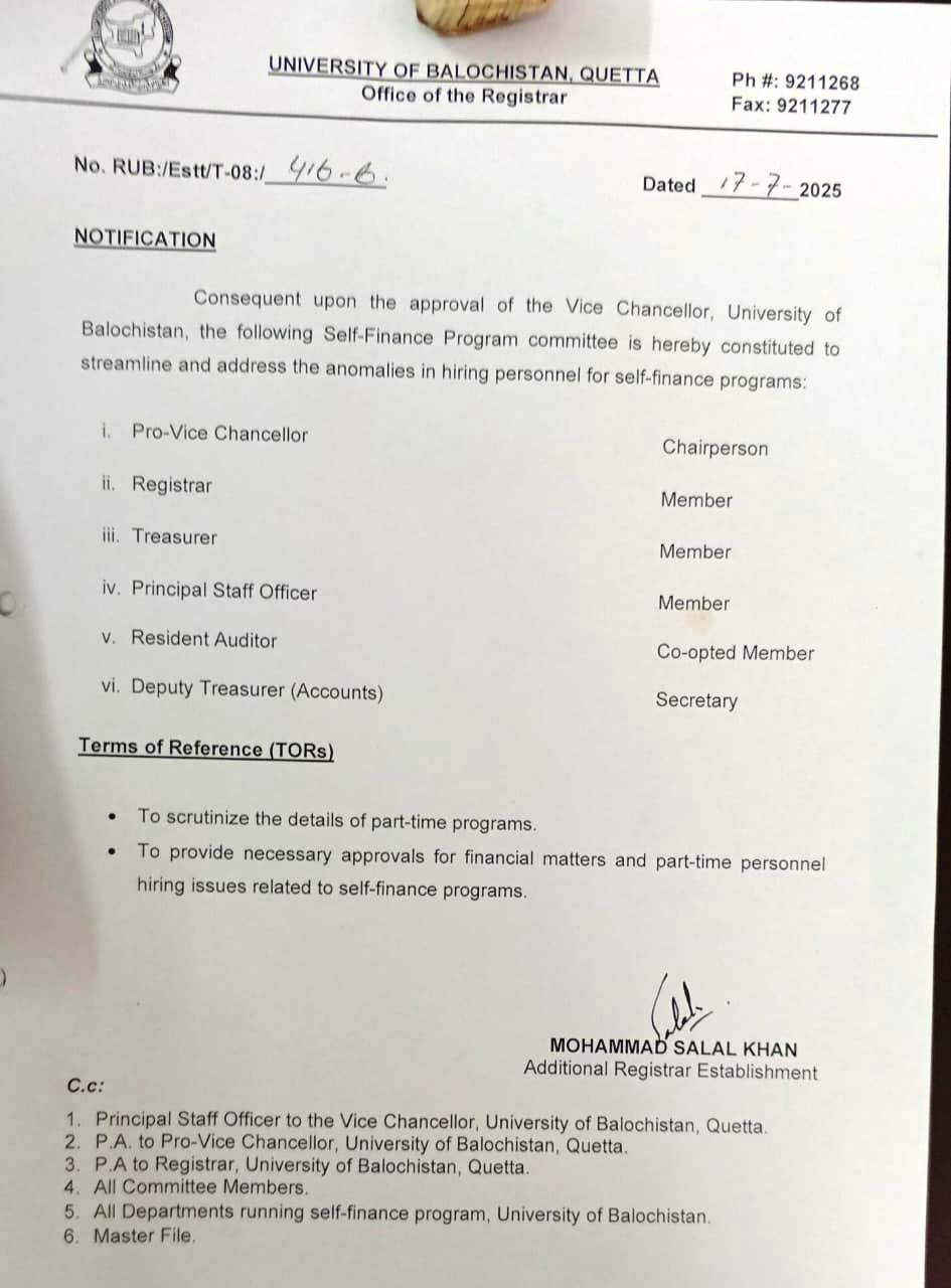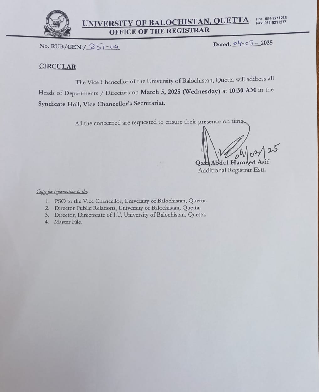 staff members (Teaching / Non Teaching) of UoB are directed to submit a copy of