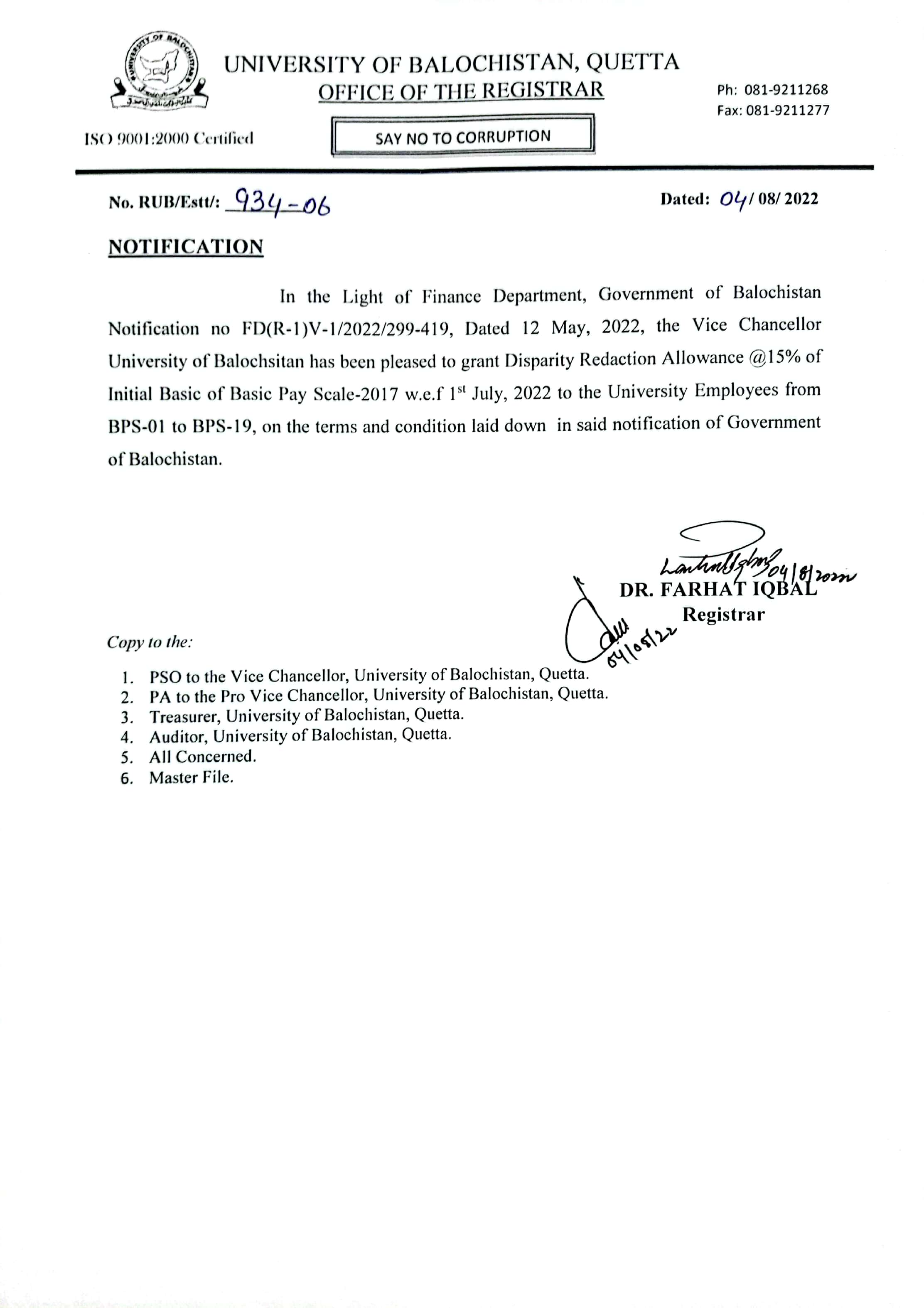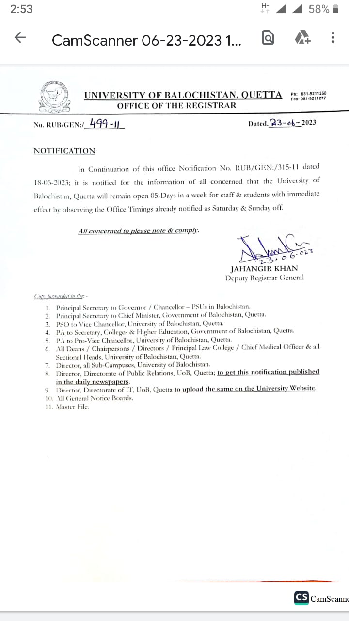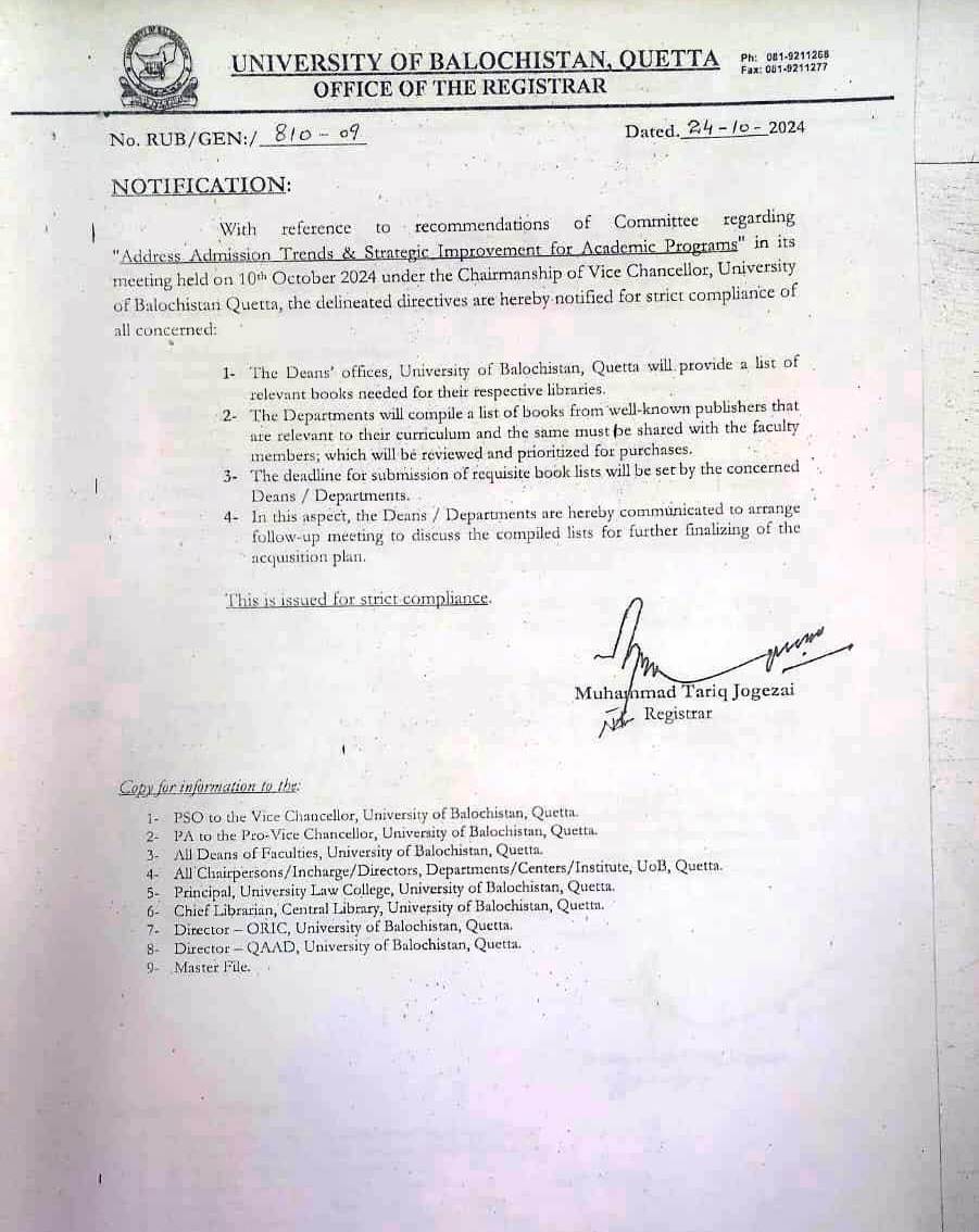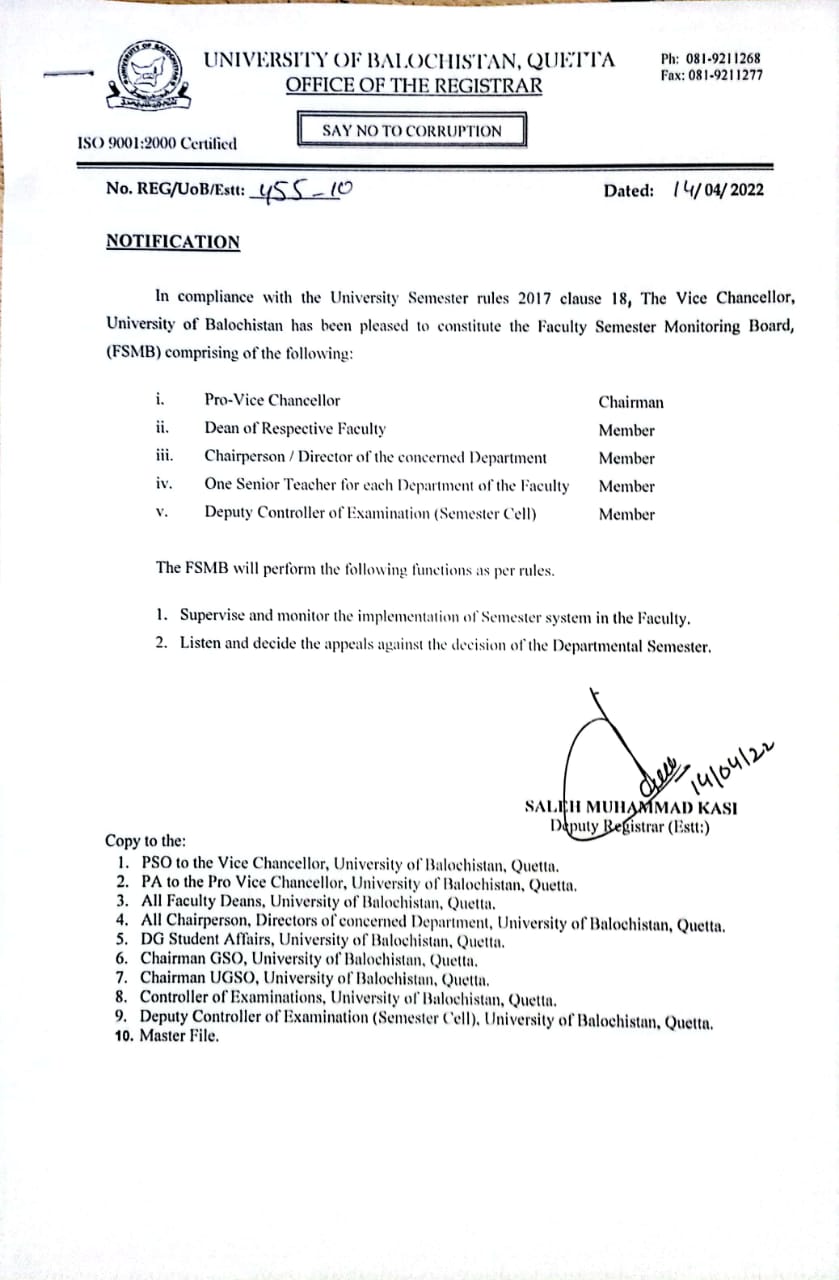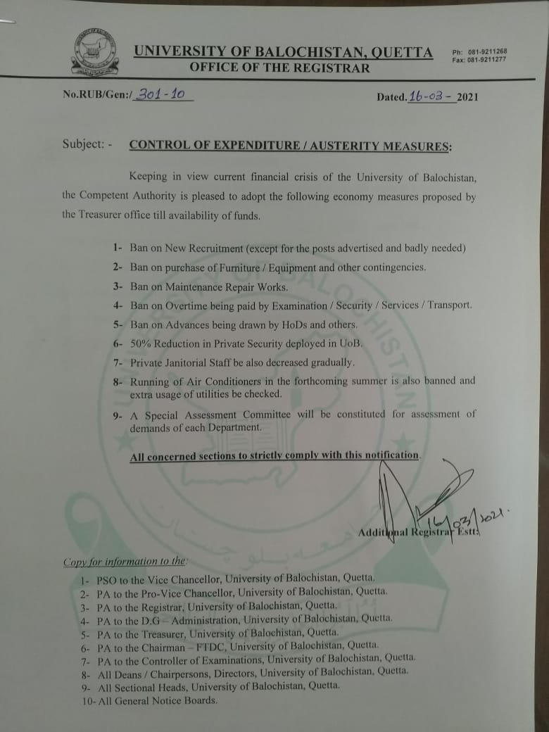 staff members (Teaching / Non Teaching) of UoB are directed to submit a copy of