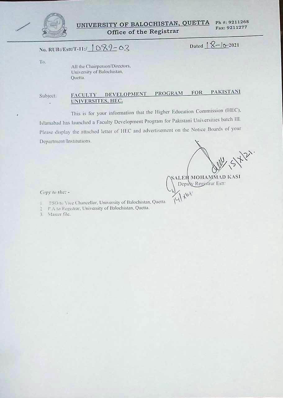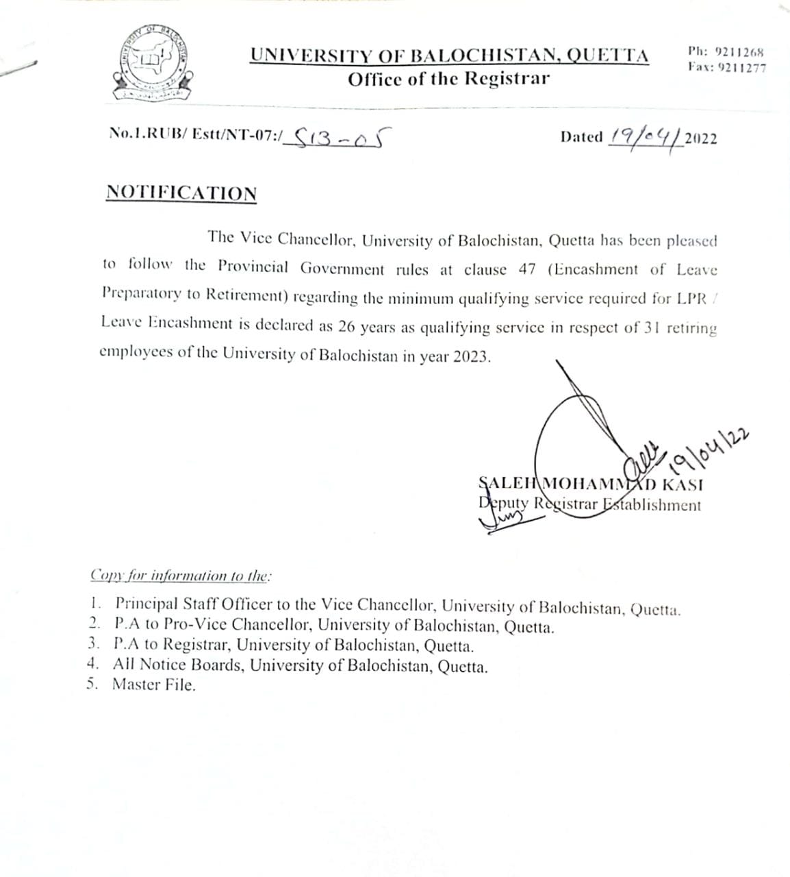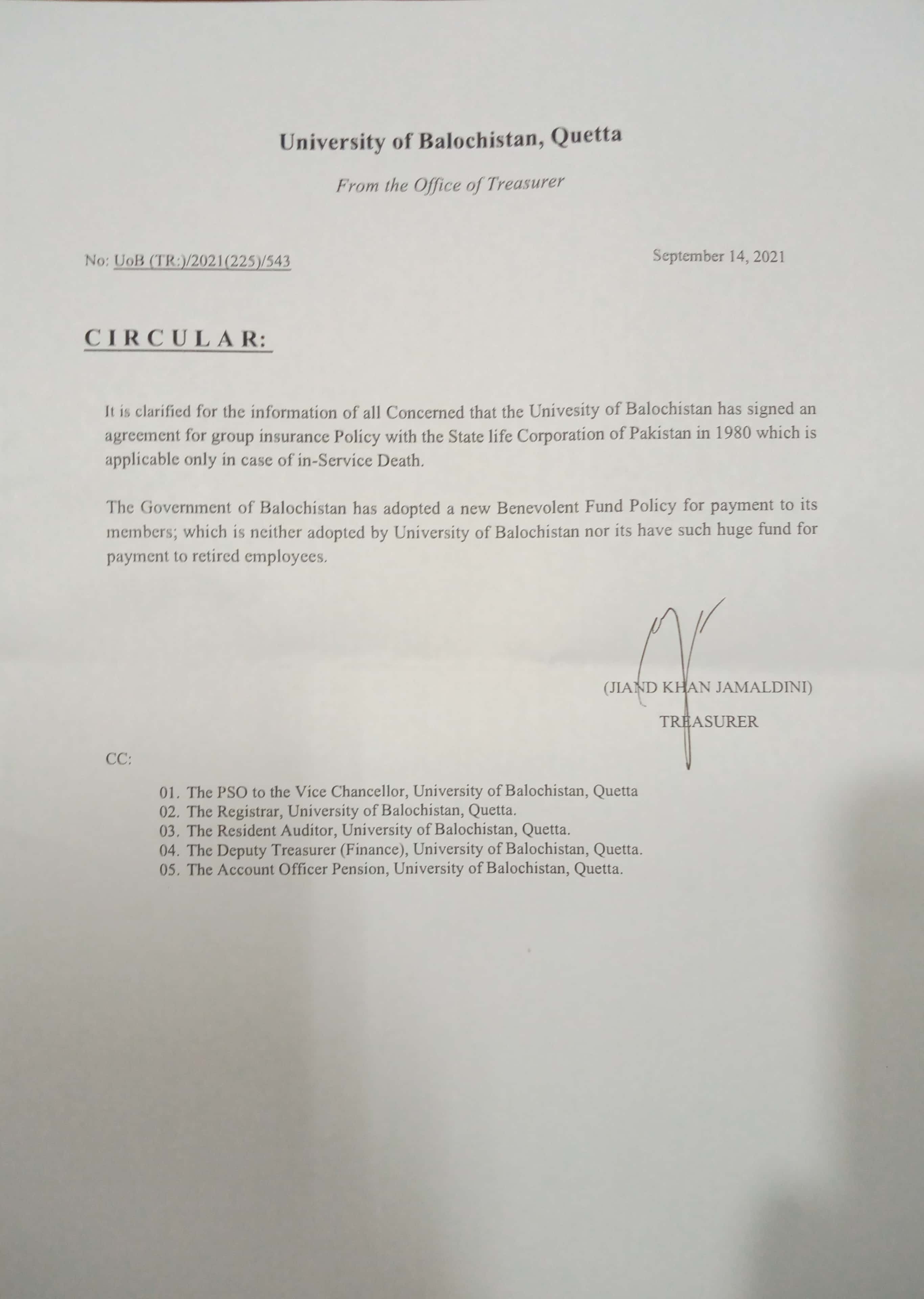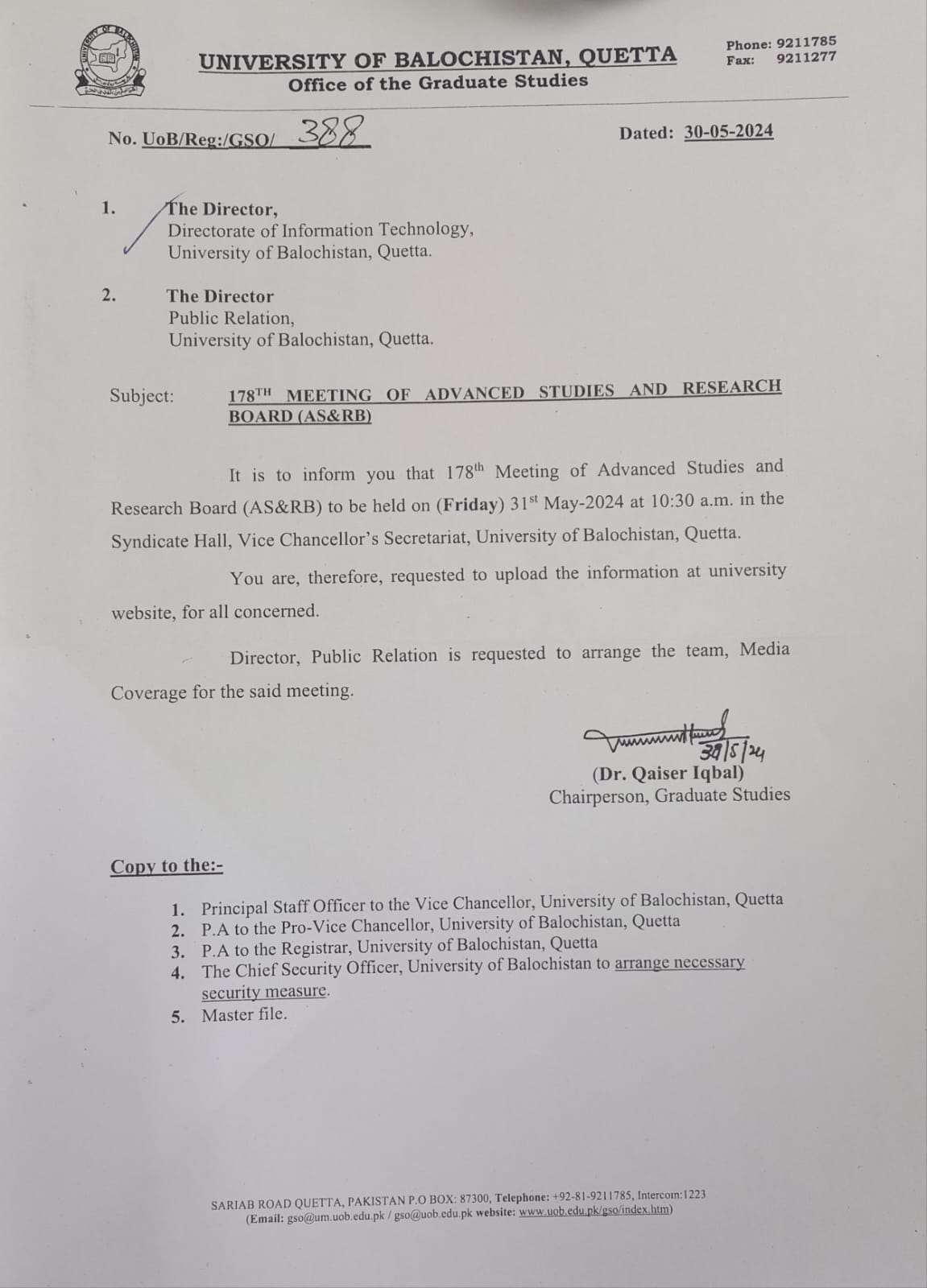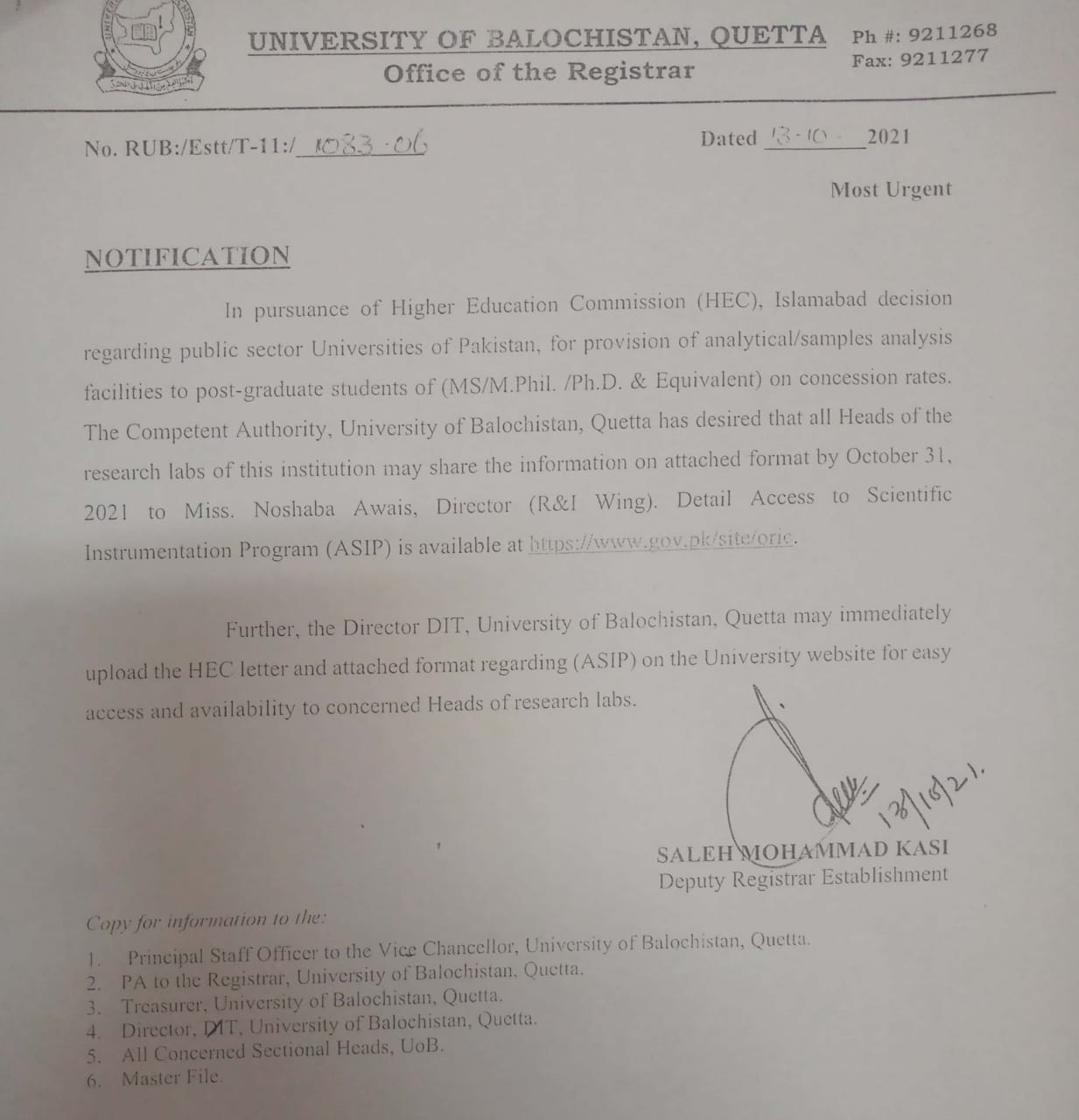 staff members (Teaching / Non Teaching) of UoB are directed to submit a copy of