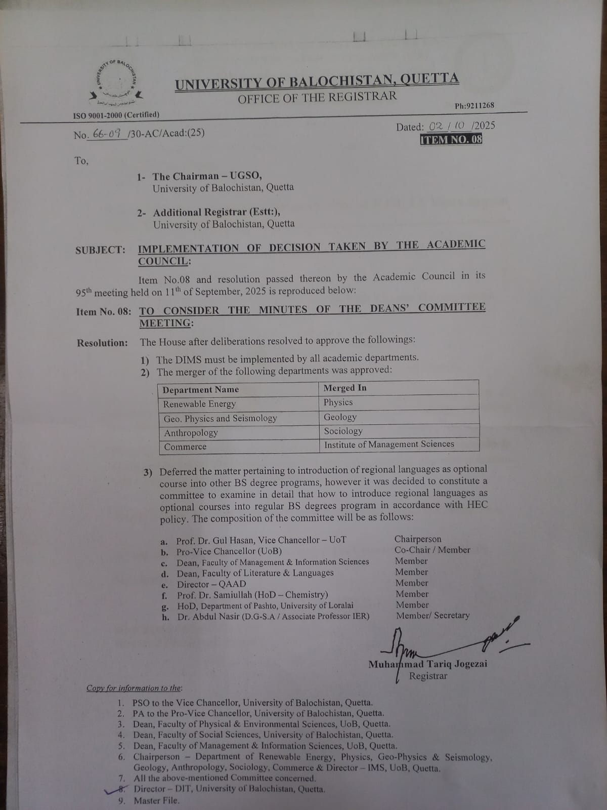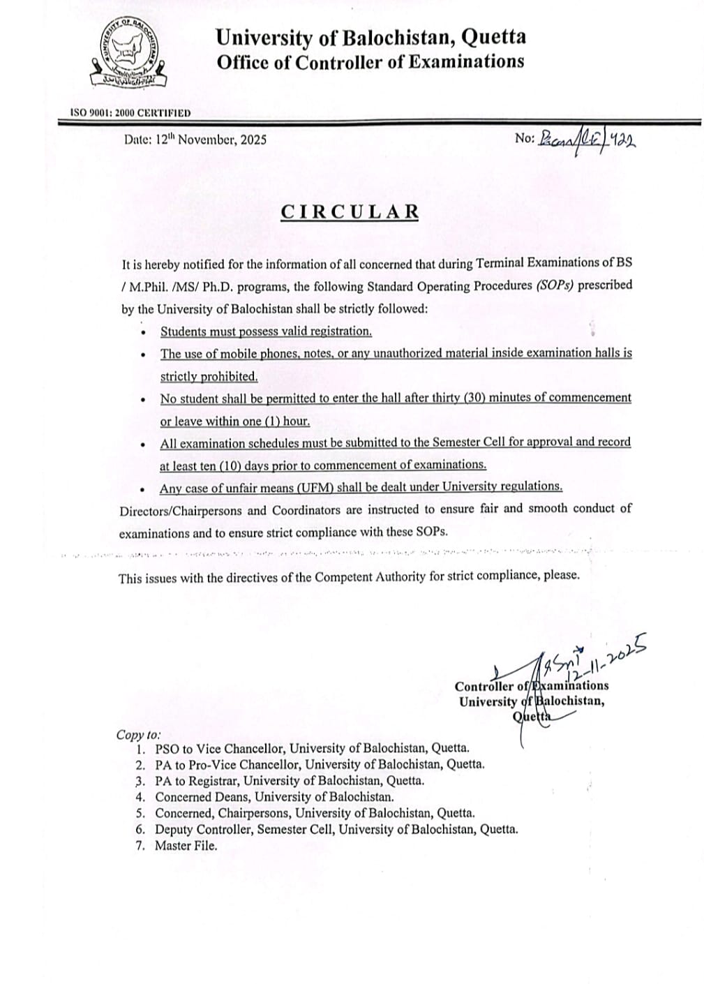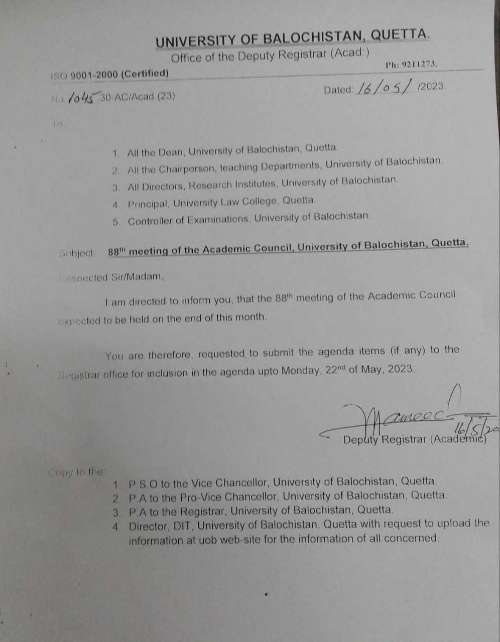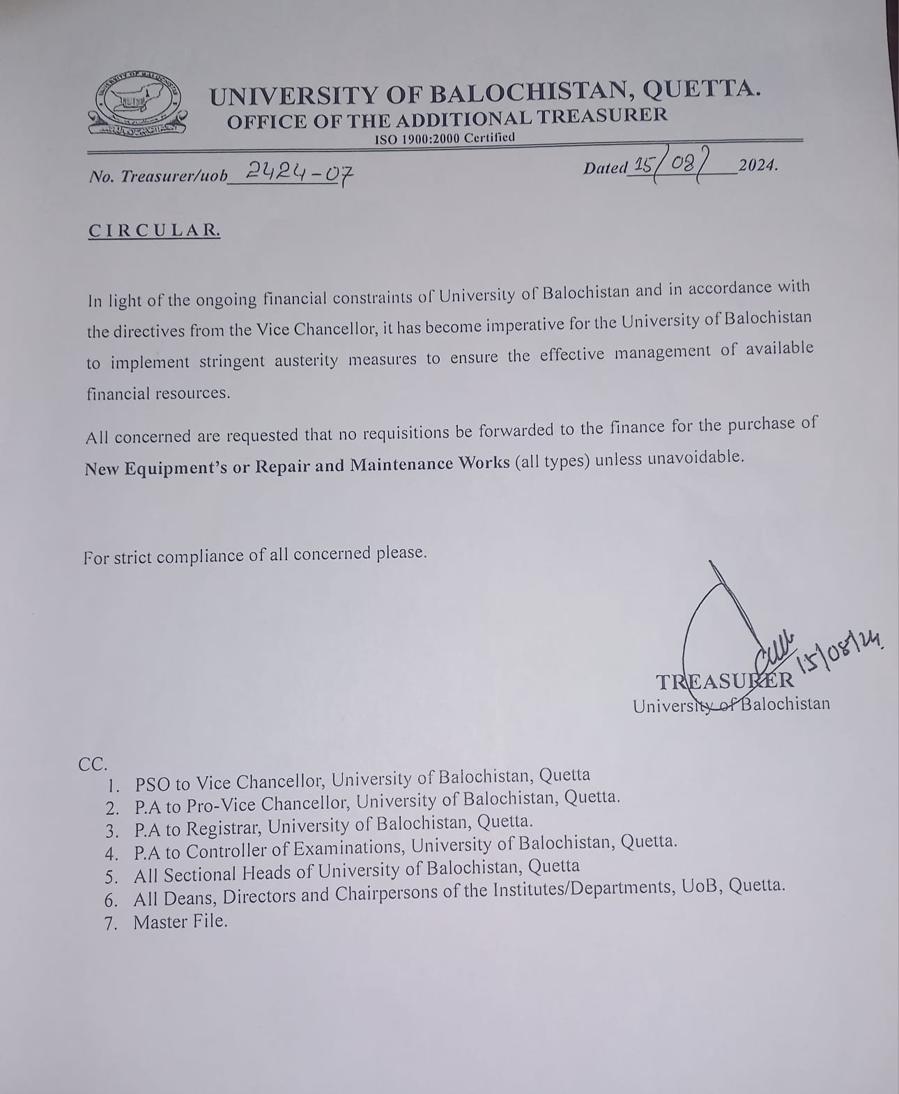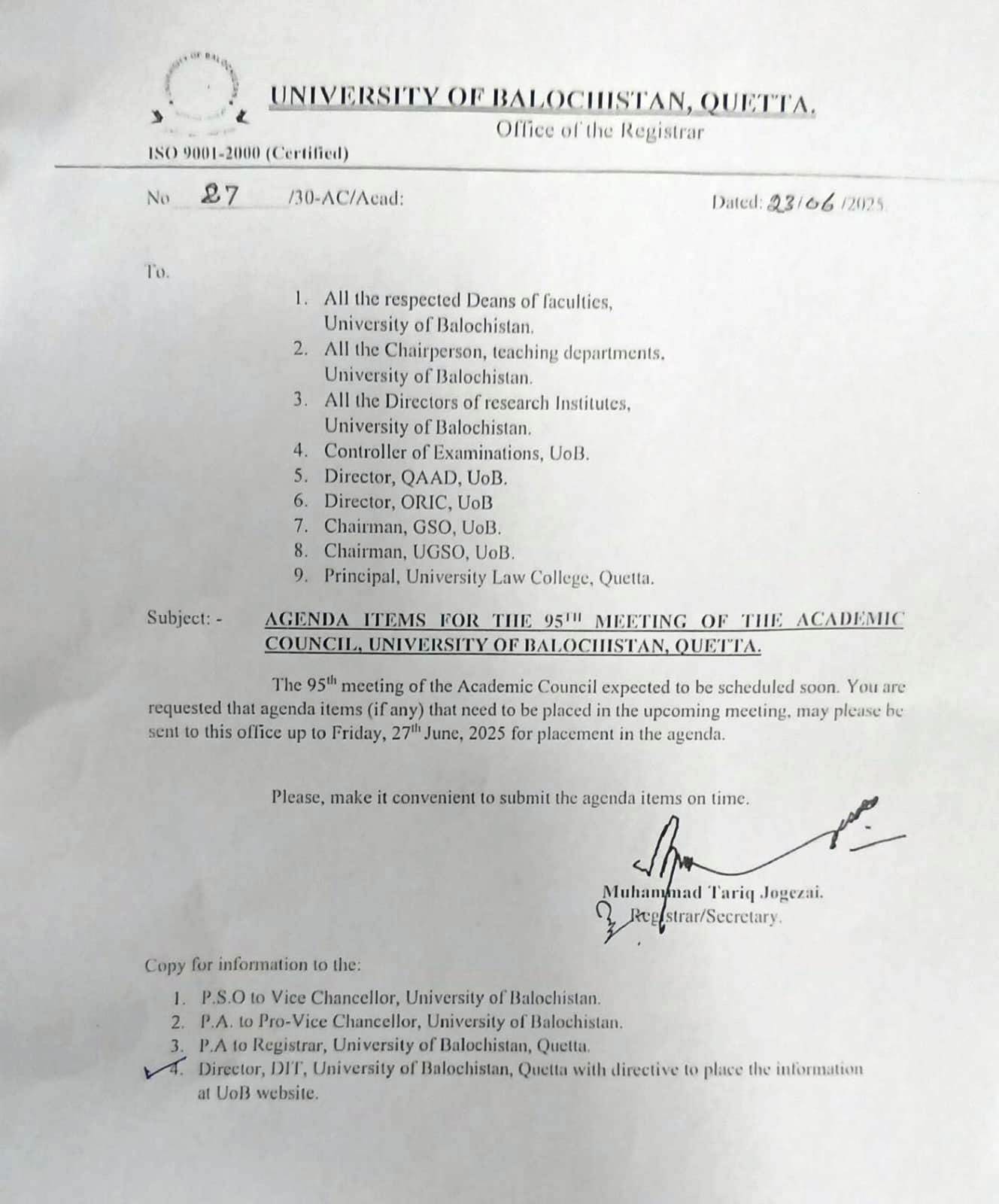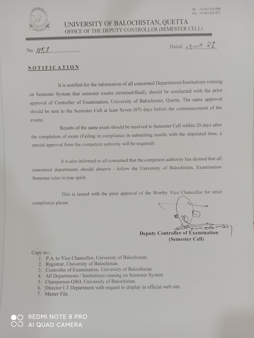 staff members (Teaching / Non Teaching) of UoB are directed to submit a copy of