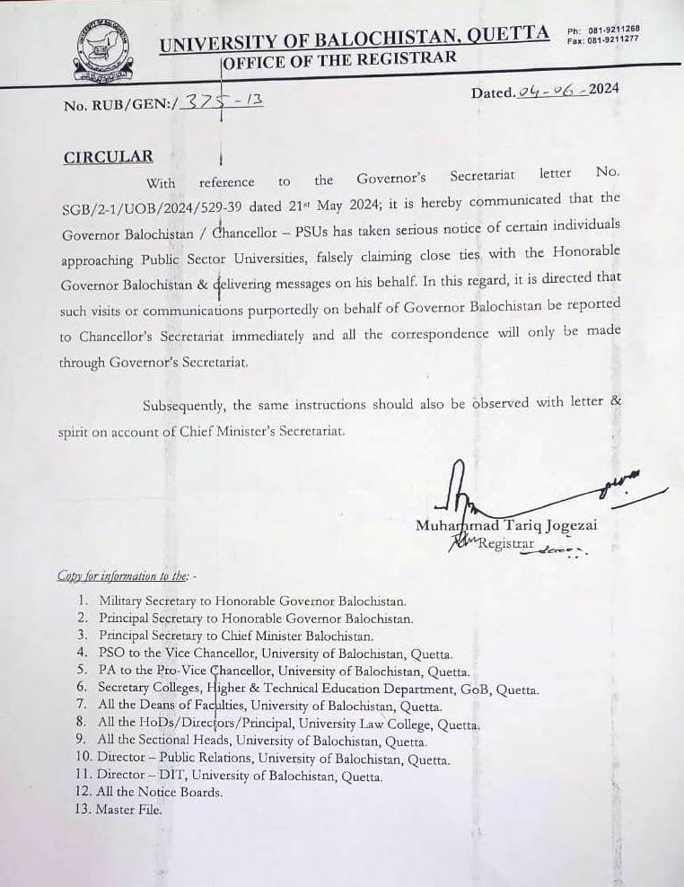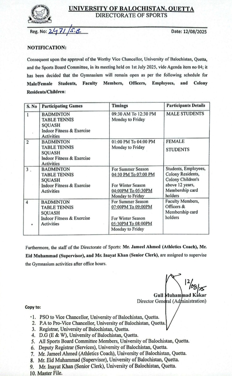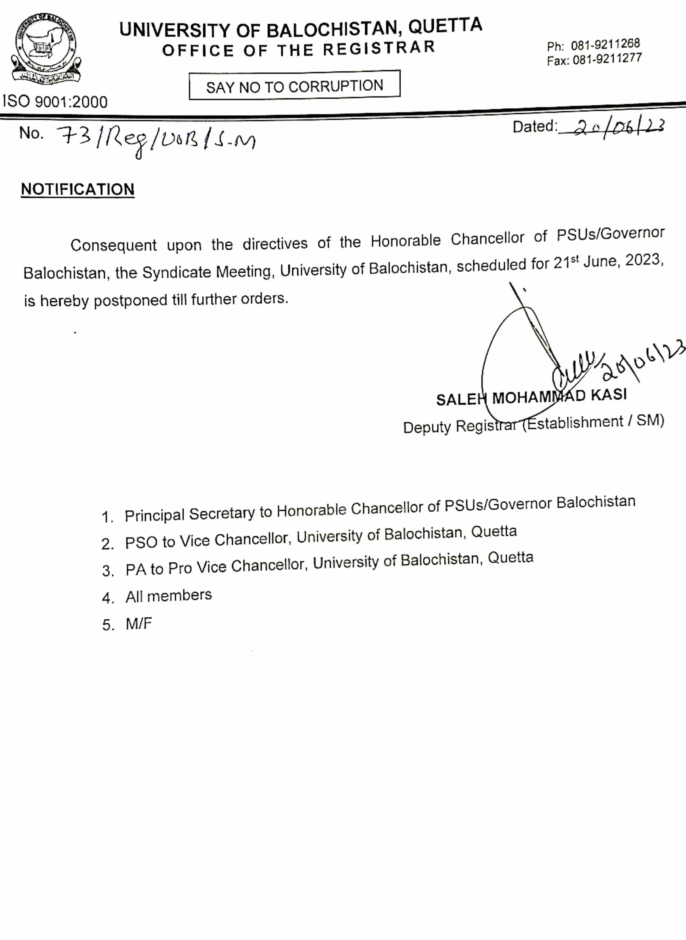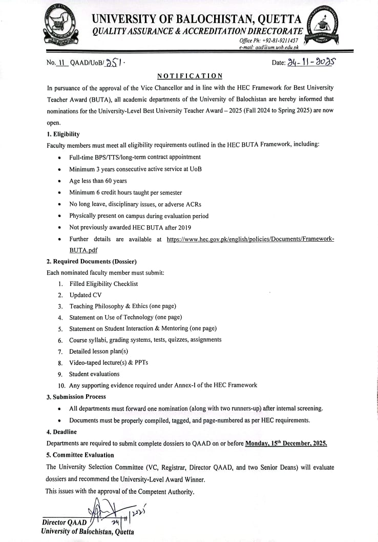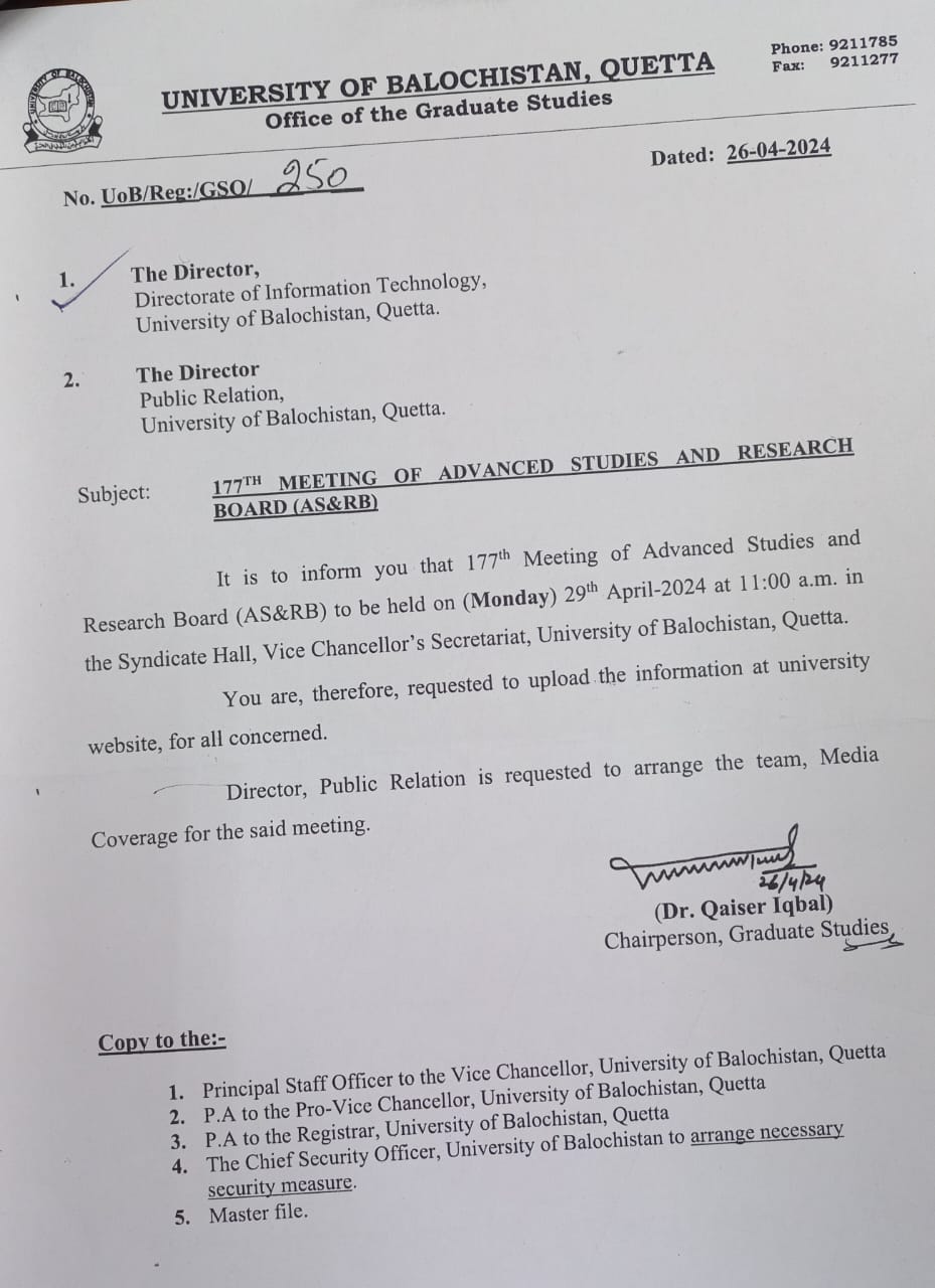 staff members (Teaching / Non Teaching) of UoB are directed to submit a copy of
