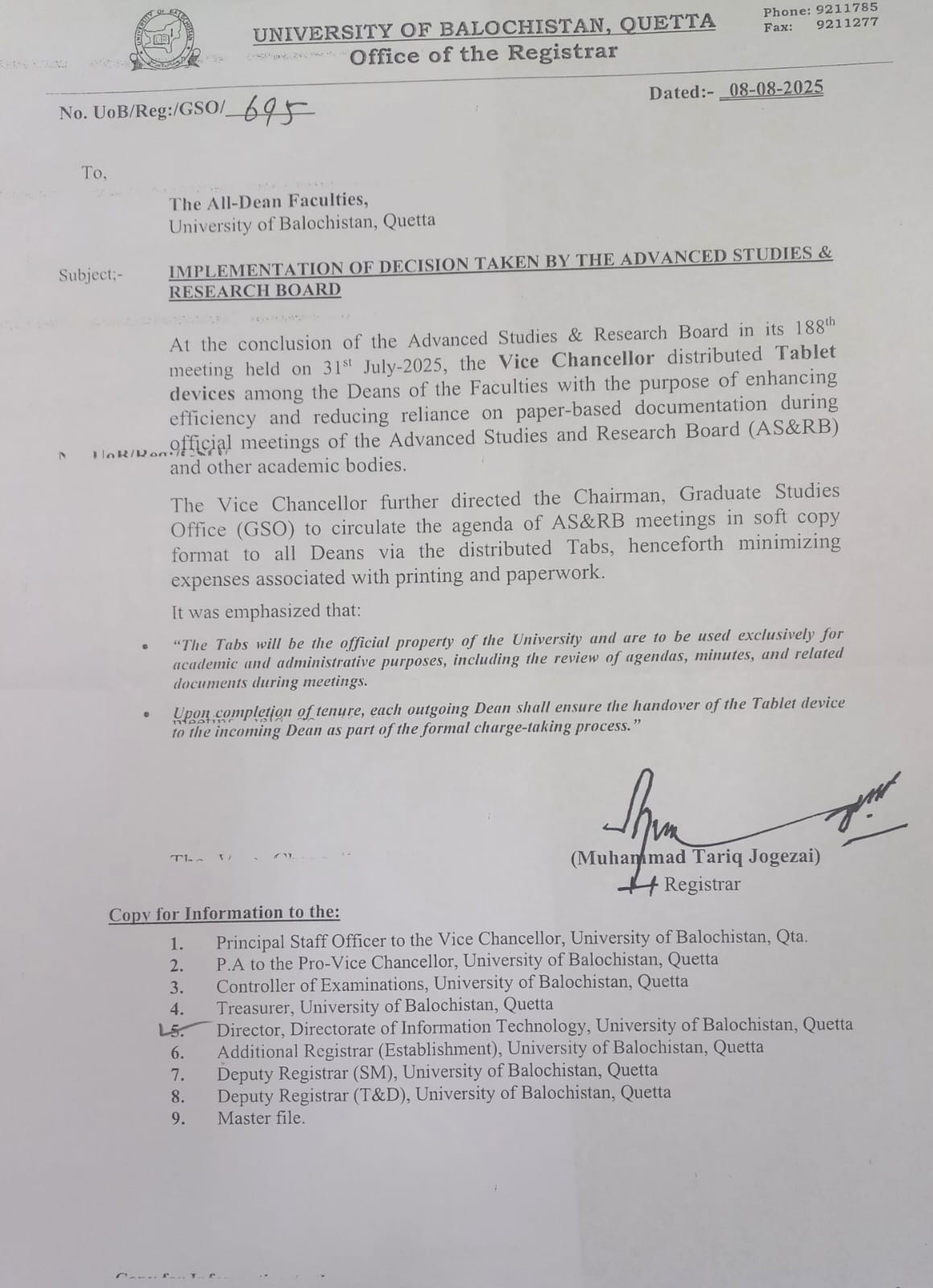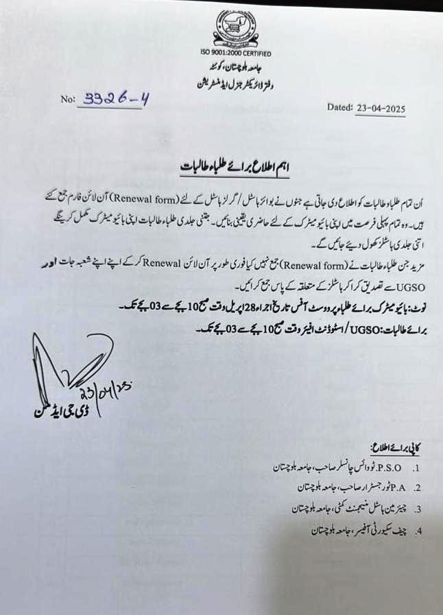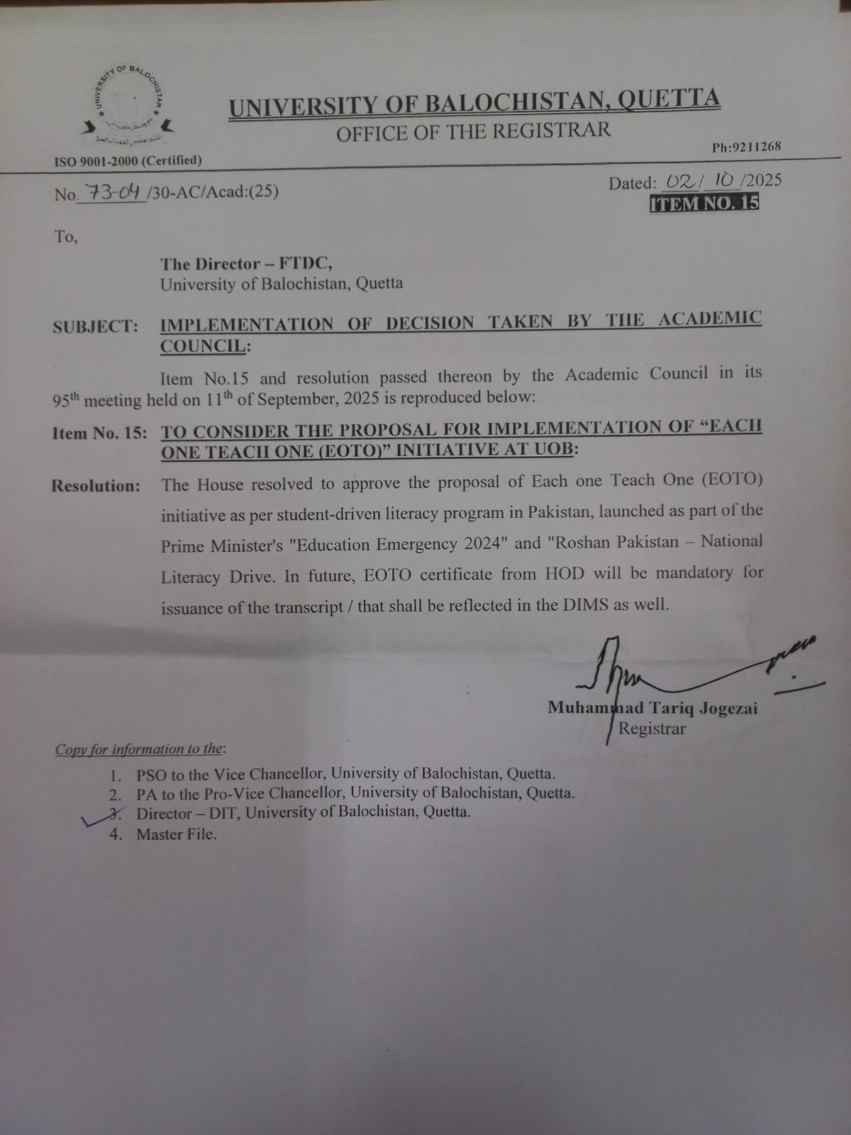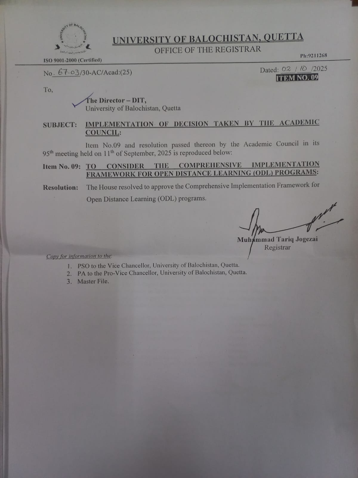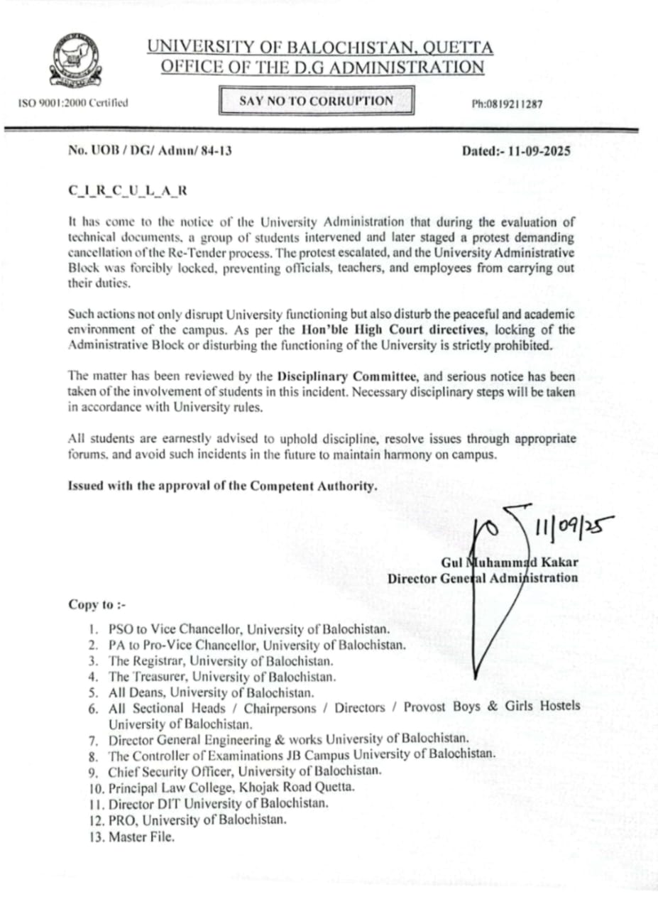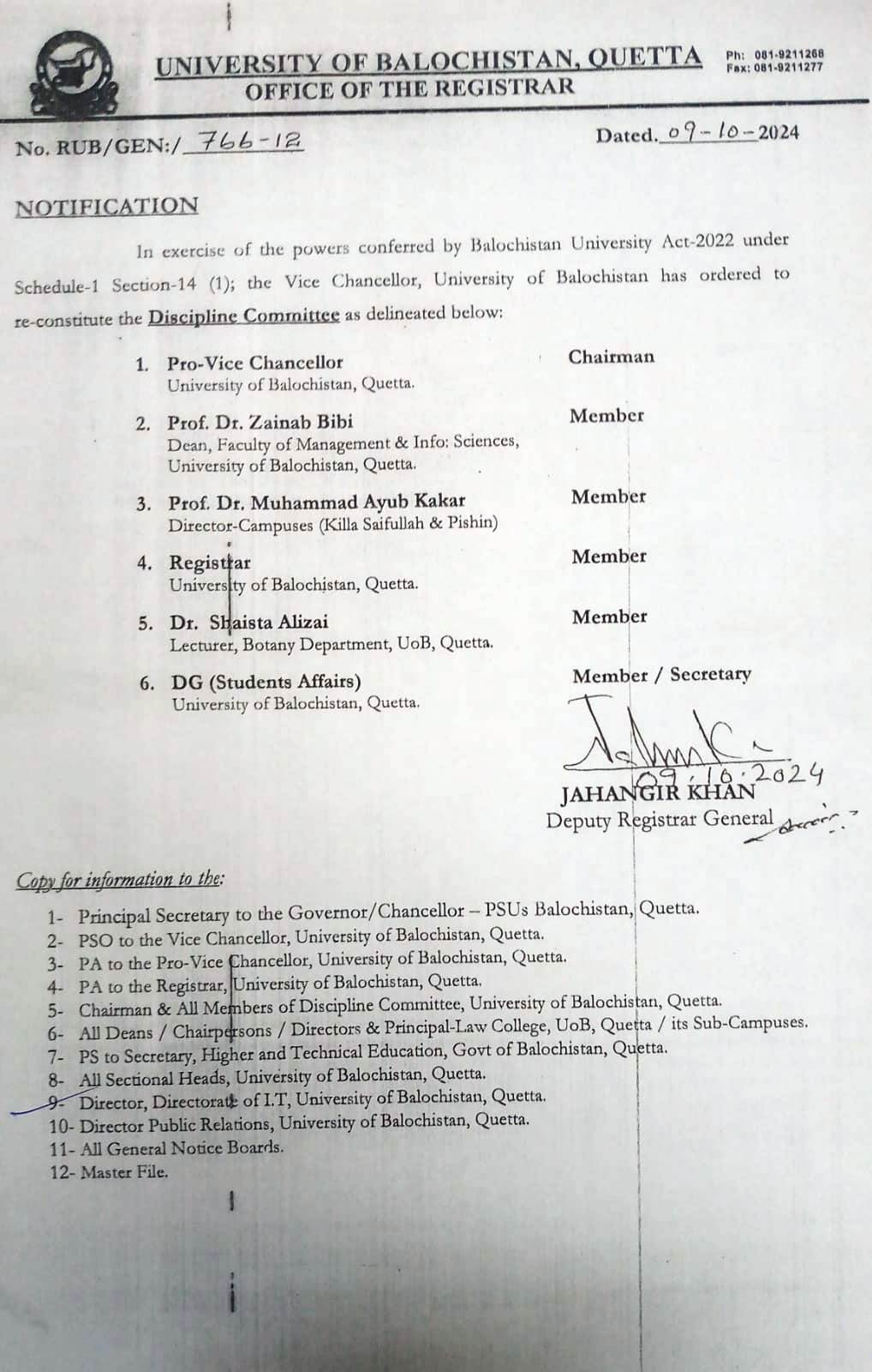 staff members (Teaching / Non Teaching) of UoB are directed to submit a copy of