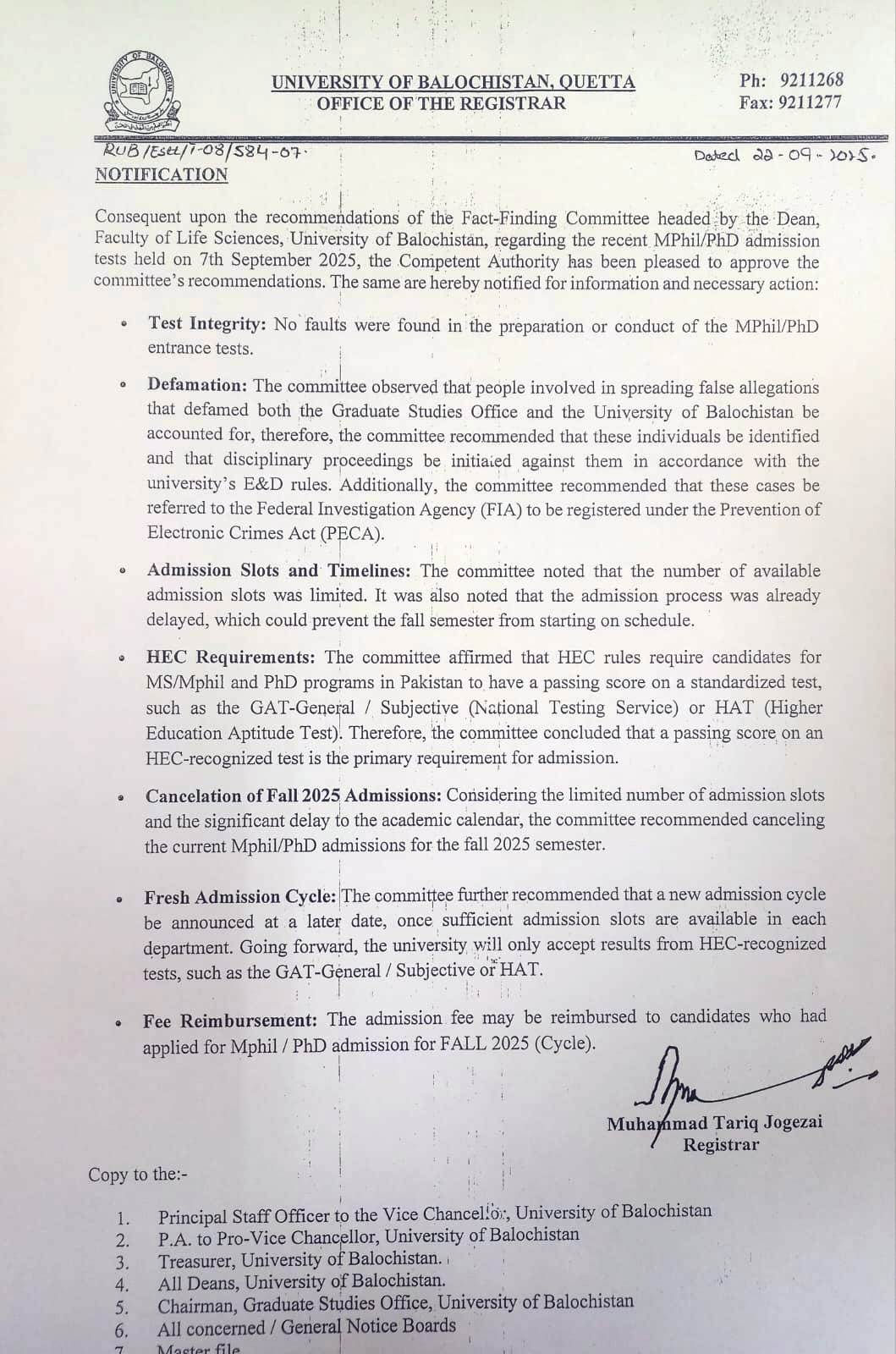 Cancellation of MPhil-PhD Admissions for Fall 2025 |