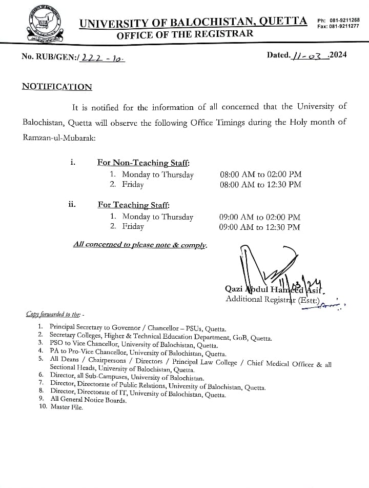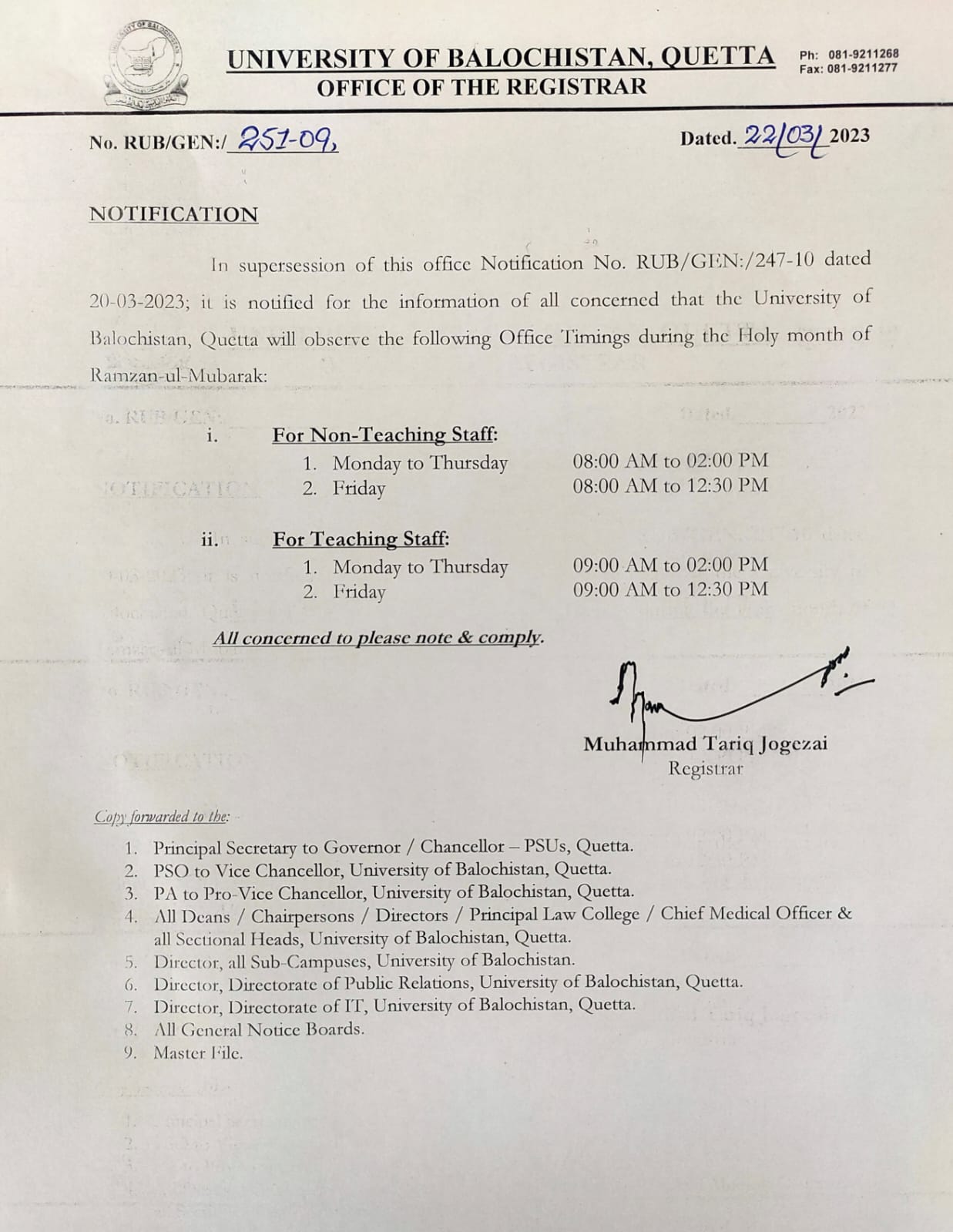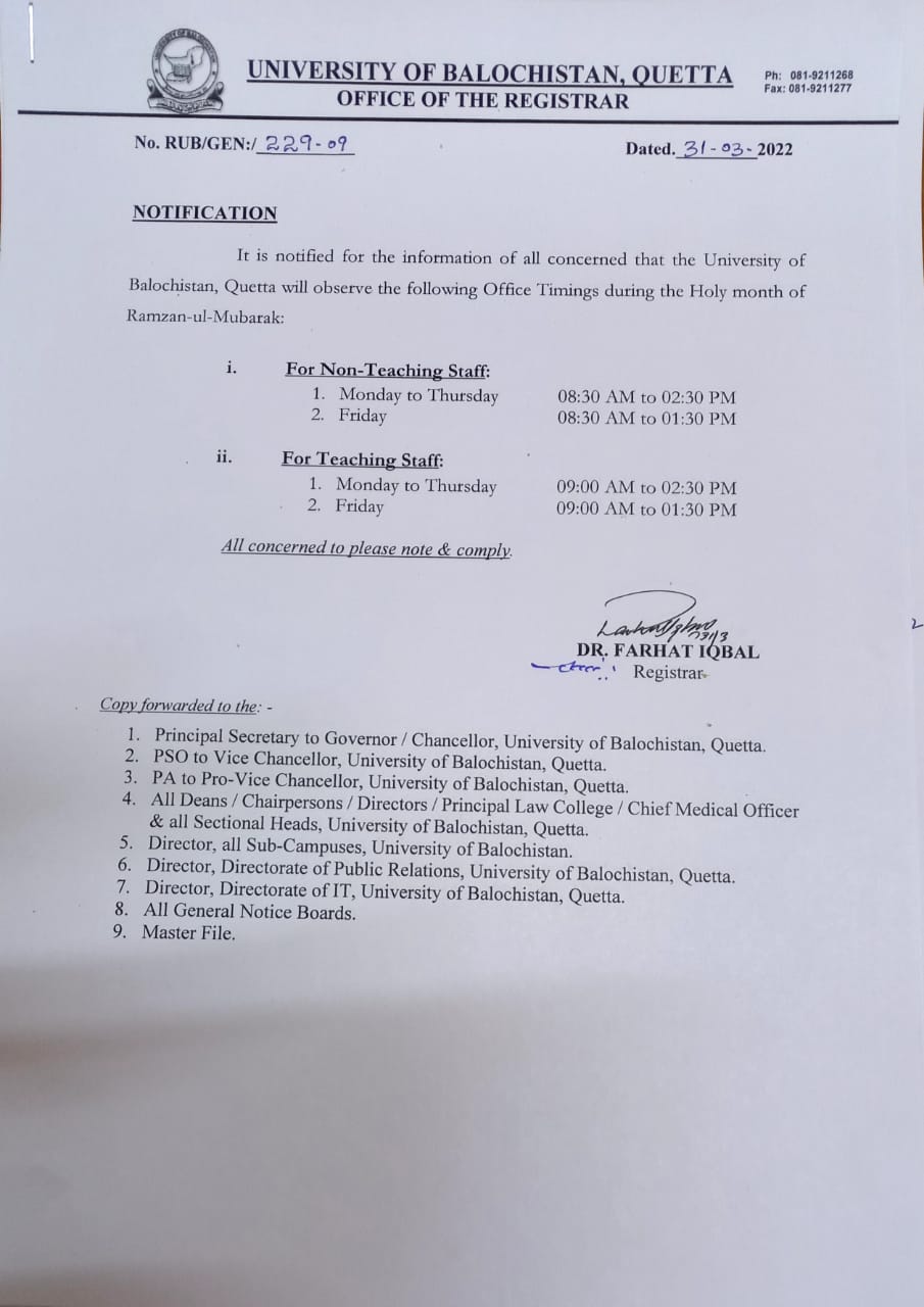 observe the new office timings during the month of Ramzan-ul-Mubarak 2021