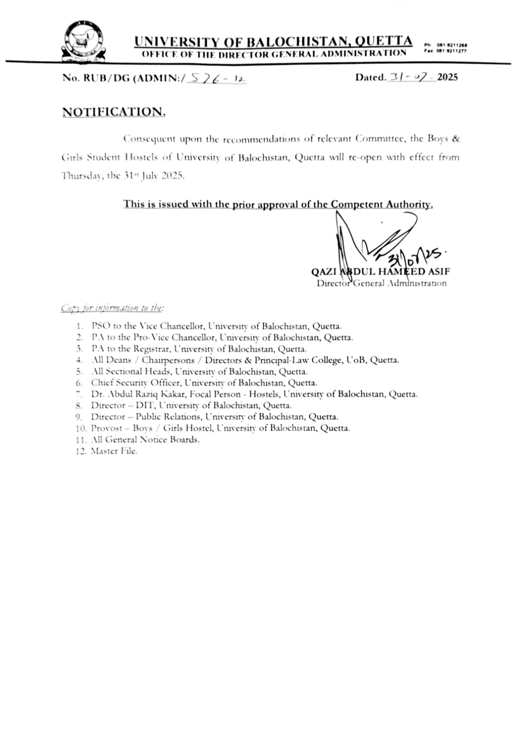 DPR, University of Balochistan 26 June 2025