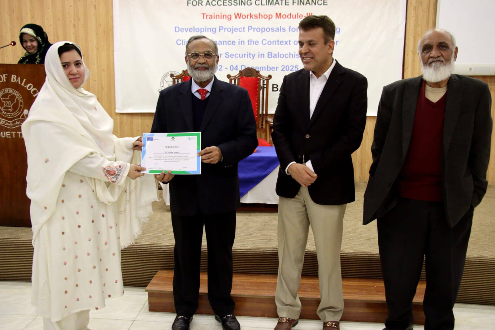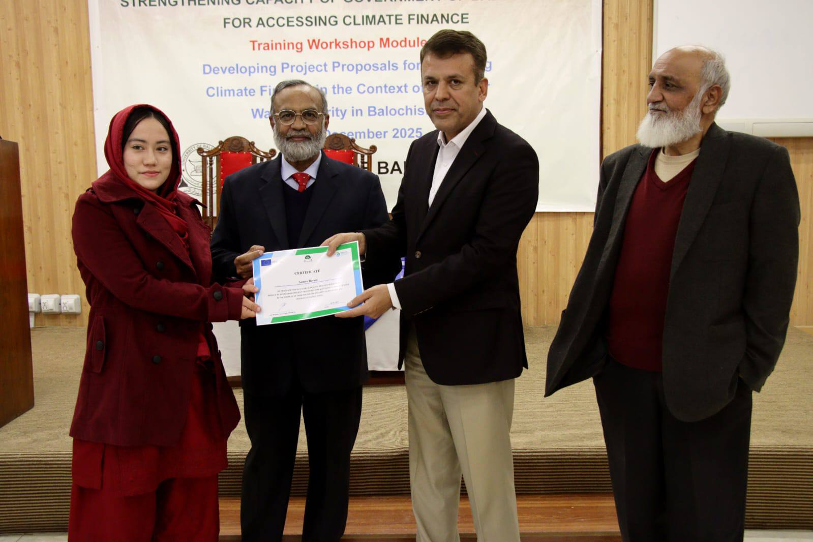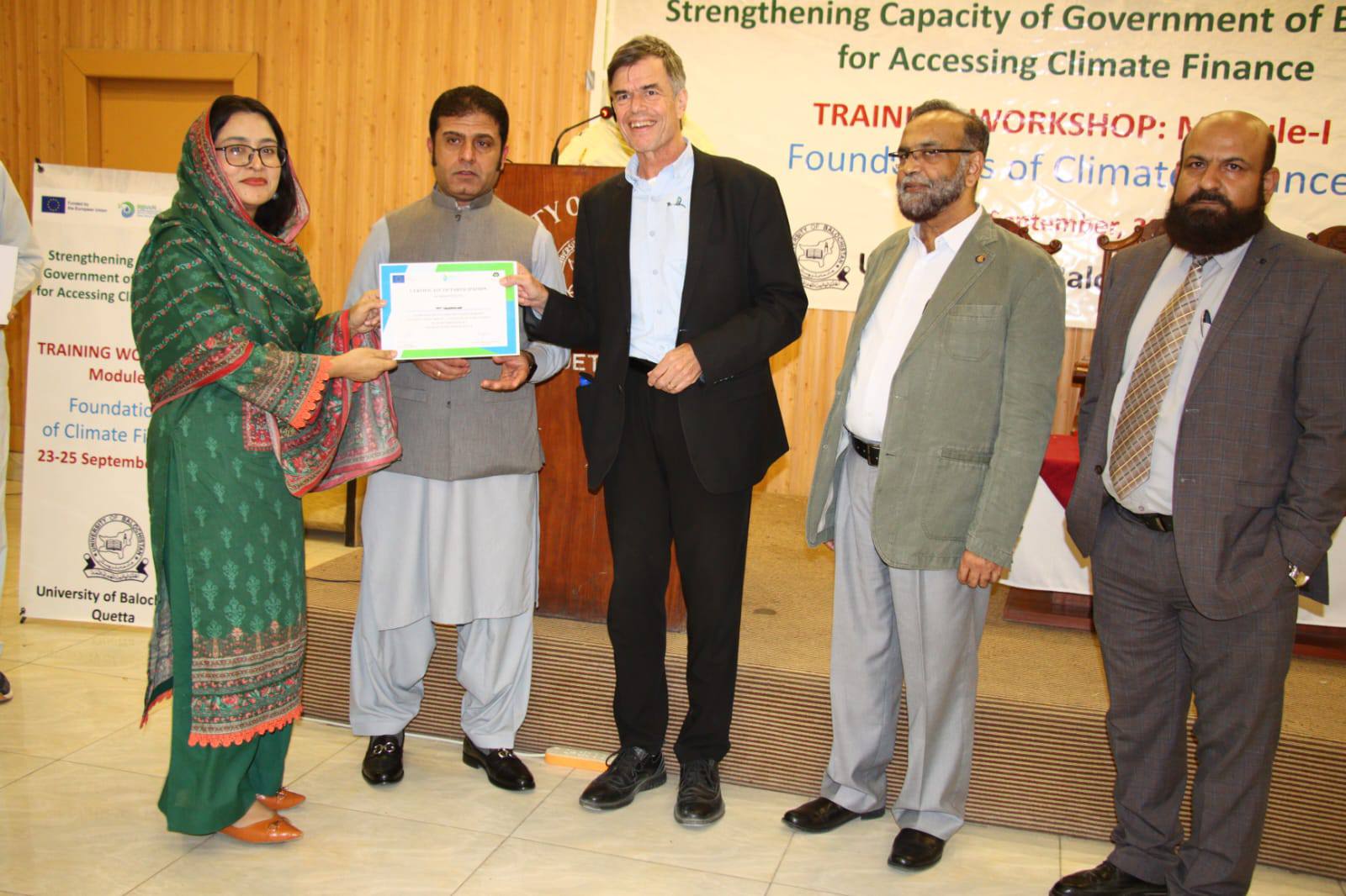 A three-day training workshop on environmental planning and climate finance at the University of Balochistan concluded successfully.