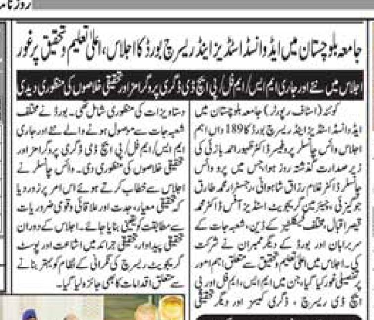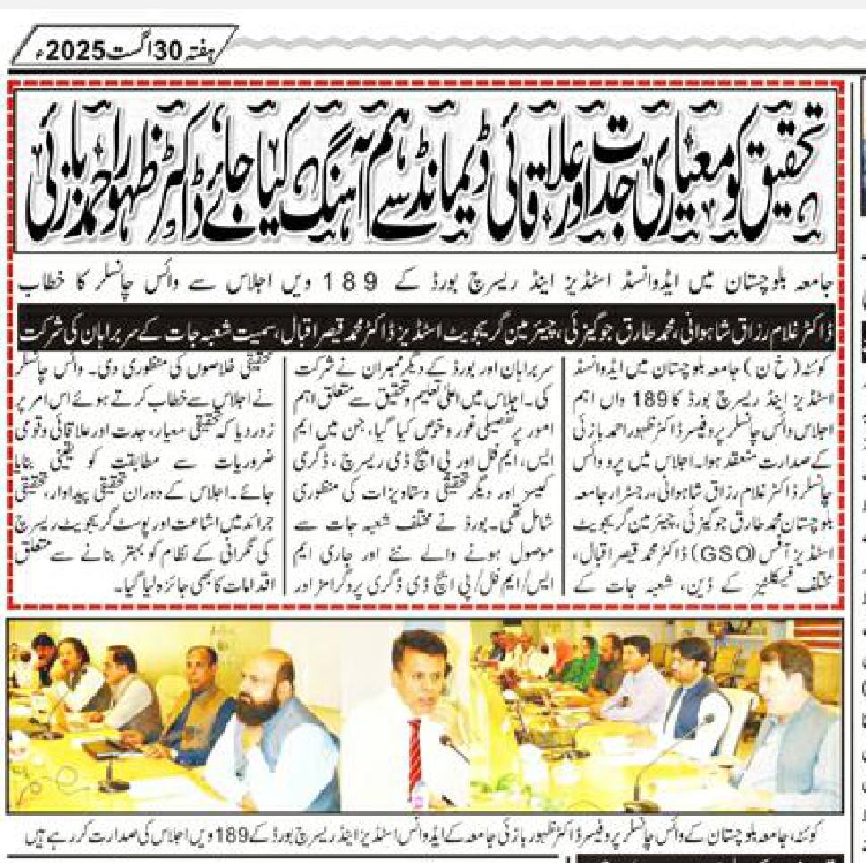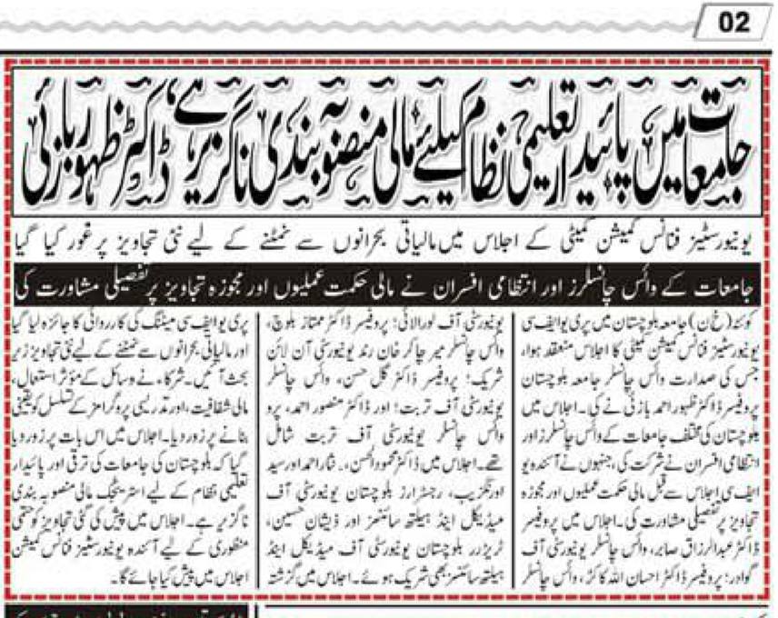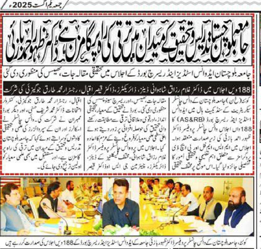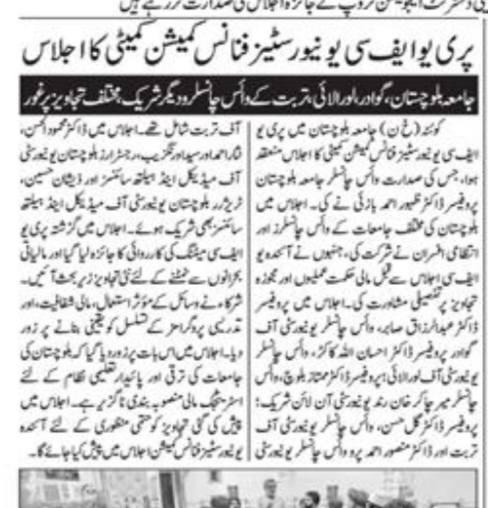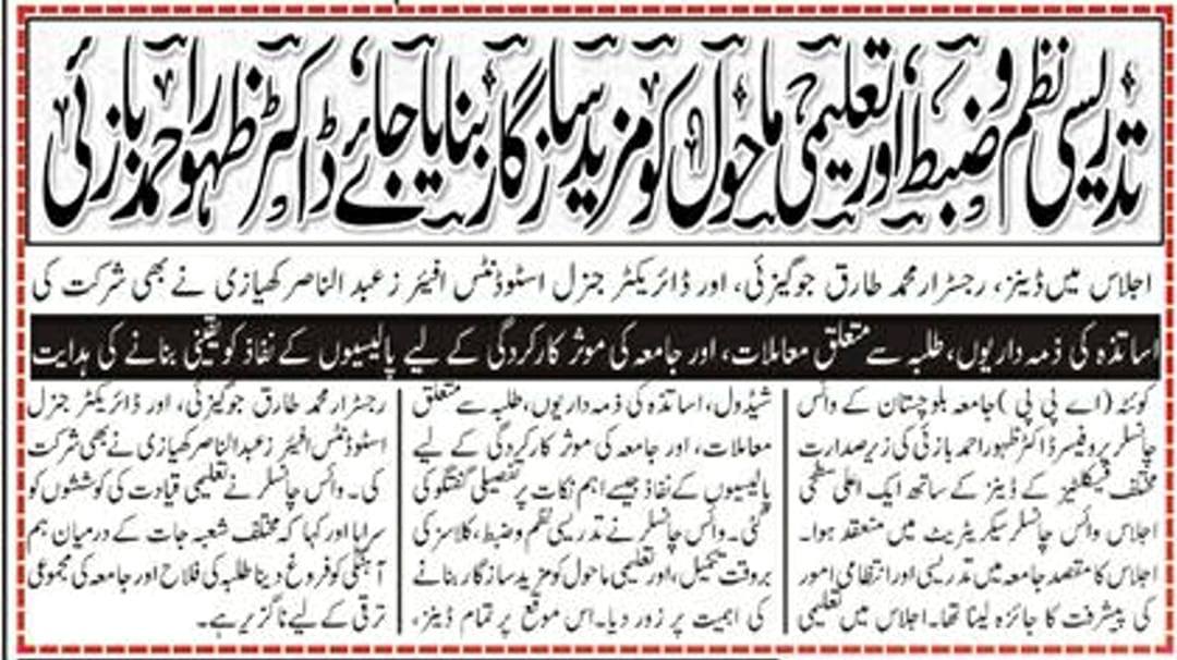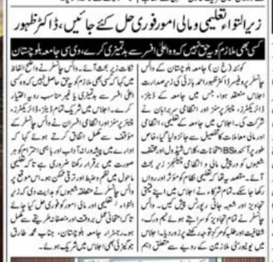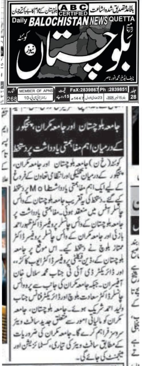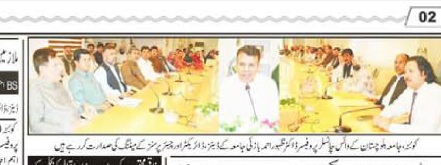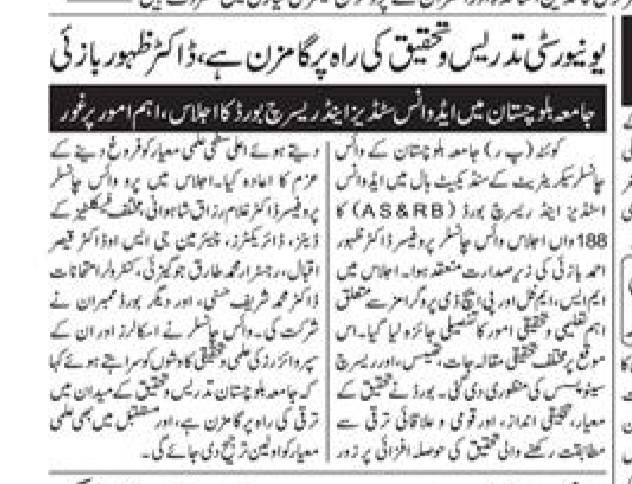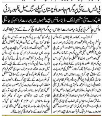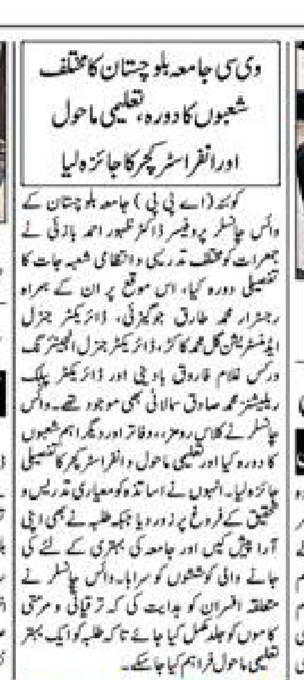 The University of Balochistan continues to receive prominent coverage in print media for its academic achievements, research initiatives, administrative reforms