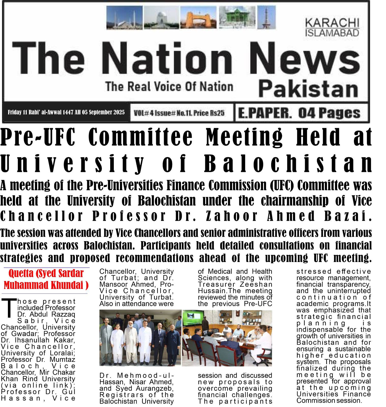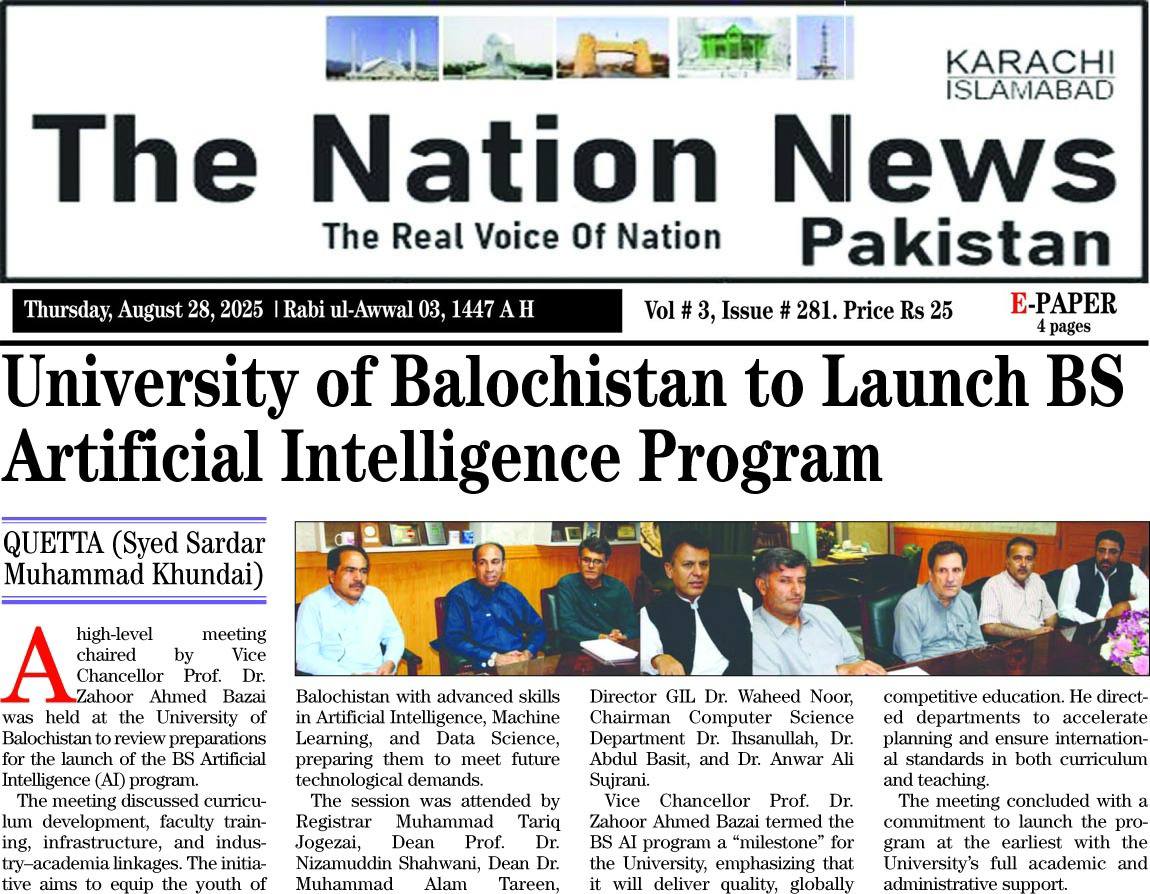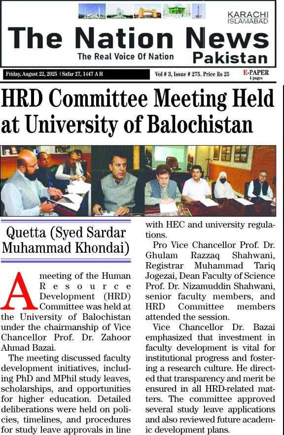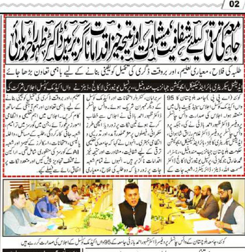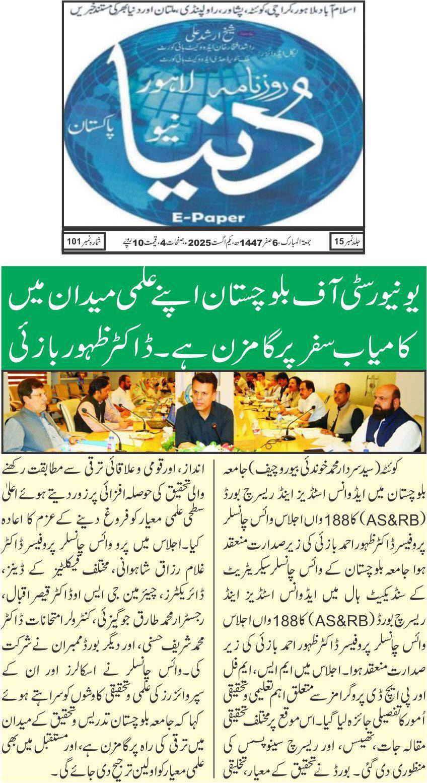 The University of Balochistan continues to receive prominent coverage in print media for its academic achievements, research initiatives, administrative reforms