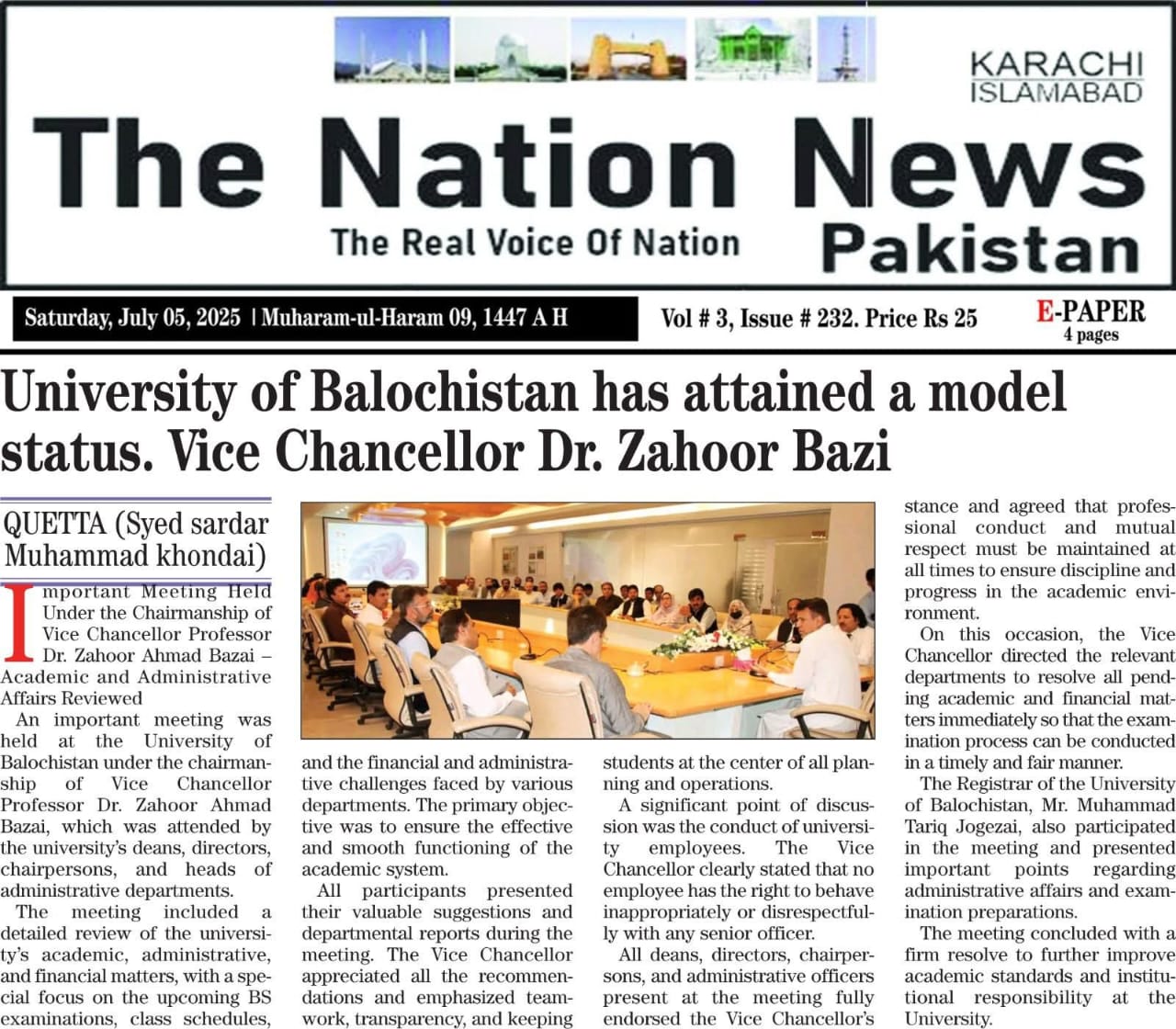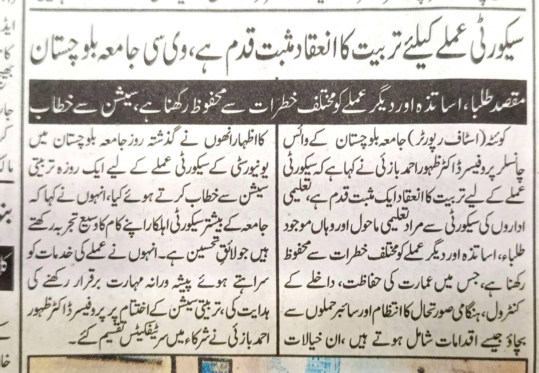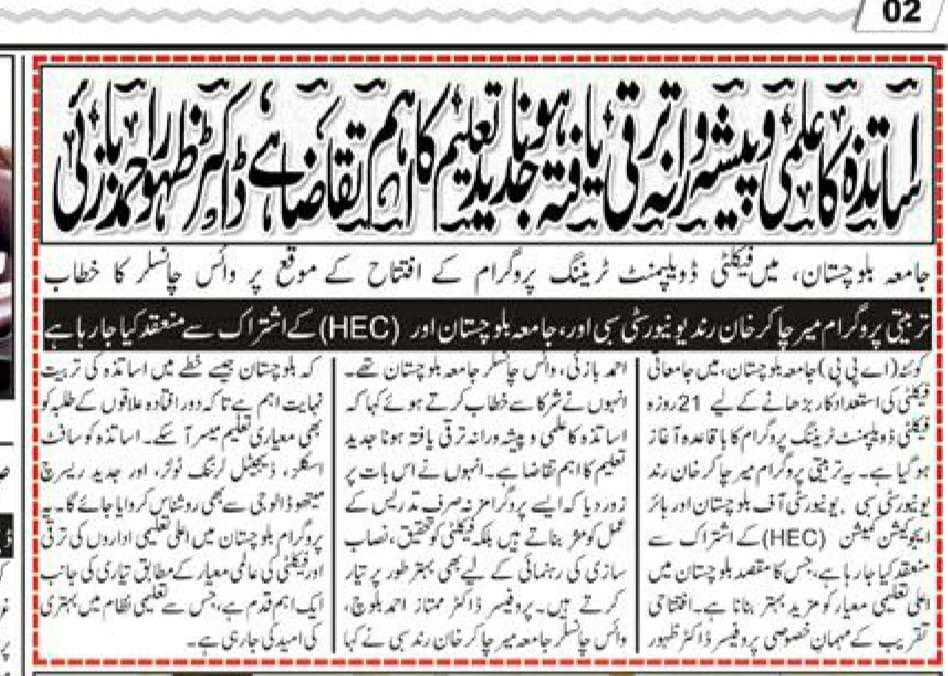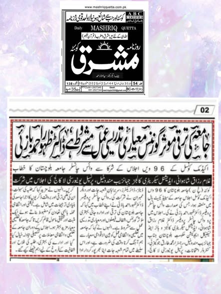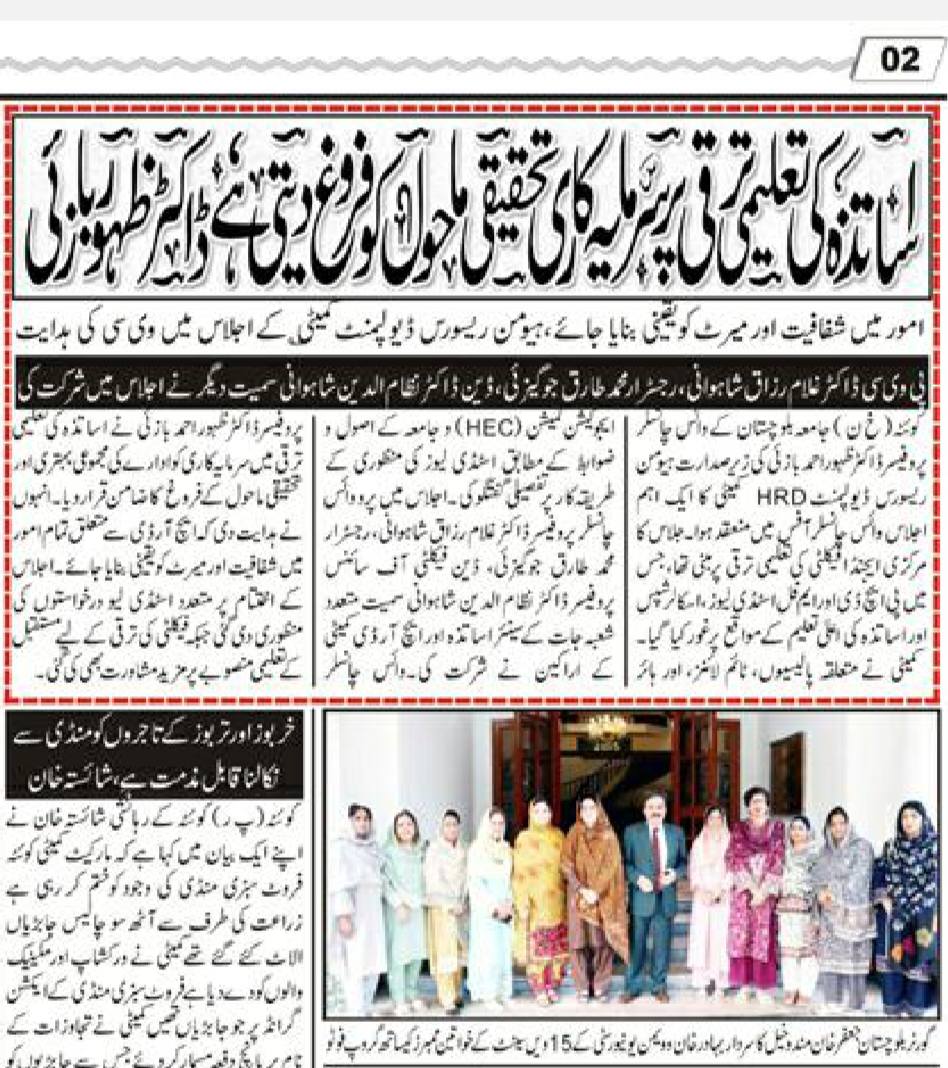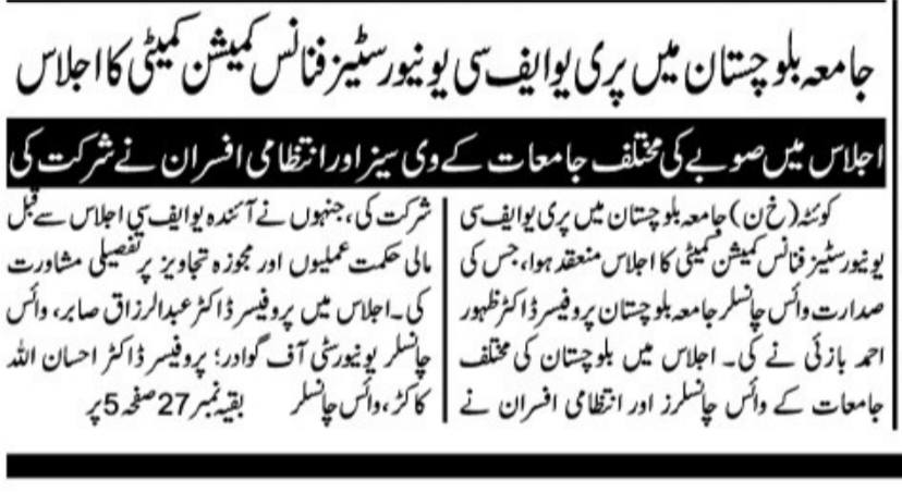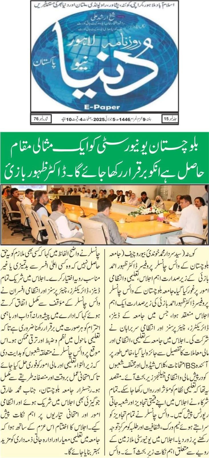 The University of Balochistan continues to receive prominent coverage in print media for its academic achievements, research initiatives, administrative reforms