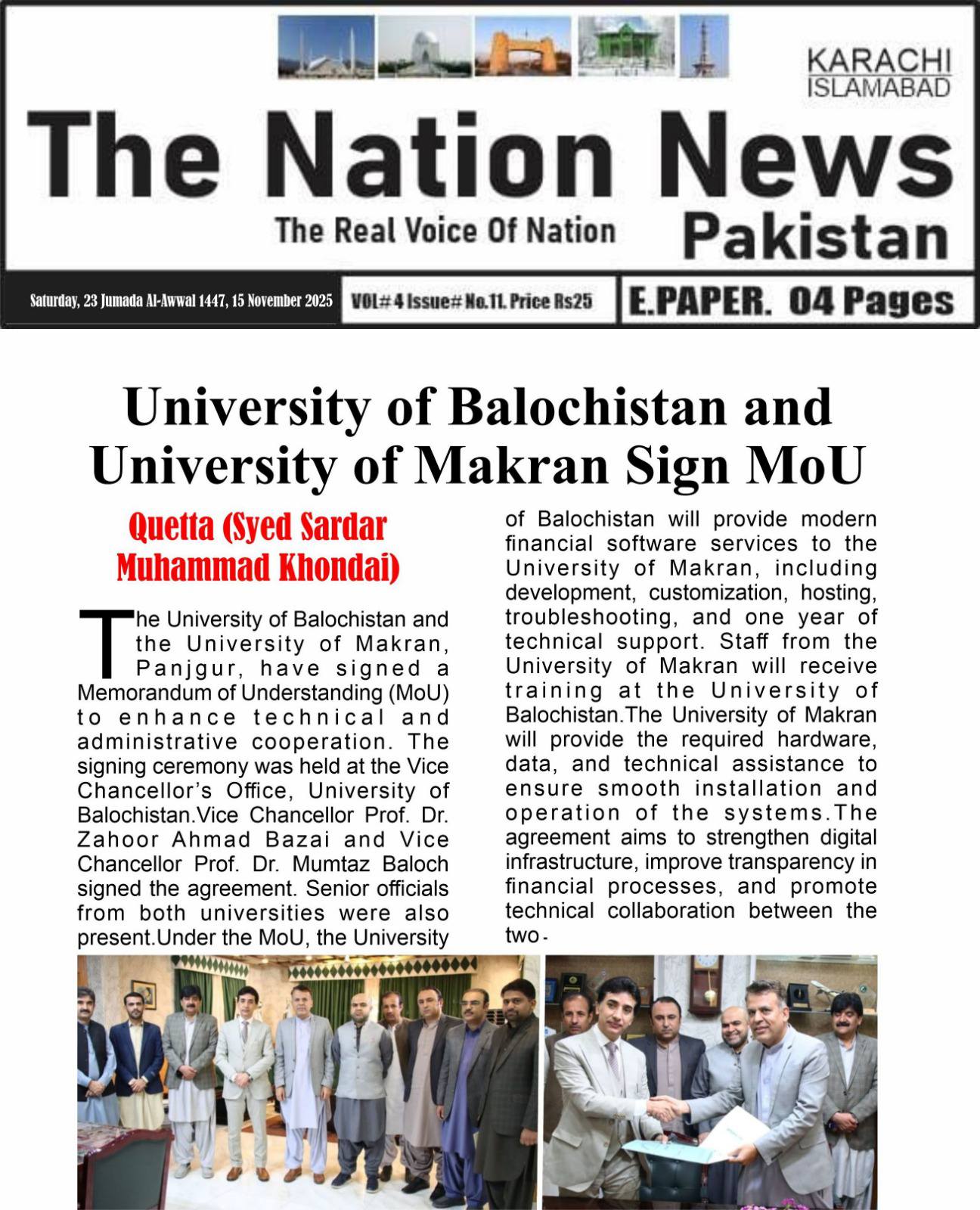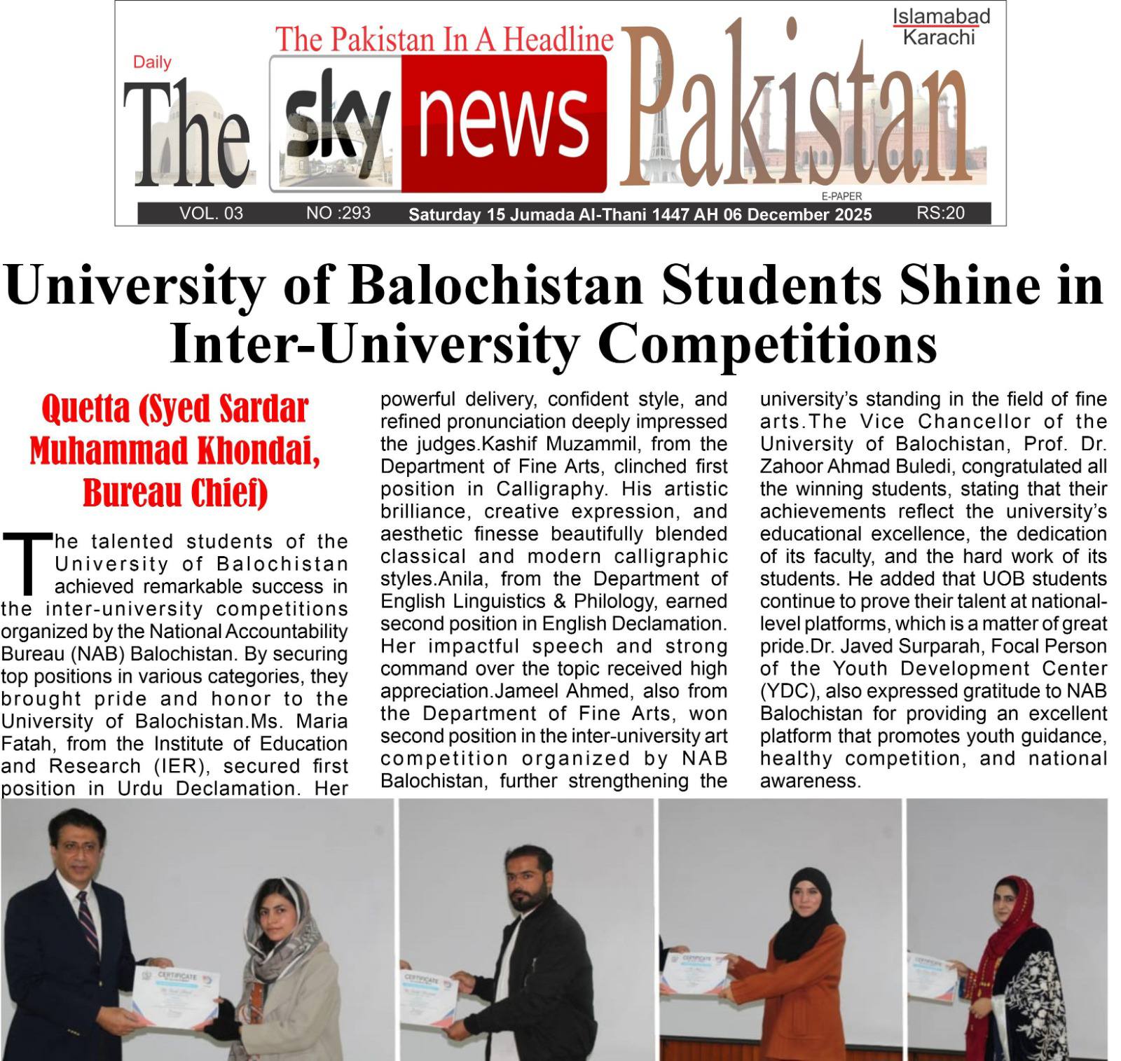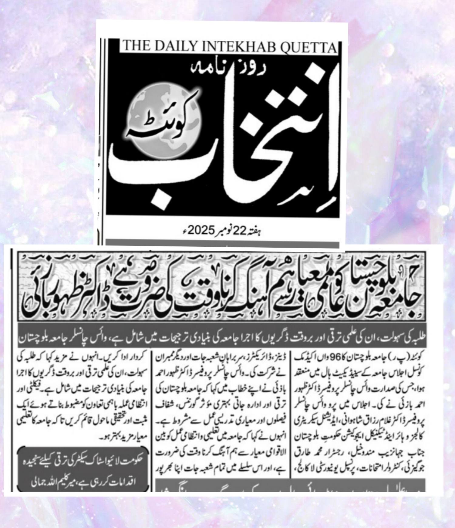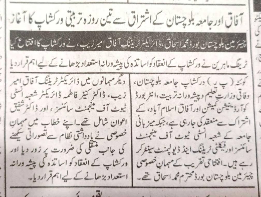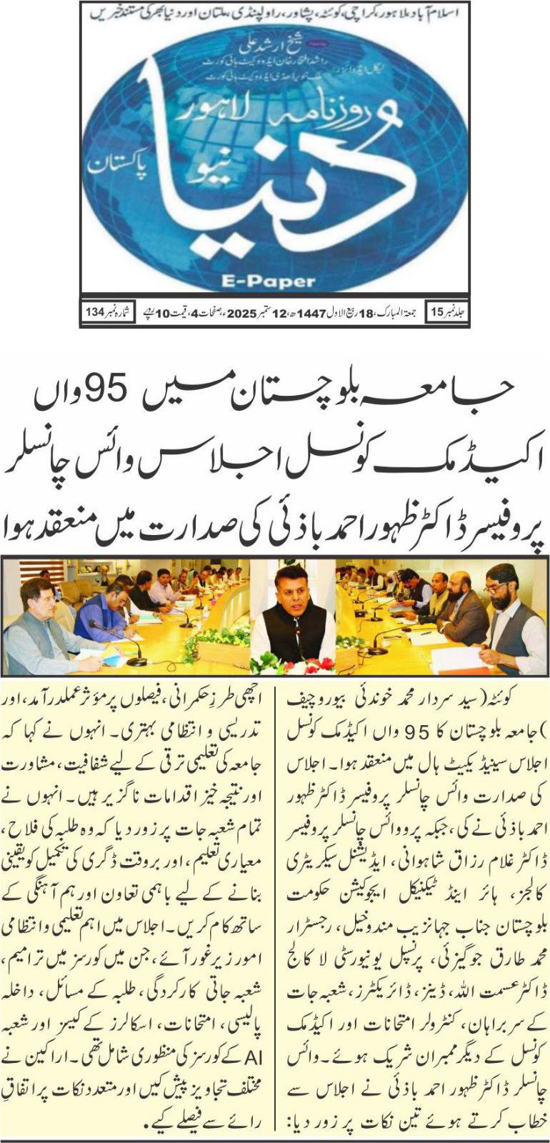 The University of Balochistan continues to receive prominent coverage in print media for its academic achievements, research initiatives, administrative reforms