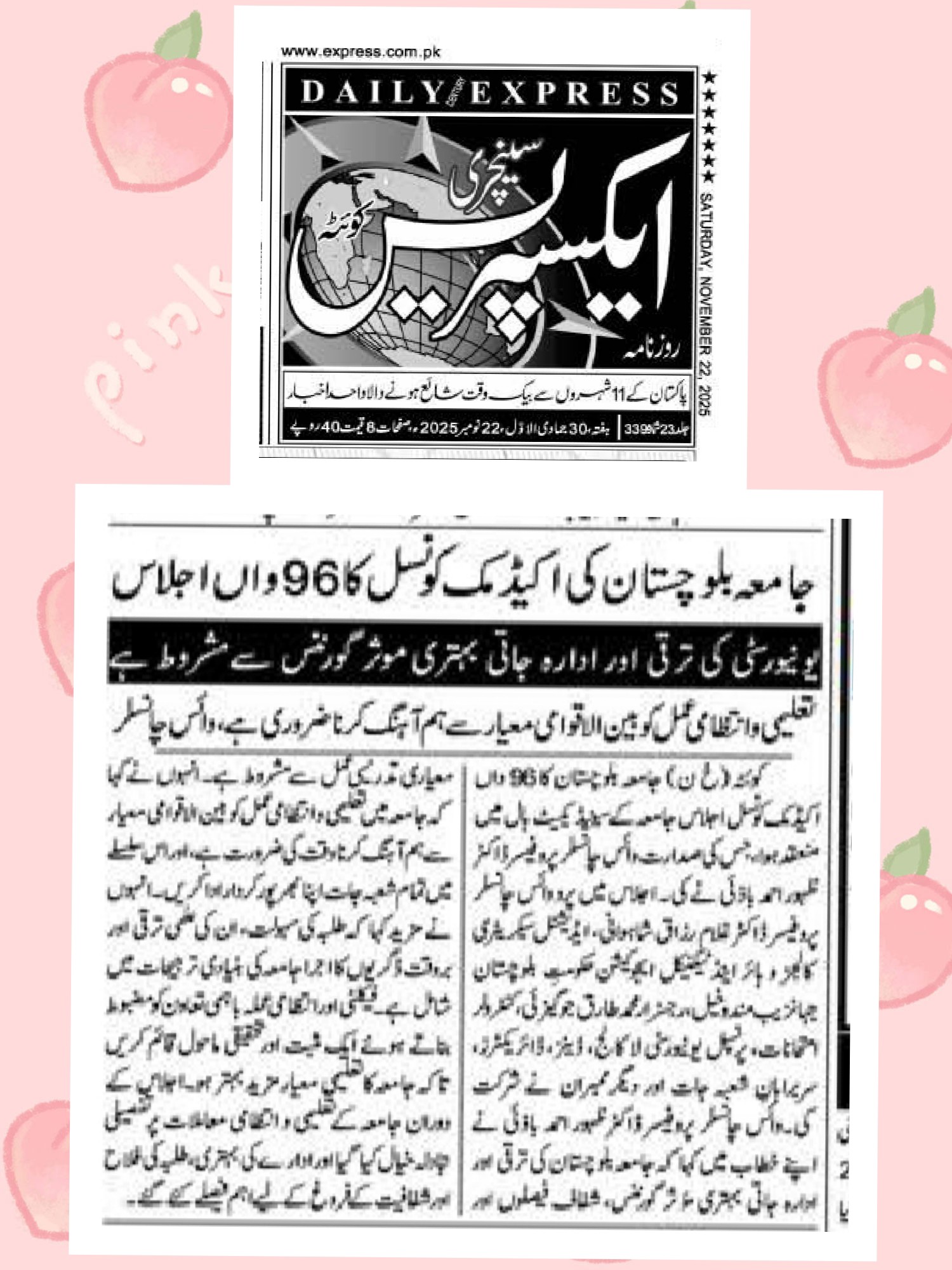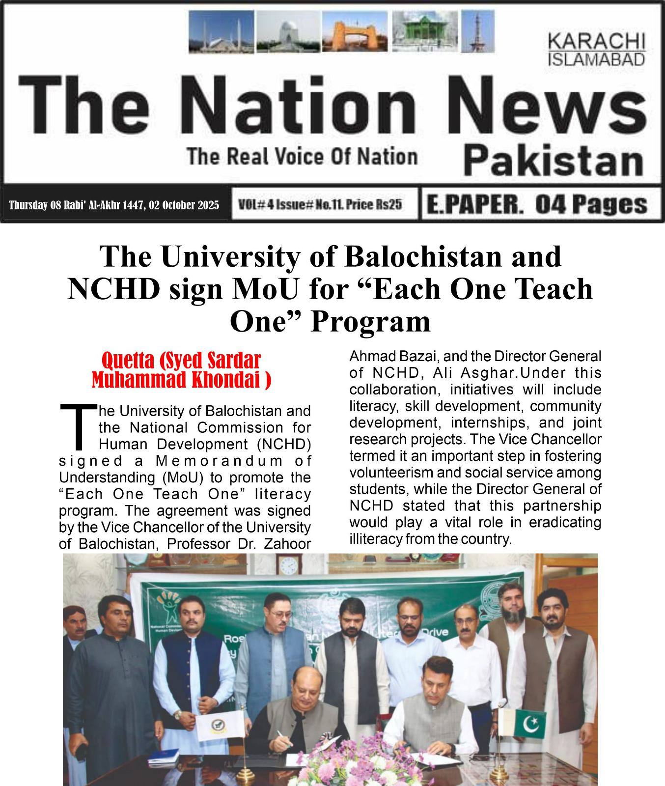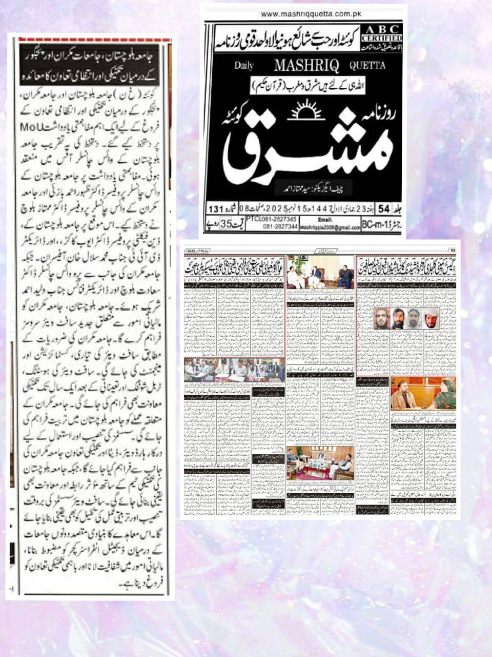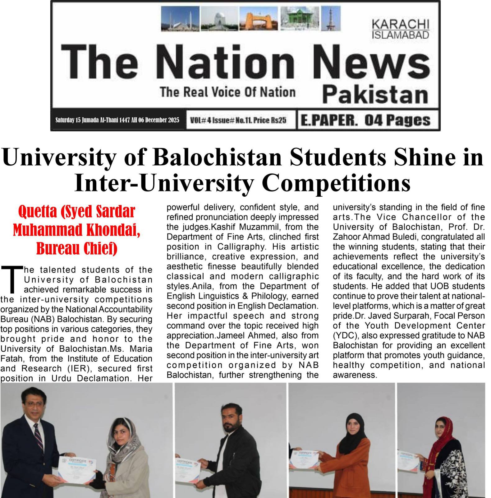 The University of Balochistan continues to receive prominent coverage in print media for its academic achievements, research initiatives, administrative reforms