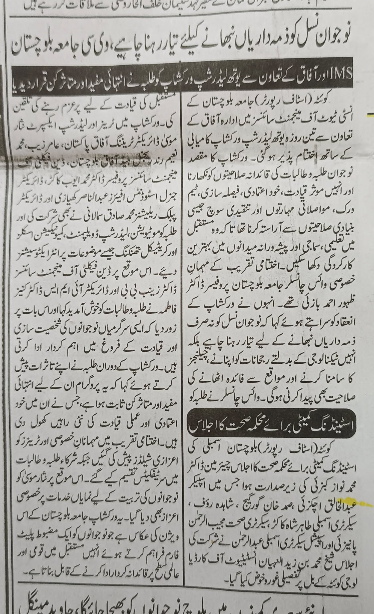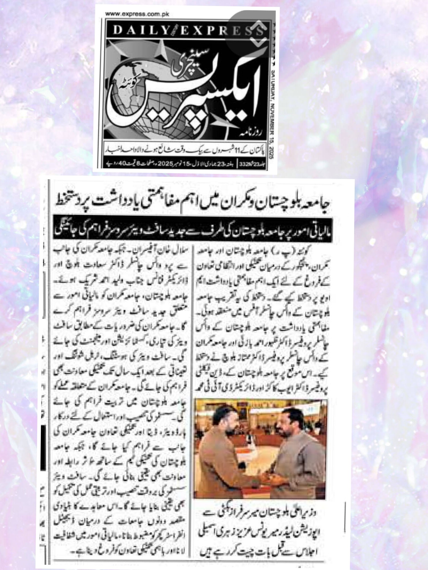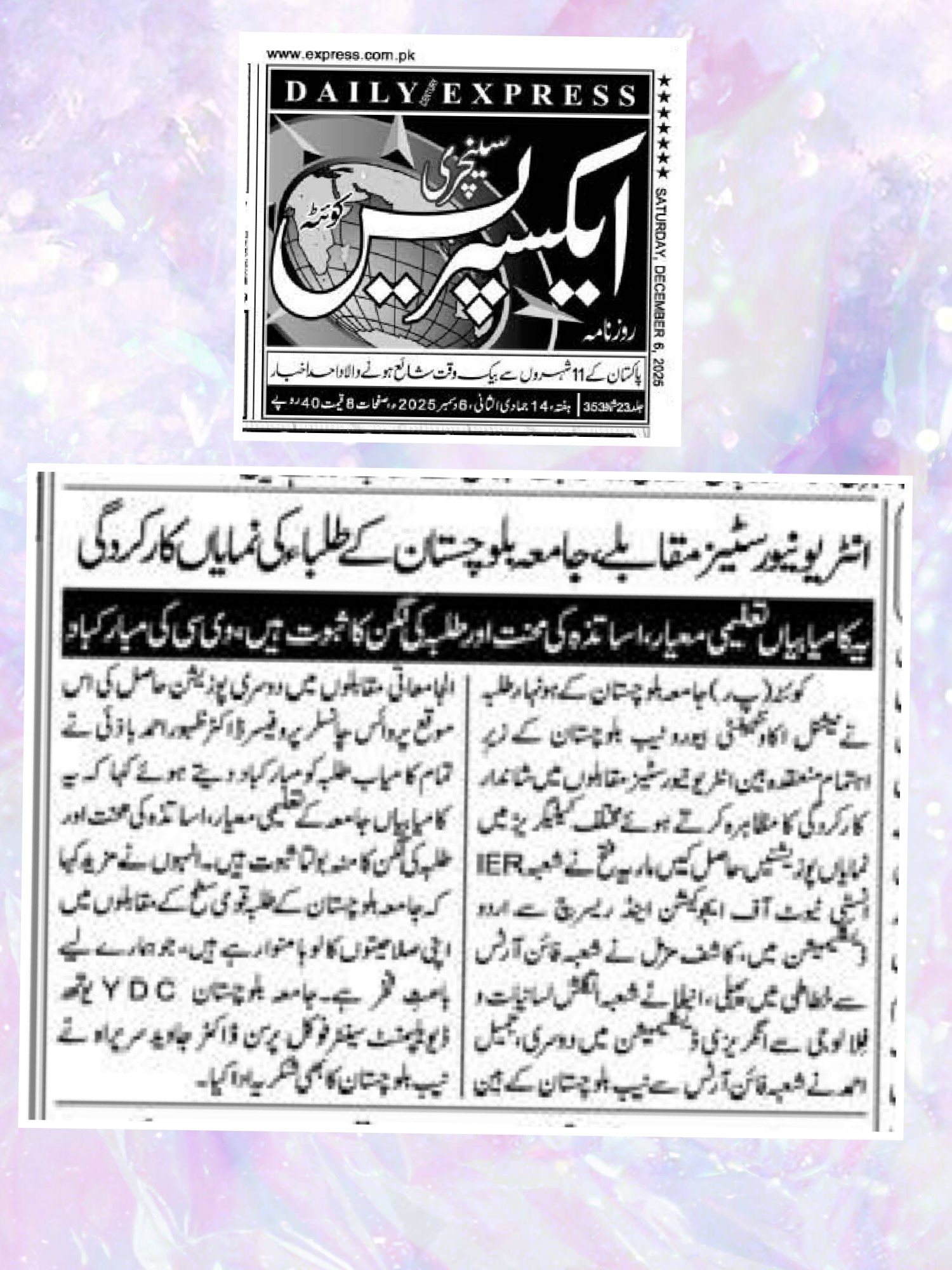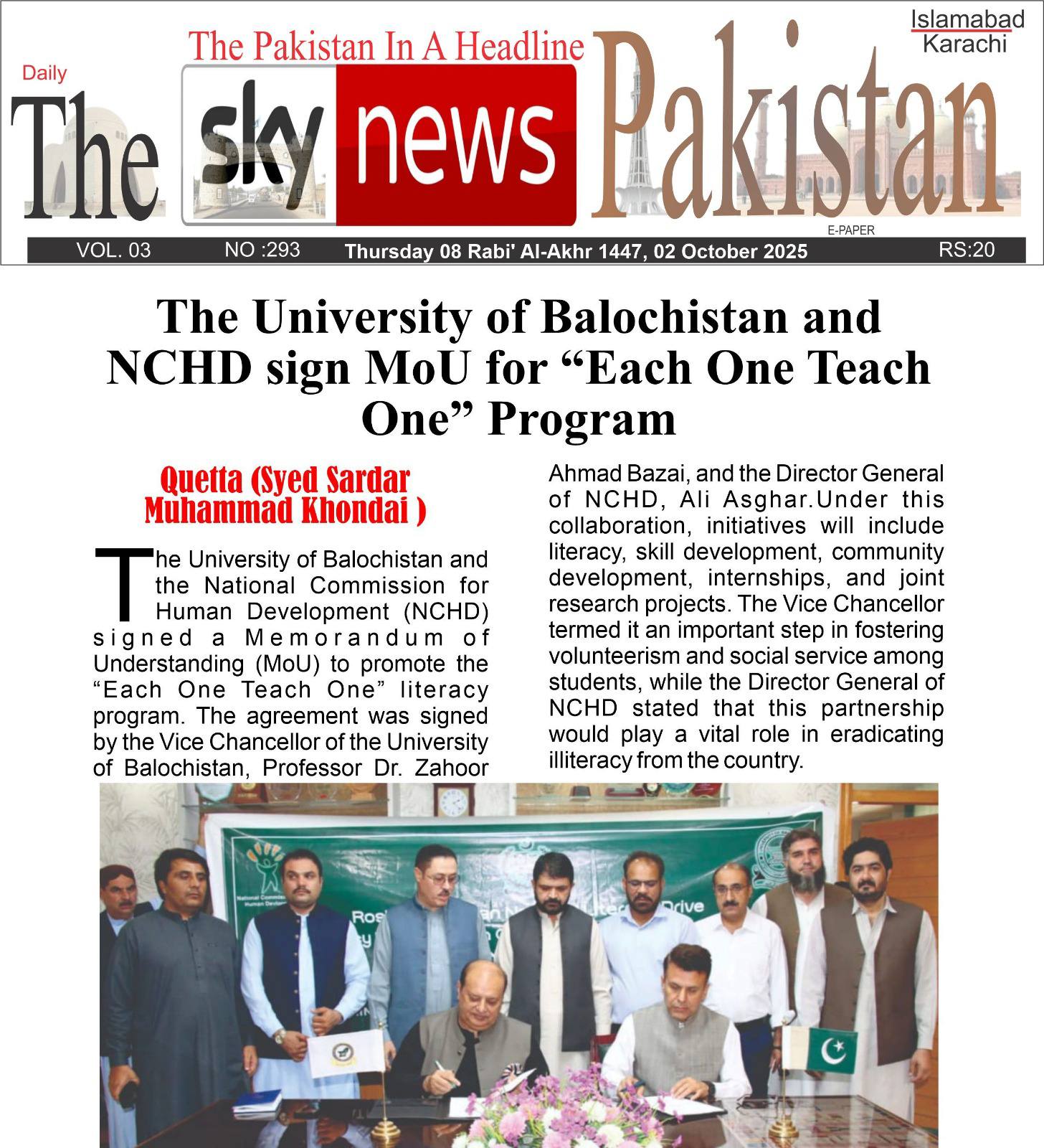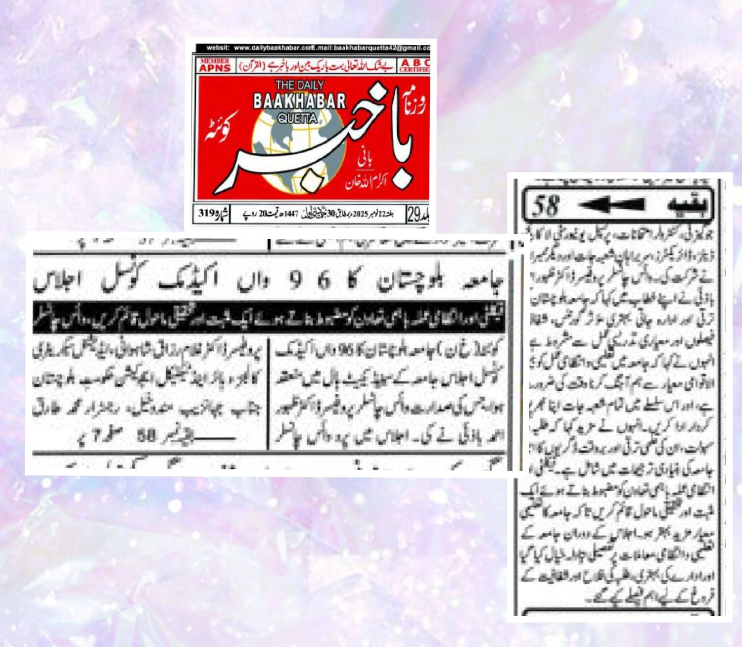 The University of Balochistan continues to receive prominent coverage in print media for its academic achievements, research initiatives, administrative reforms