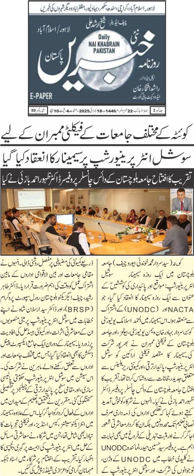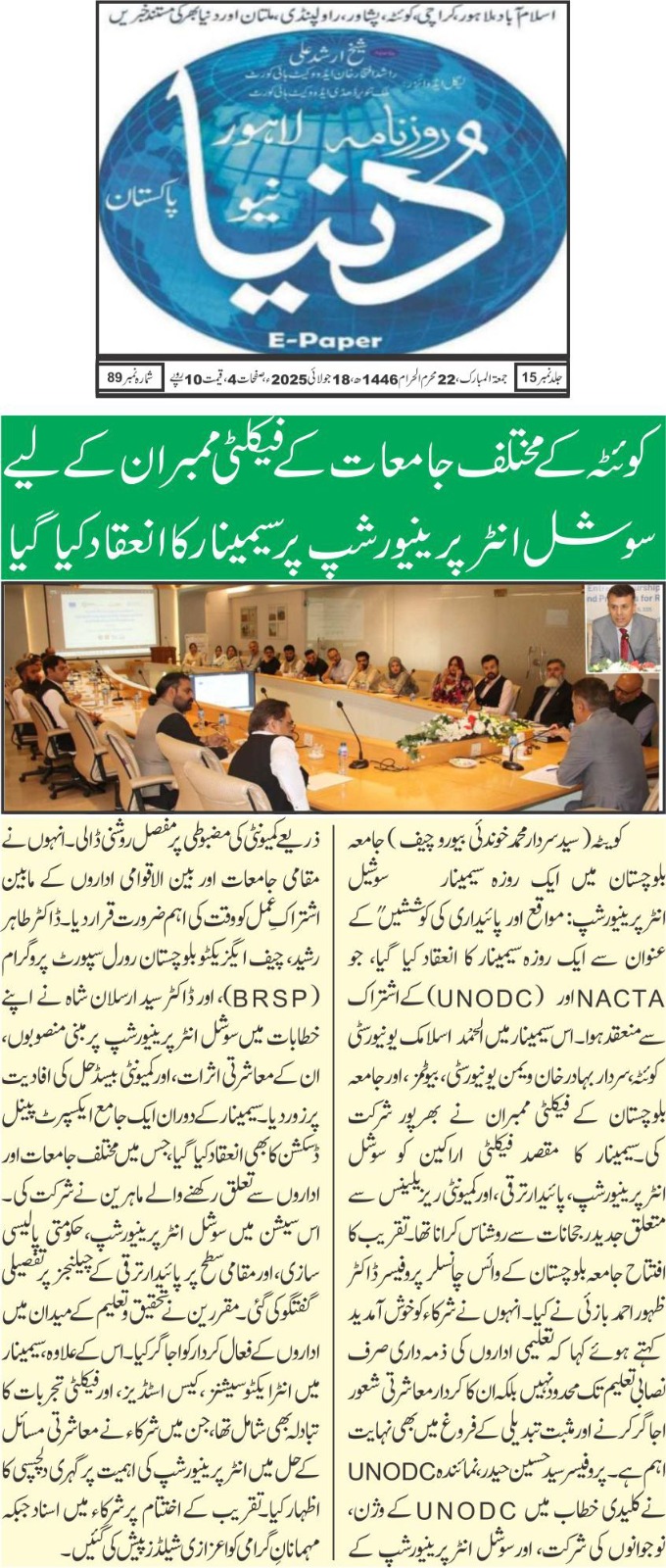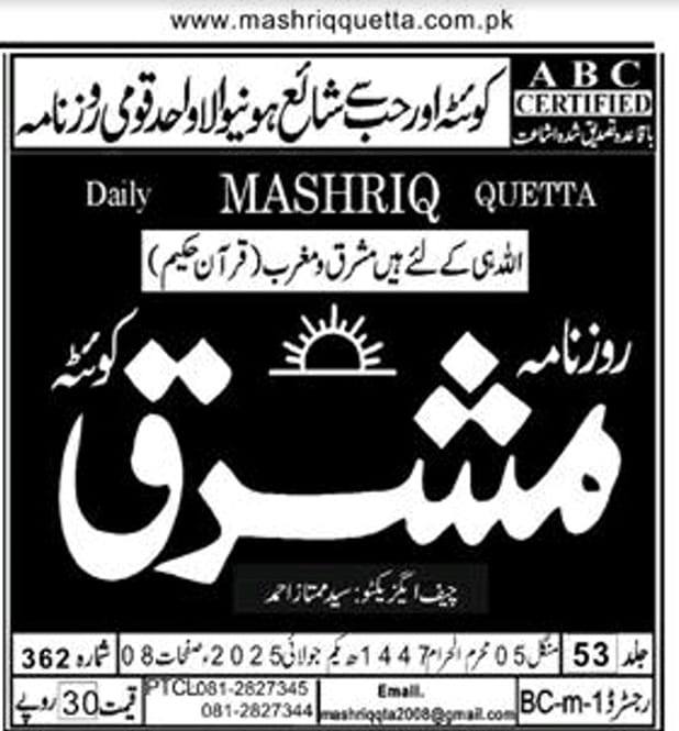 July 14, 2025 – Department of Public Relations, University of Balochistan