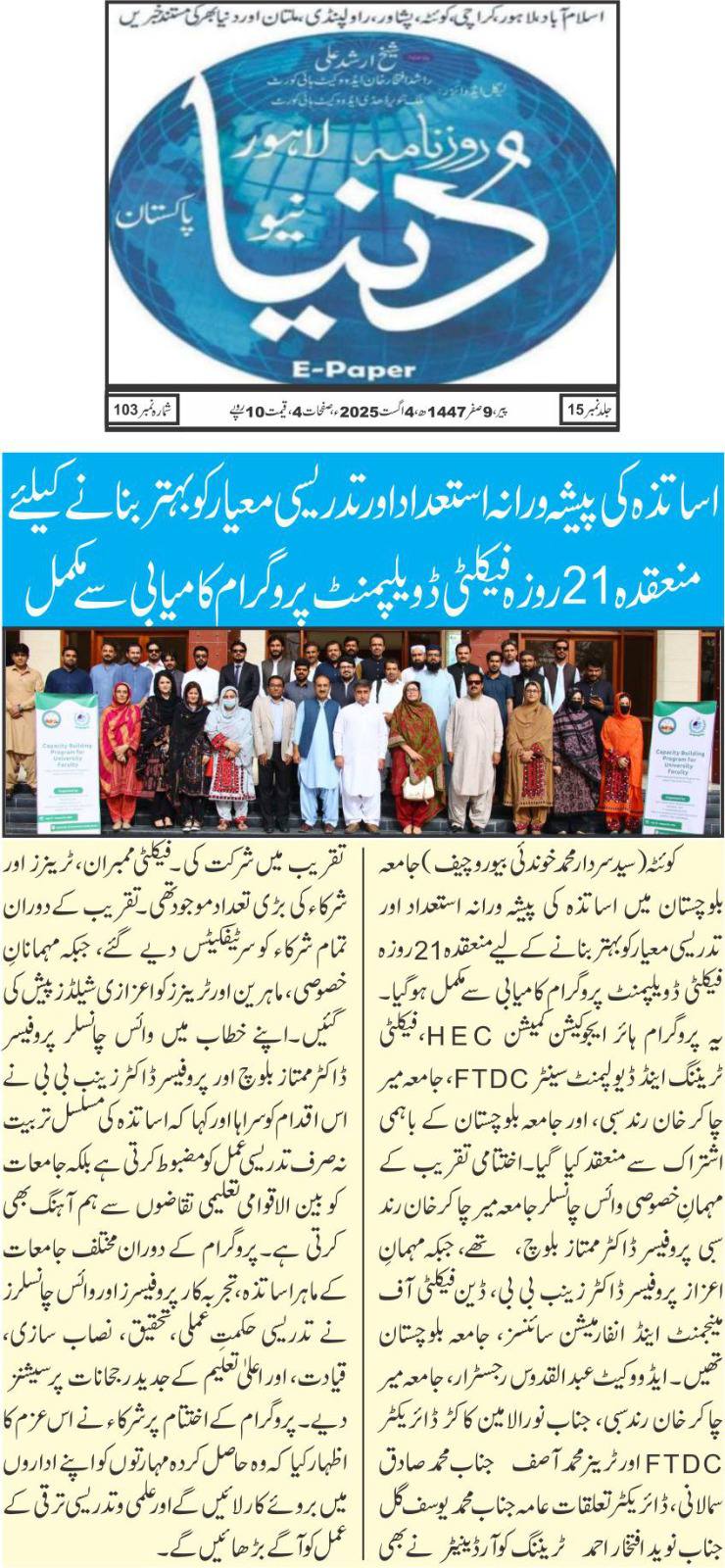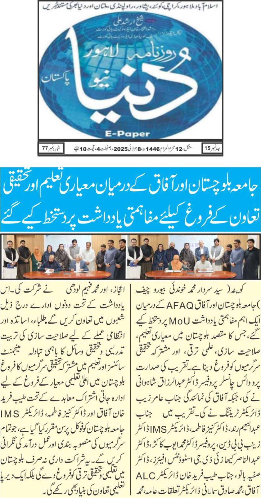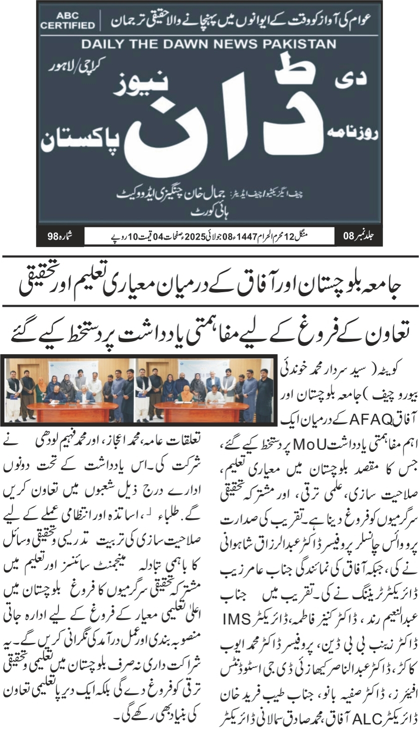 DPR 07 July 2025 University of Balochistan
