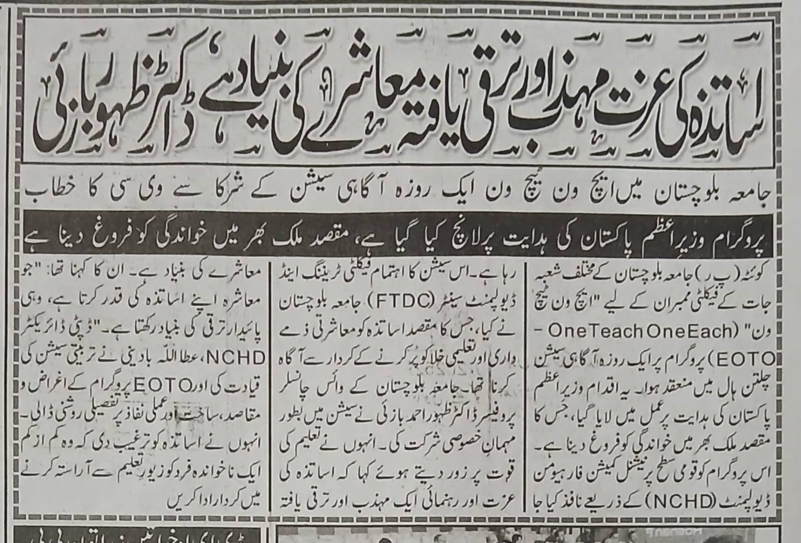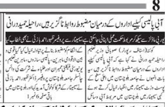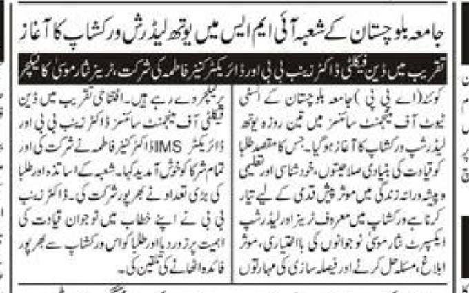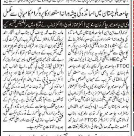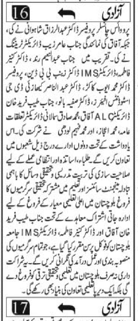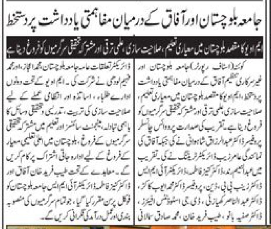Print Media Coverage – University of Balochistan