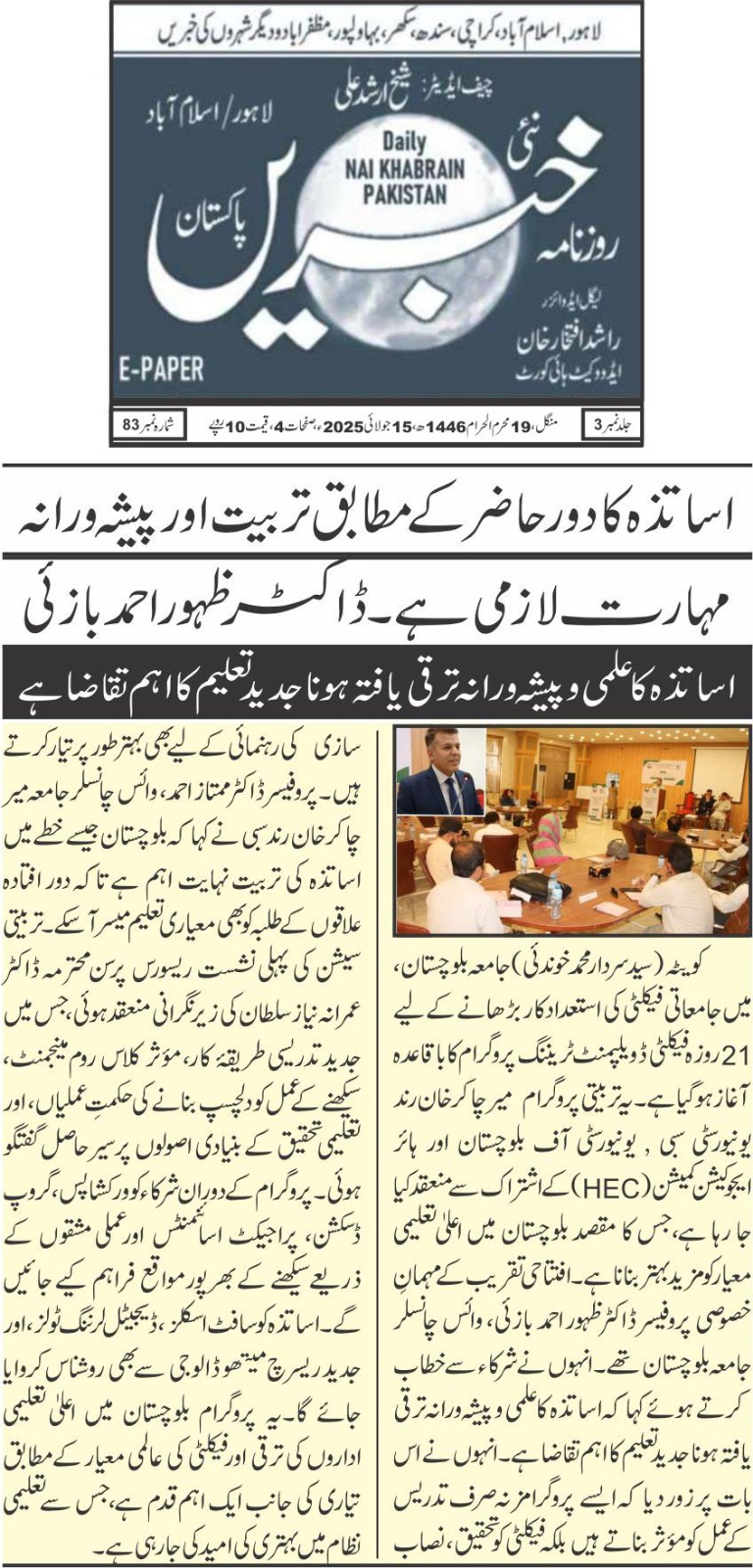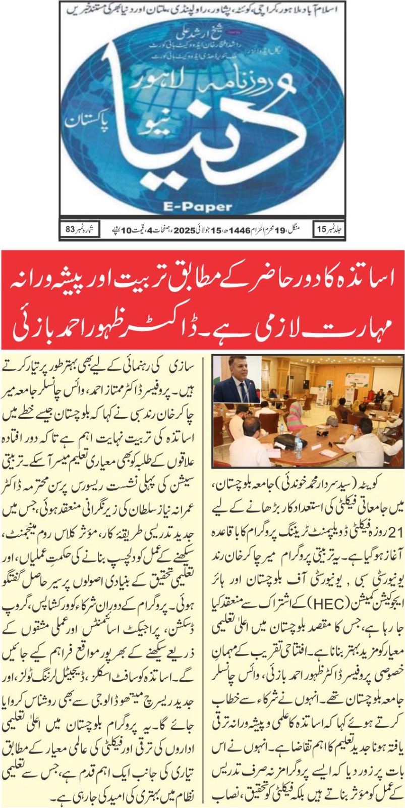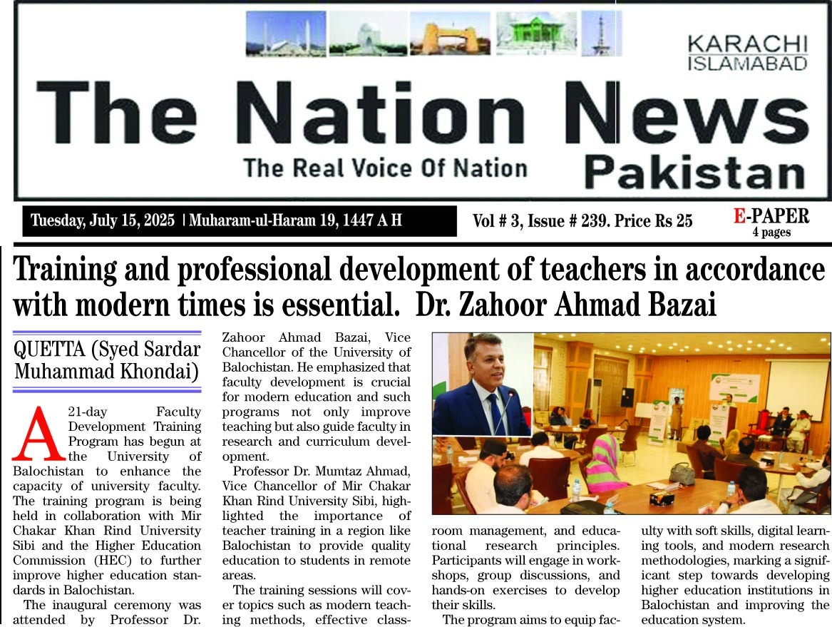 21-day Faculty Development Training Program begins at University of Balochistan