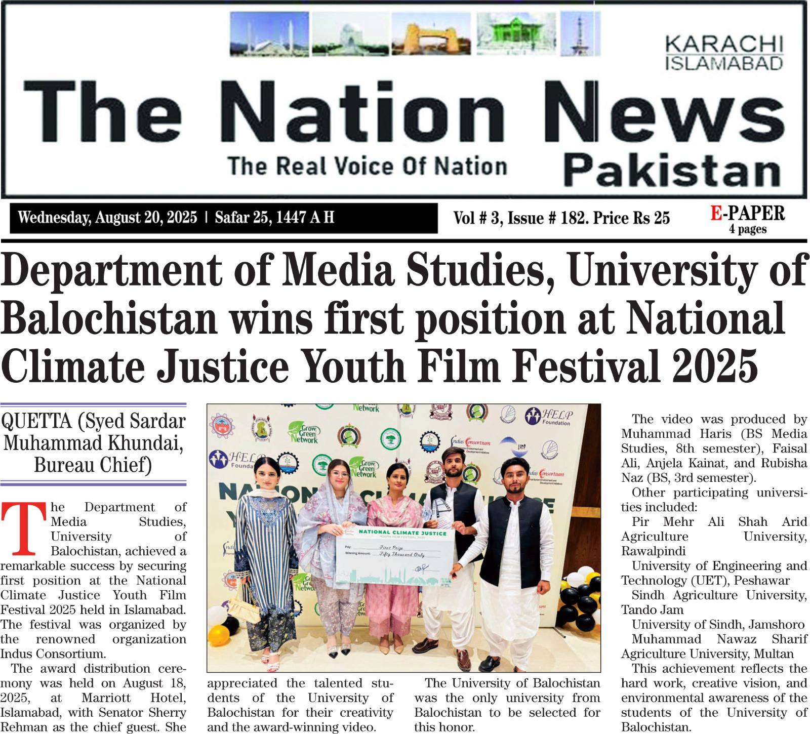 *Islamabad Department of Public Relations, University of Balochistan 12 December 2025