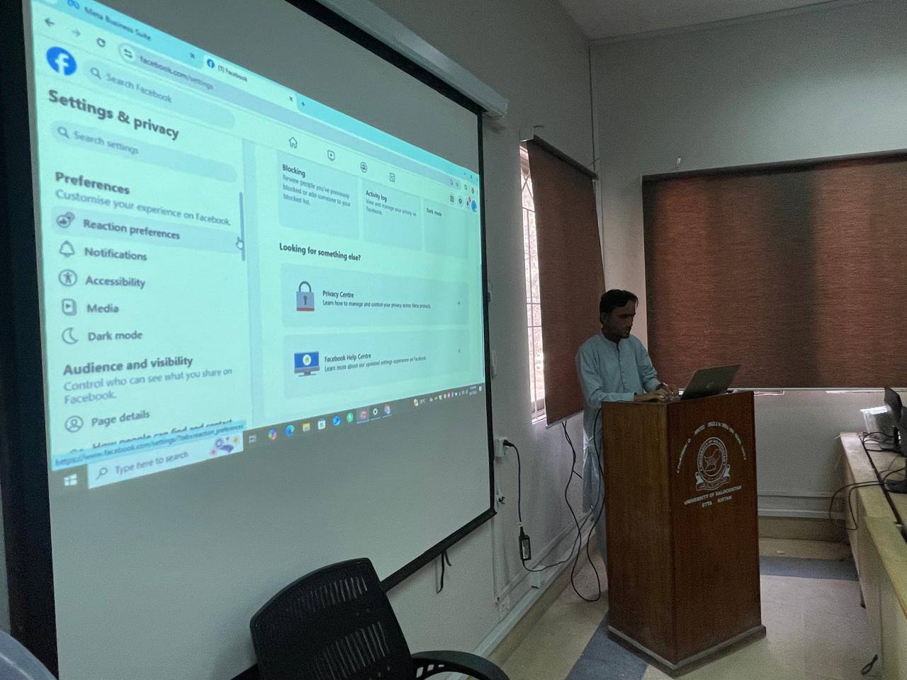An awareness session was organized by the Business Incubation Center for the students of the Department of Computer Science, Education and Disaster Management Sciences of the University of Balochistan.