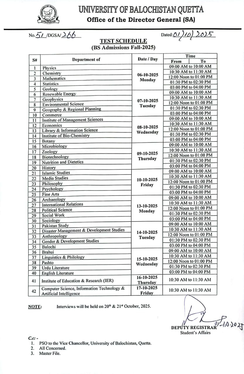 DPR, University of Balochistan, 5 November 2025