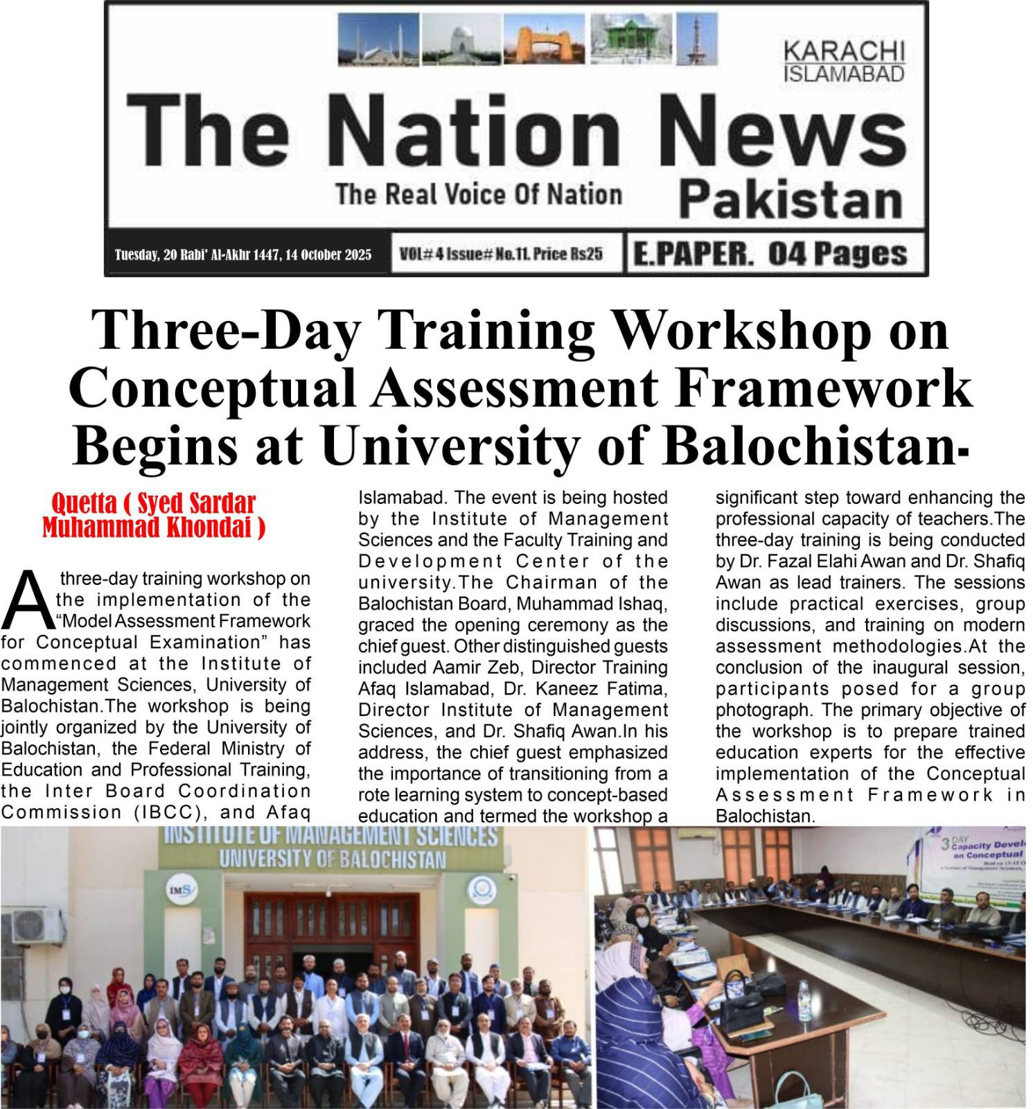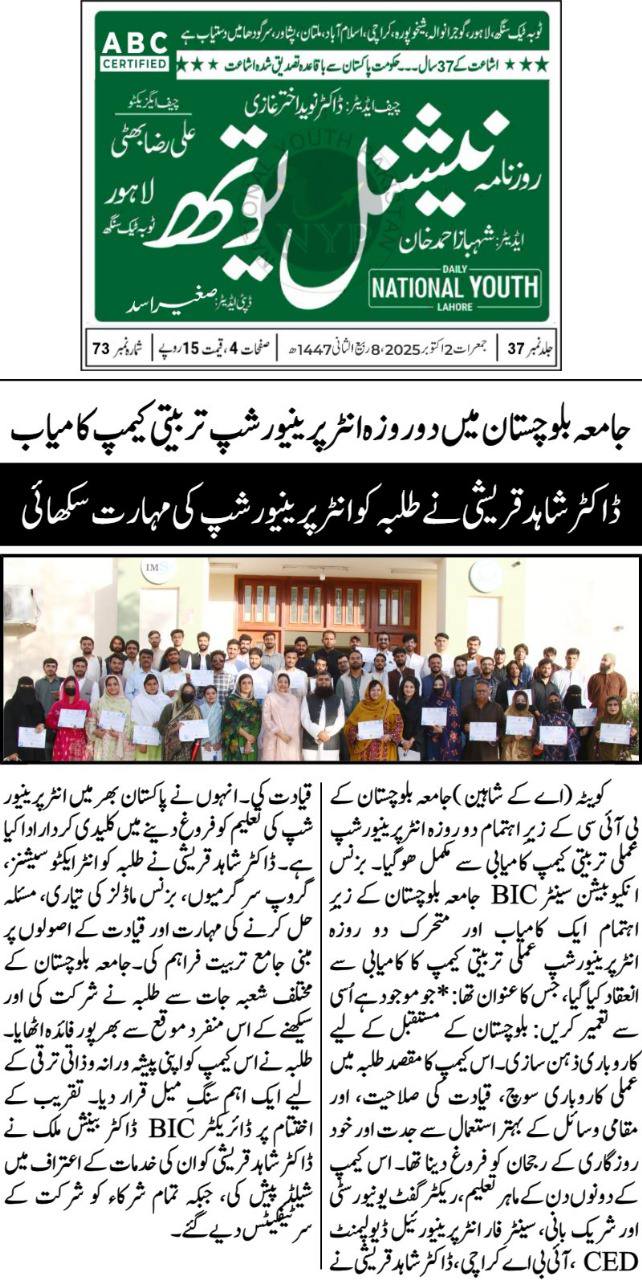 14 November 2025 Department of Public Relations DPR Jamia Balochistan
