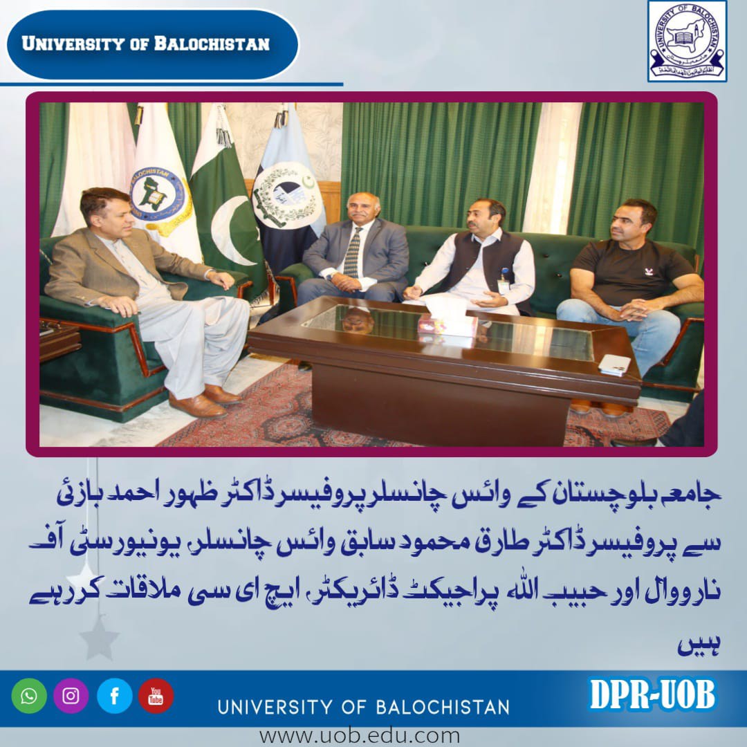 University of Balochistan, Professor Dr. Zahoor Ahmed Bazai, to discuss academic and administrative matters