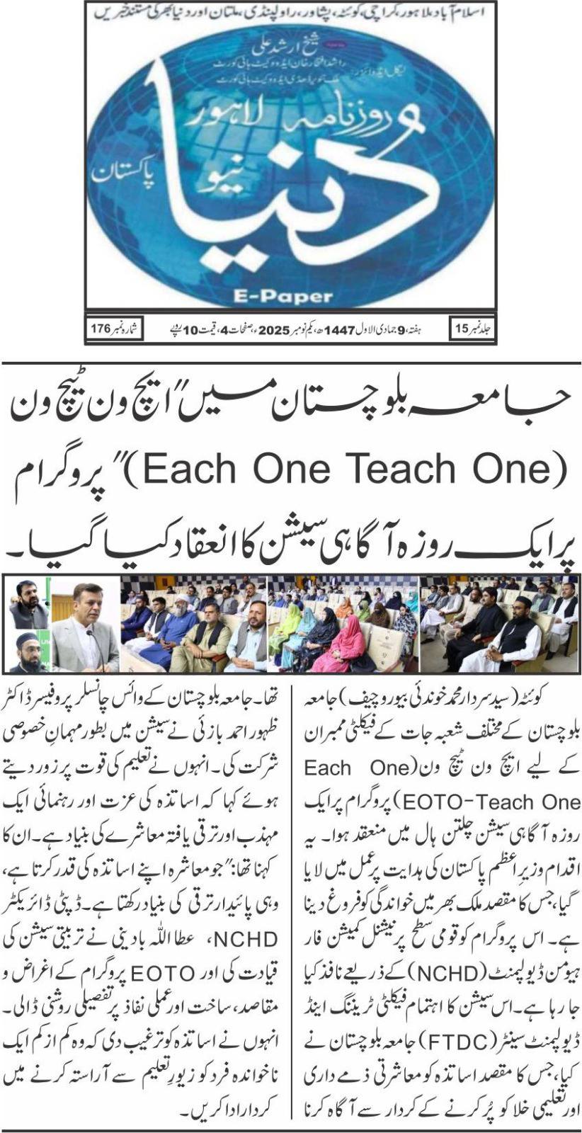 Public Relations Department, DPR University of Balochistan November 4, 2025